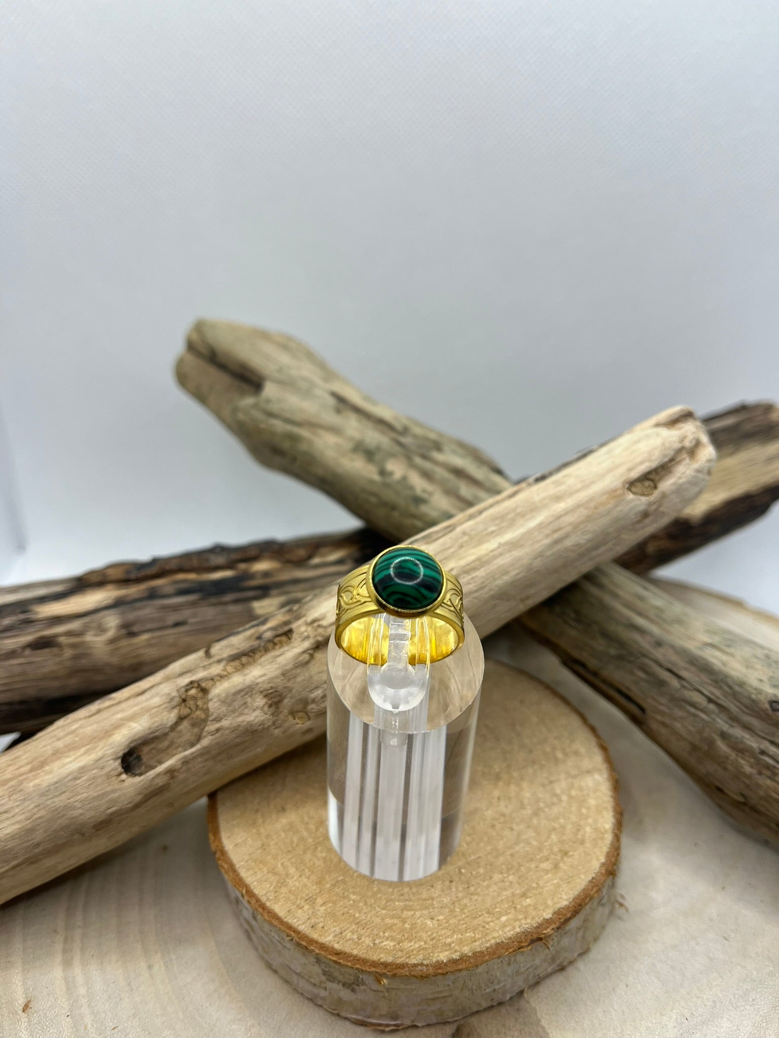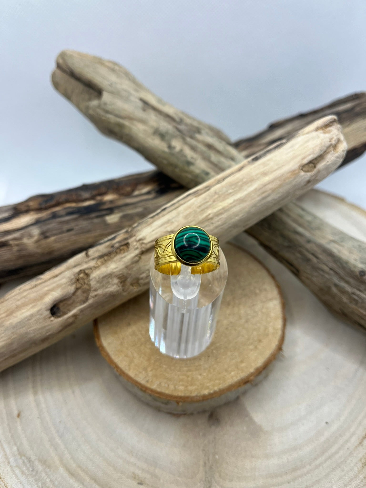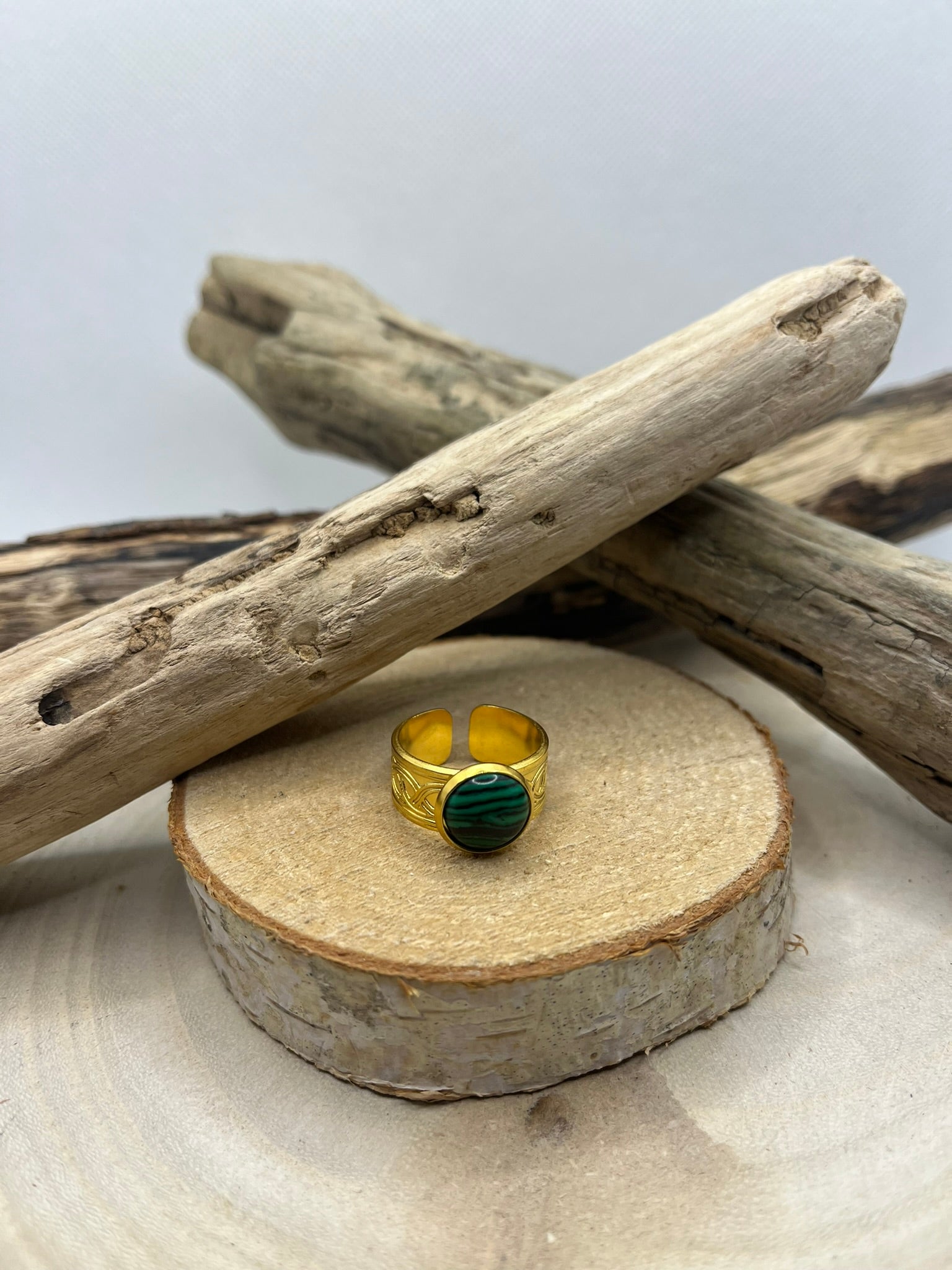 Bague Acier Inoxydable Ajustable - Pierre Naturelle Malachite