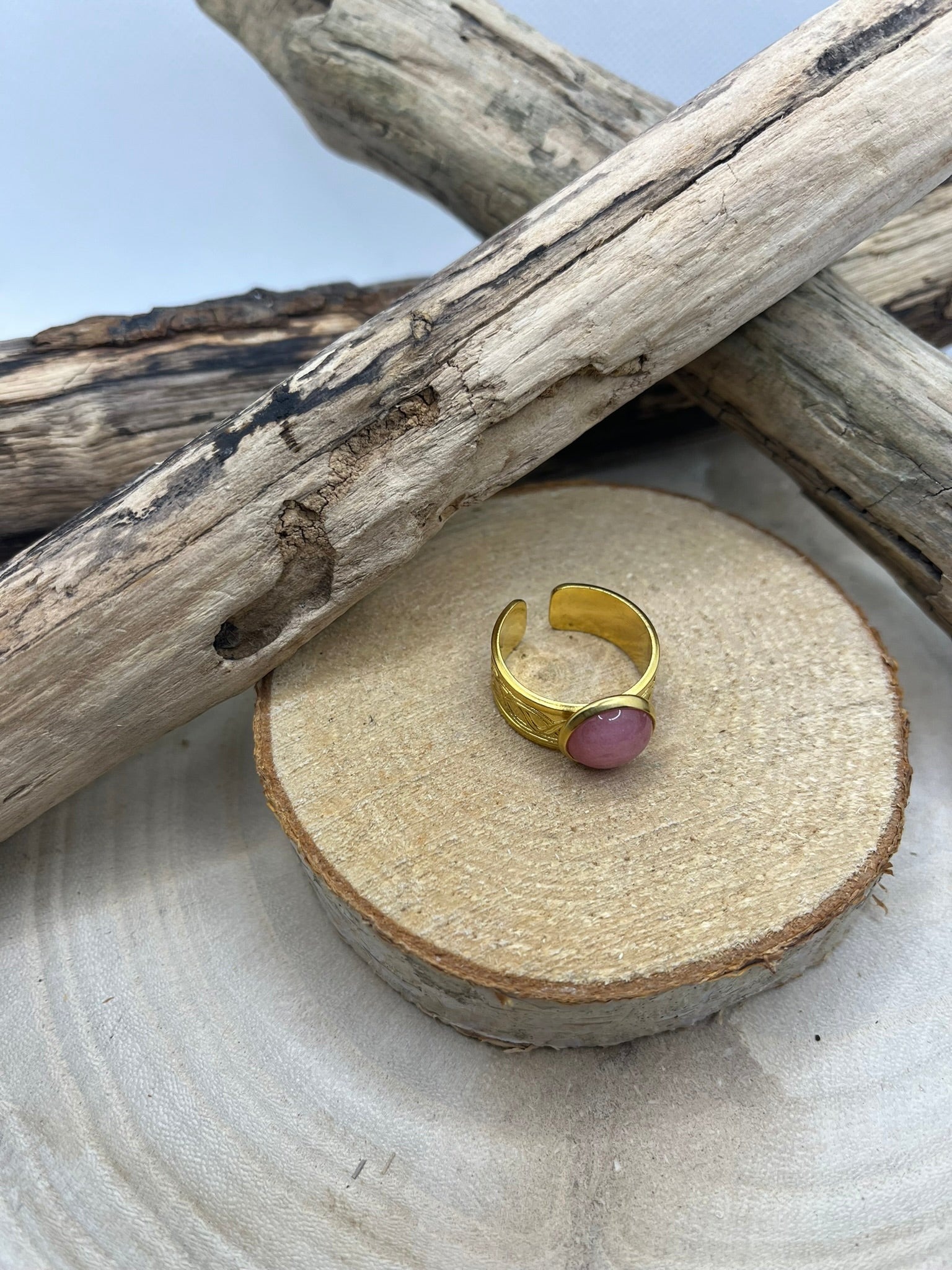 Bague Acier Inoxydable Ajustable - Pierre Naturelle Quartz Rose