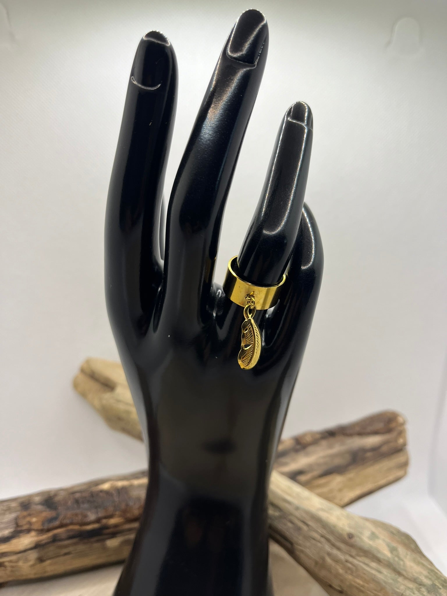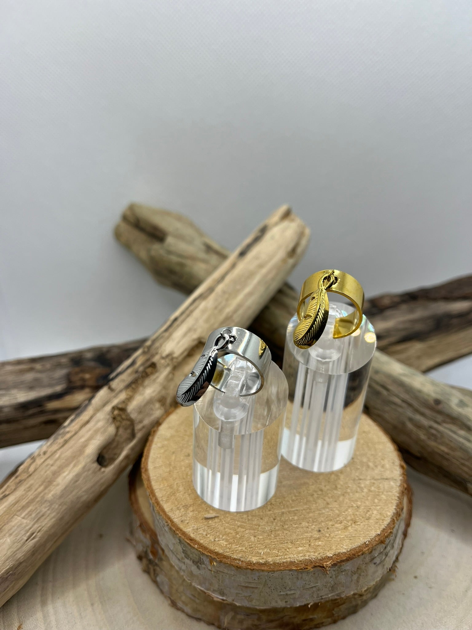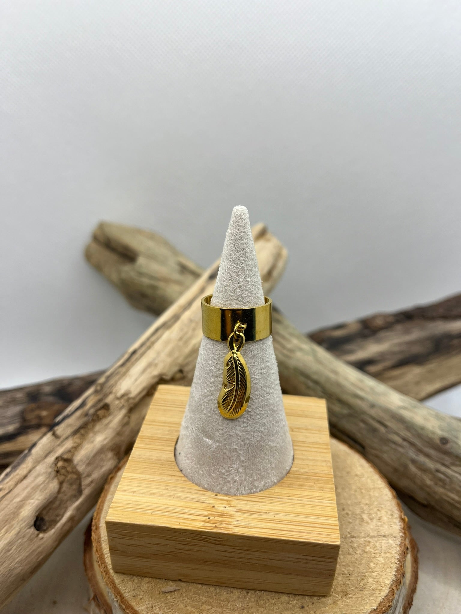 Bague acier inoxydable breloque Plume et ajustable à la mode - Doré ou en Argenté