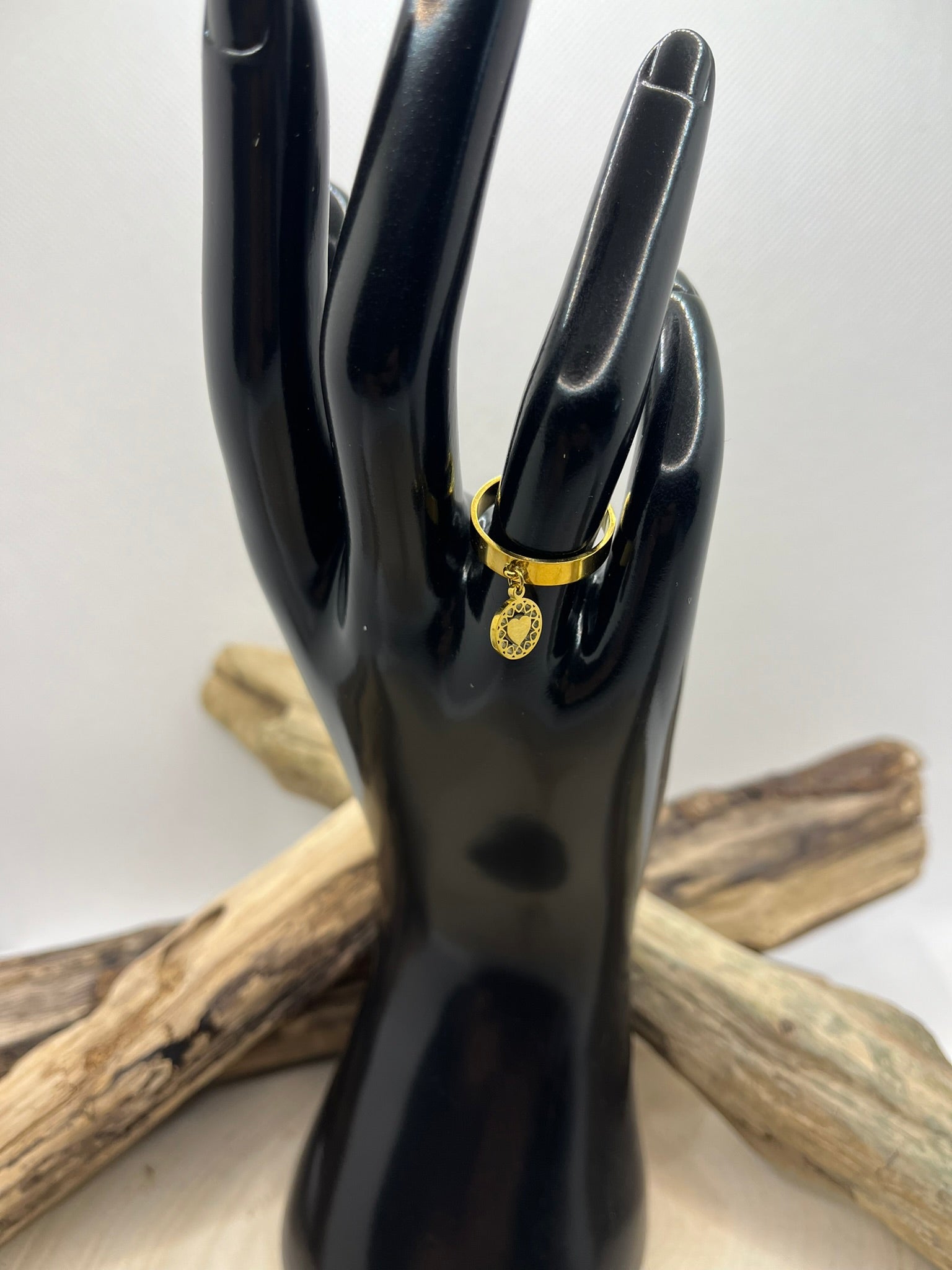 Bague acier inoxydable doré breloque avec une petit coeur et ajustable