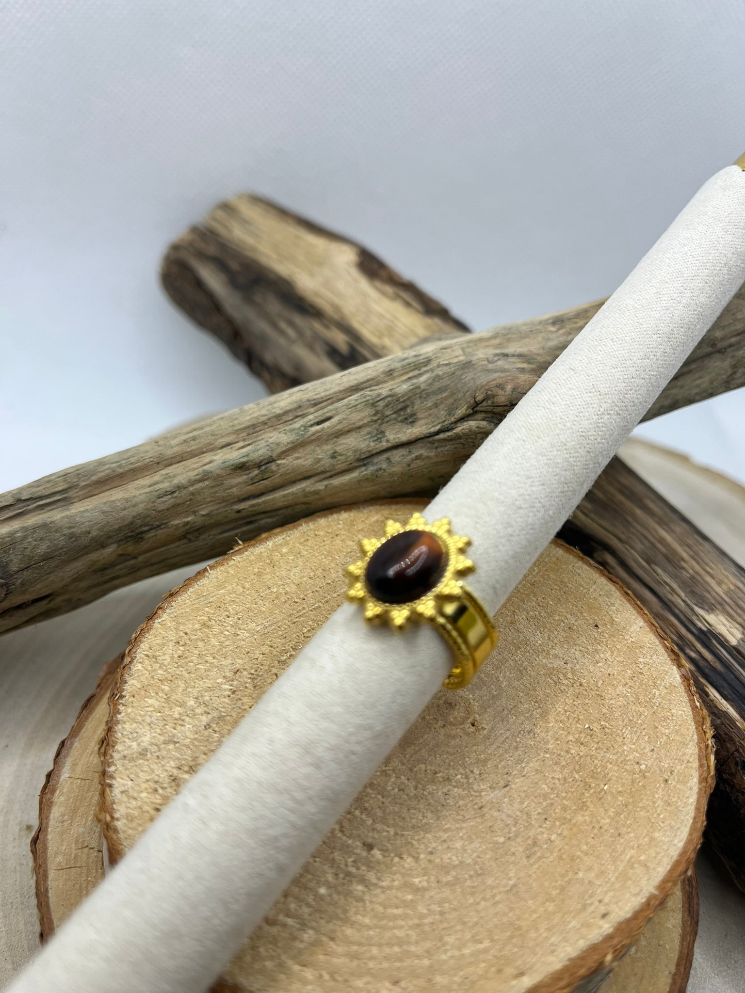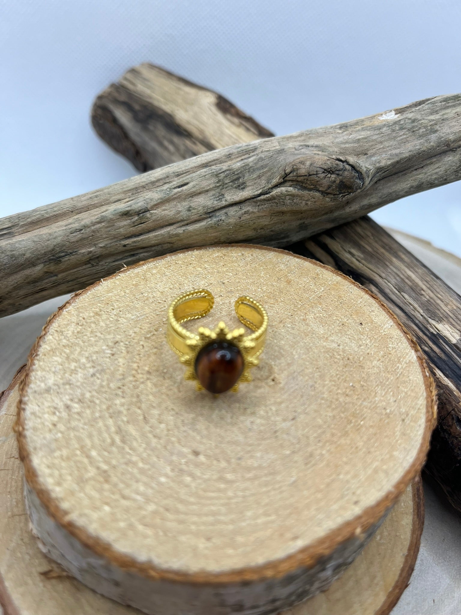 Cette bague ajustable en acier inoxydable doré est le choix chic pour une touche raffinée à vos tenues. Ornée d'une pierre oeil de tigre unique, elle apporte à la fois élégance et protection contre les énergies négatives. L'accessoire parfait pour l'harmonie intérieure et extérieure.