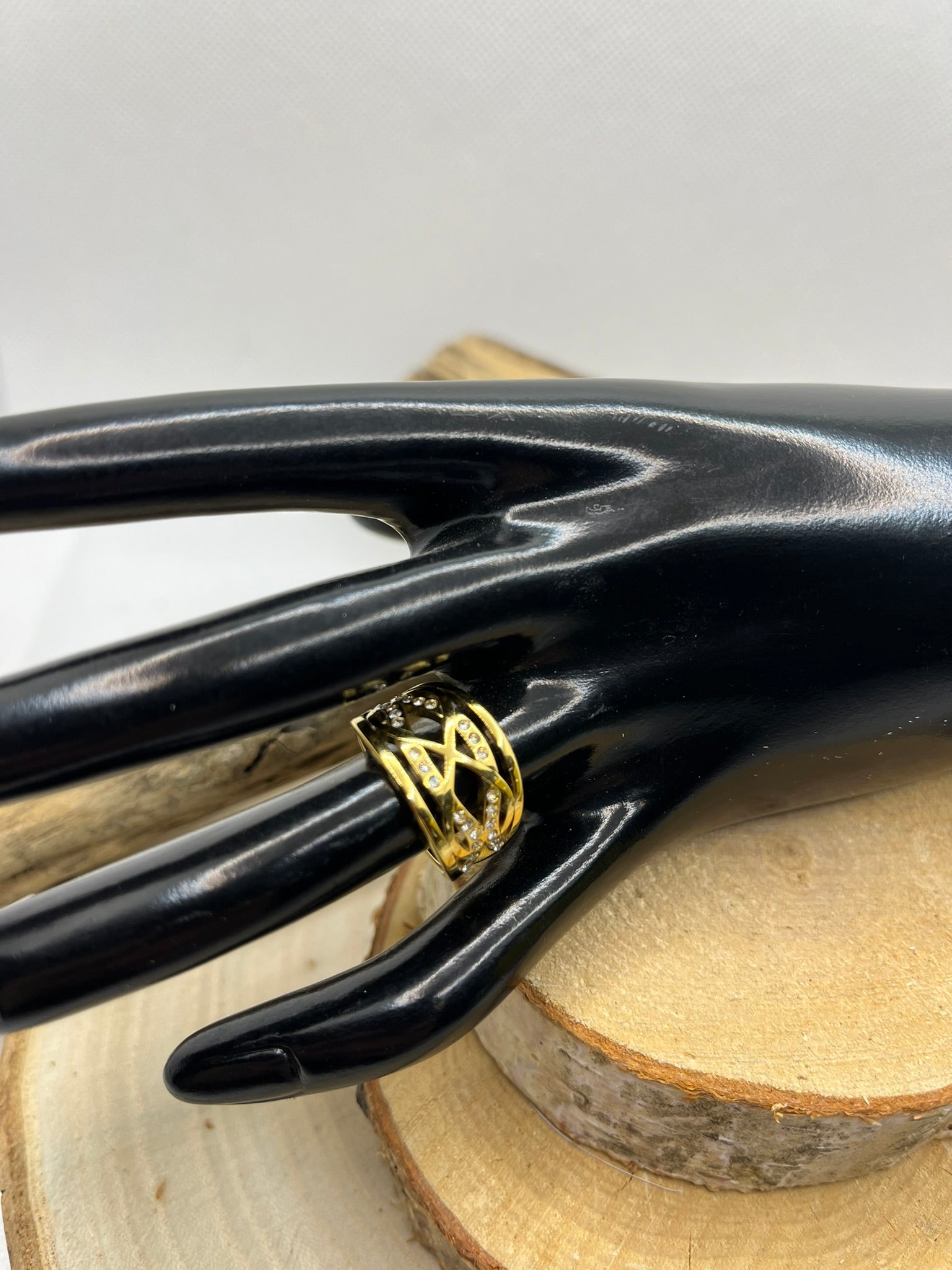 Bague ajustable symétrique en Acier inoxydable doré Orné de strass très élégante