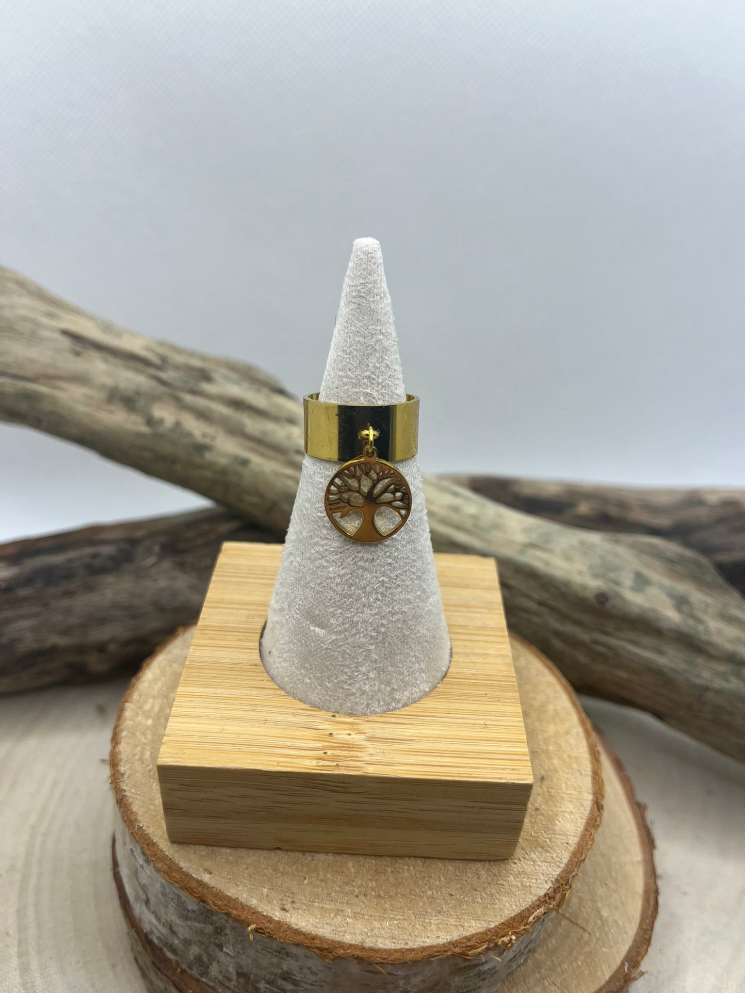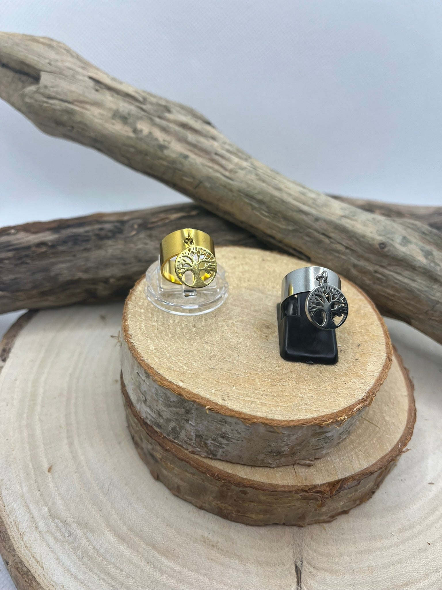 Bague en Acier inoxydable ajustable Mode et Chic Pendentif Arbre de Vie - Doré ou en Argenté