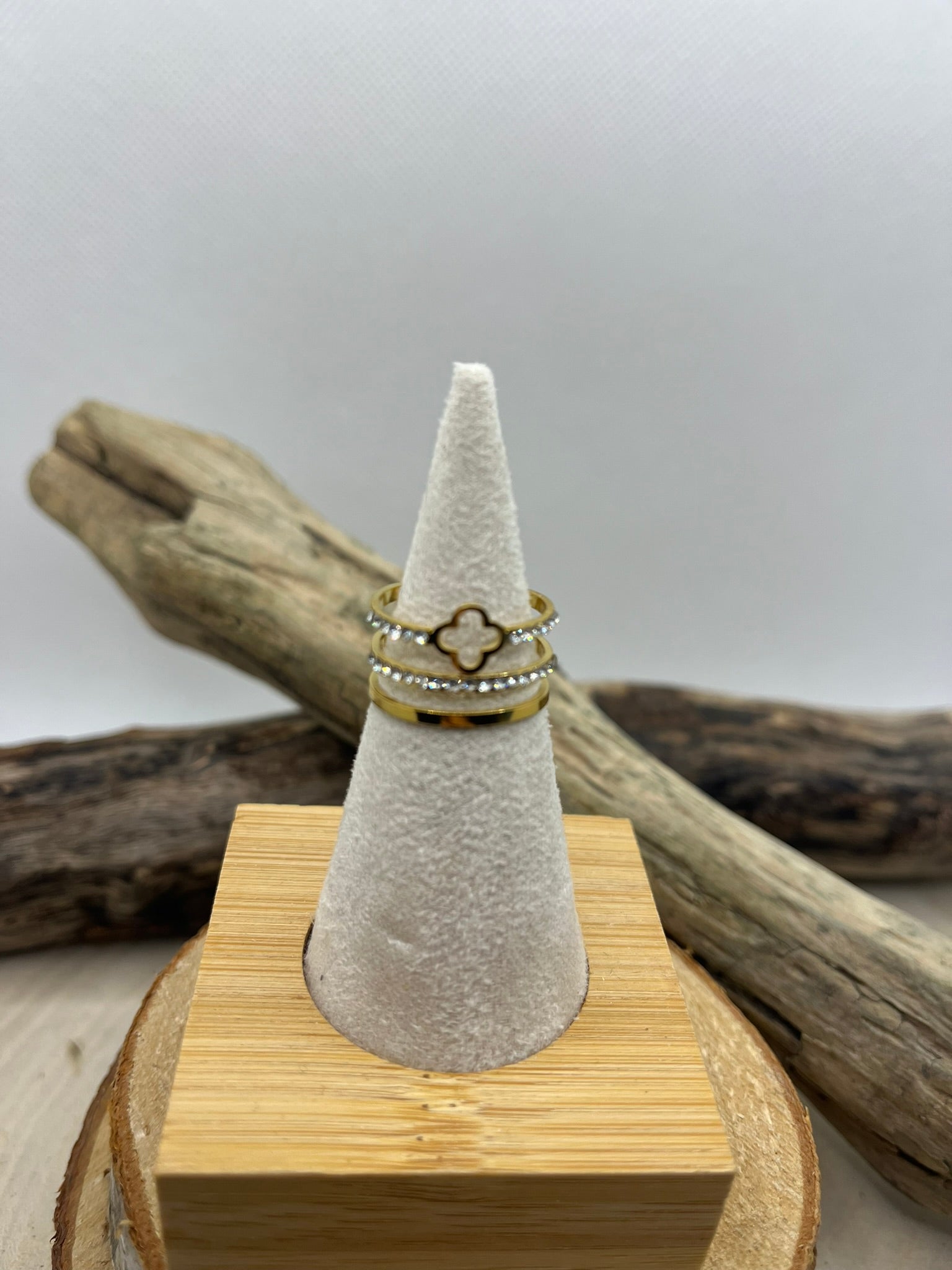 Bague en Acier inoxydable ajustable mode orné d'un trèfle et de strass - Doré ou en Argenté