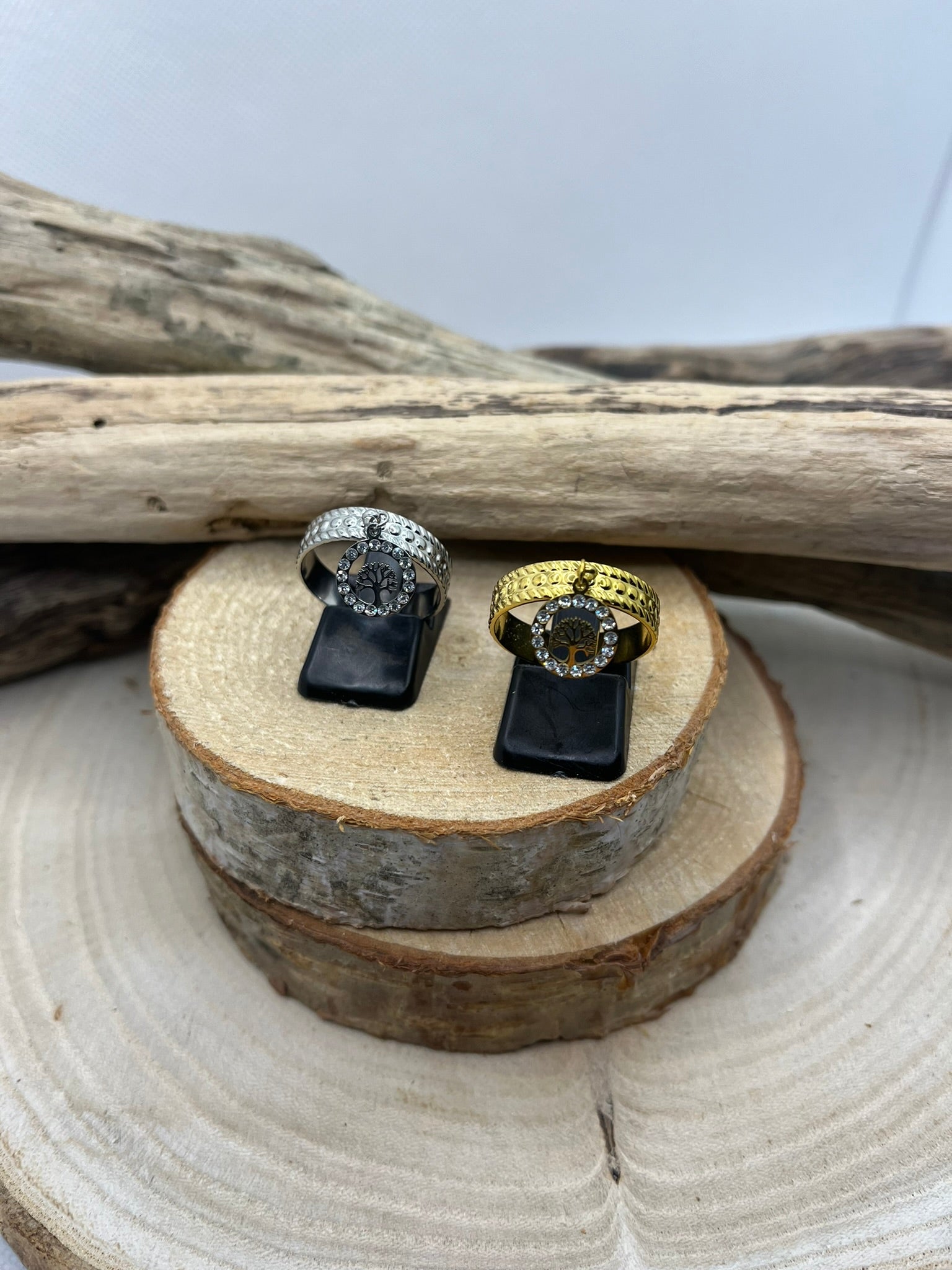 Bague en Acier inoxydable ajustable mode Pendentif Arbre de vie orné de strass - Doré ou en Argenté