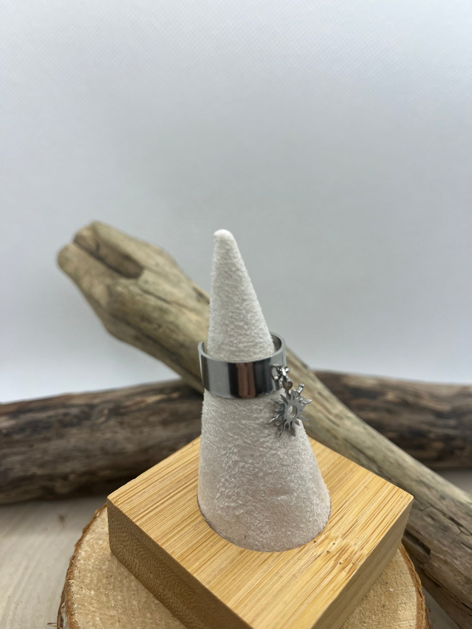 Rehaussez votre look avec cette bague ajustable en acier inoxydable ornée d'un pendentif soleil argenté. Ajoute une touche de soleil à votre style tout en profitant de la durabilité de l'acier inoxydable. Parfait pour un look mode et décontracté.