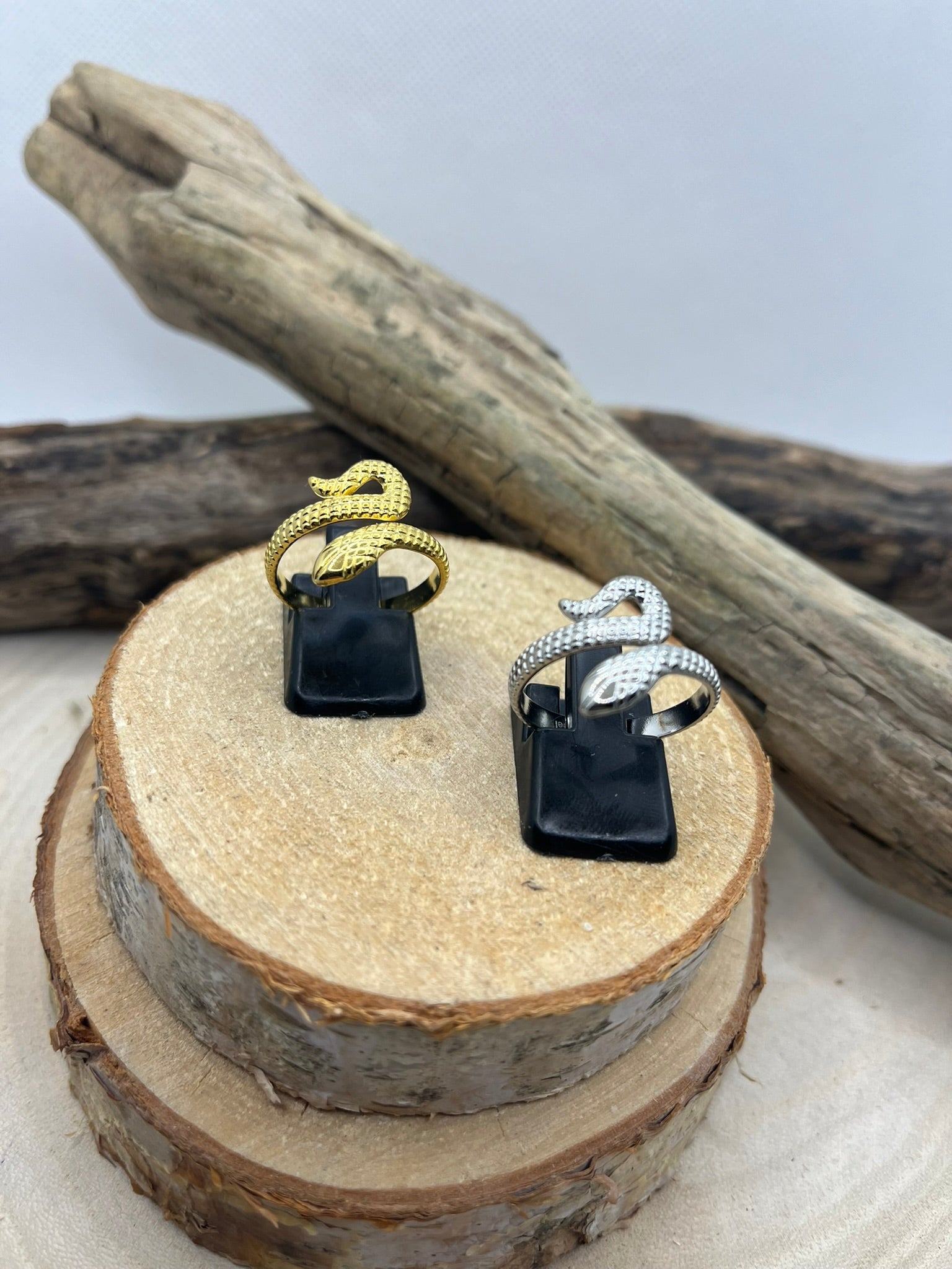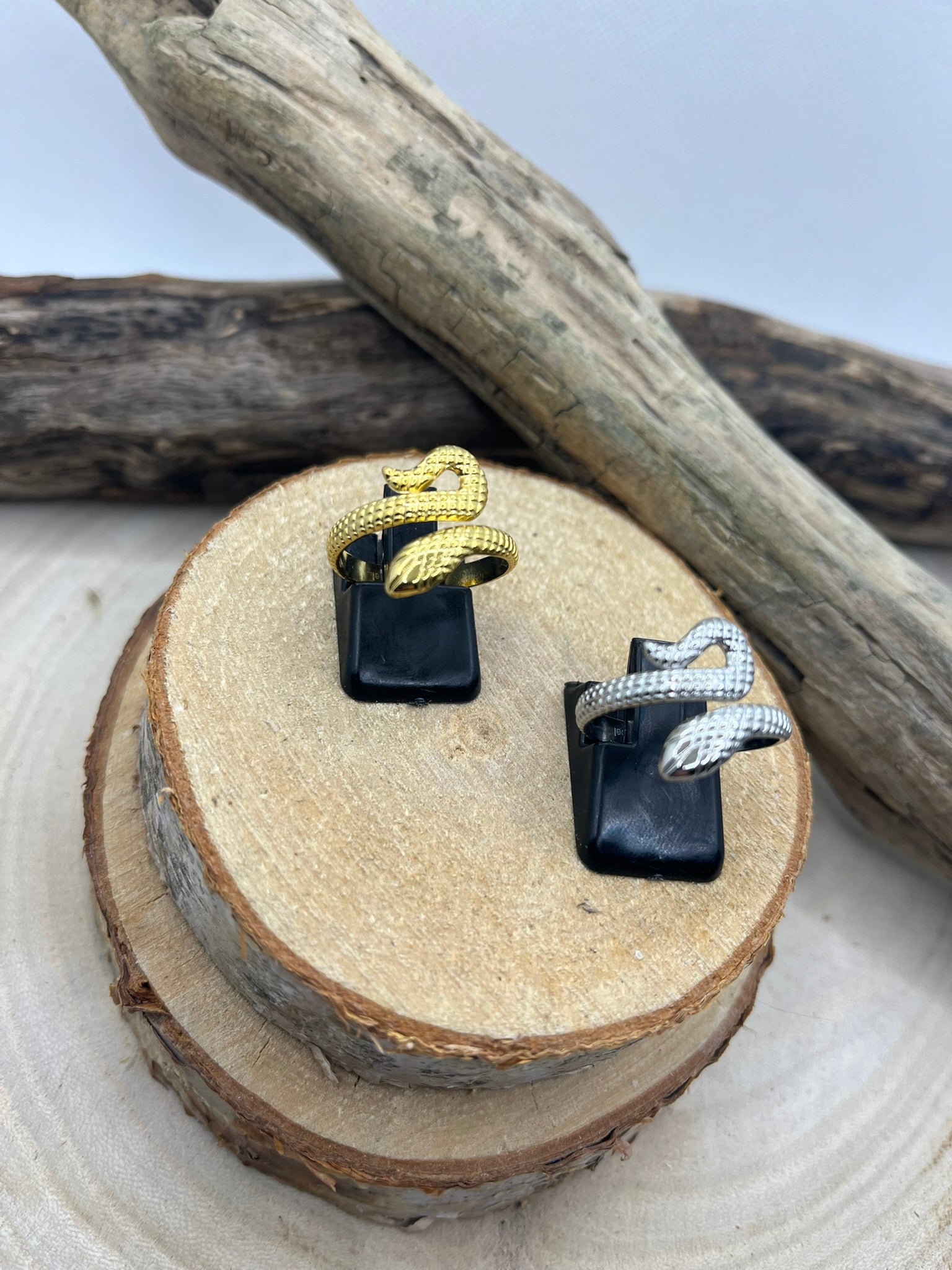 Découvrez cette bague en acier inoxydable au style serpent, disponible en doré ou en argenté. Dotée d'un design ajustable, elle s'adapte parfaitement à votre doigt pour un confort ultime.
