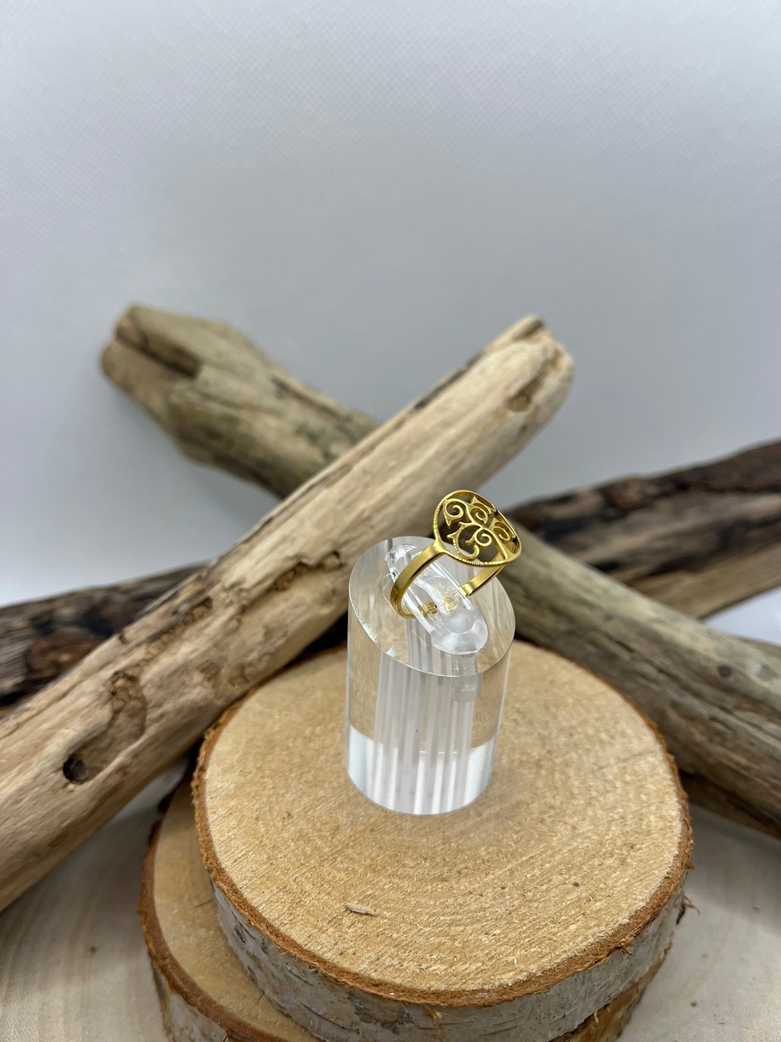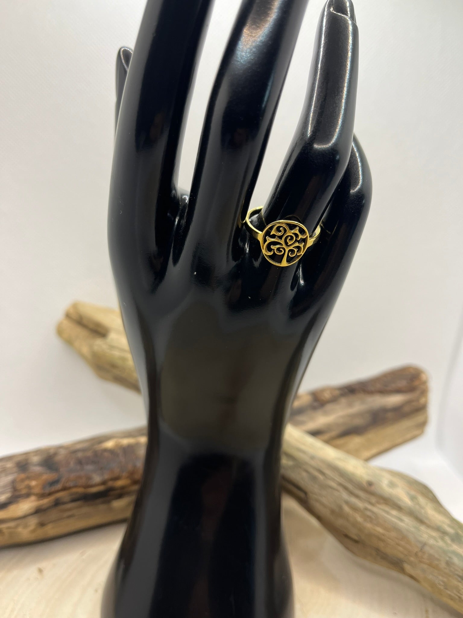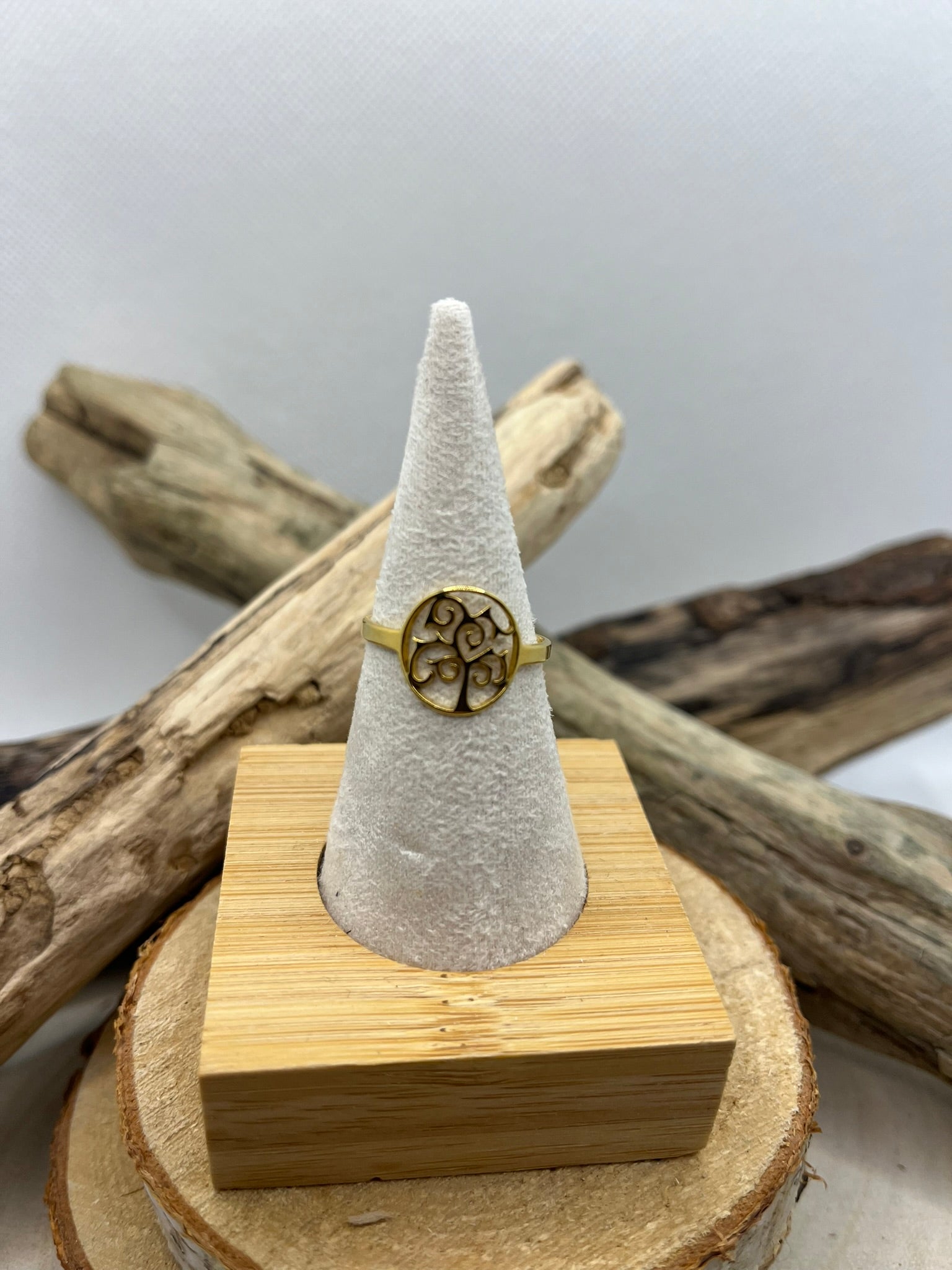 Bague en acier inoxydable fine Arbre de Vie tendance couleur doré ajustable à la mode