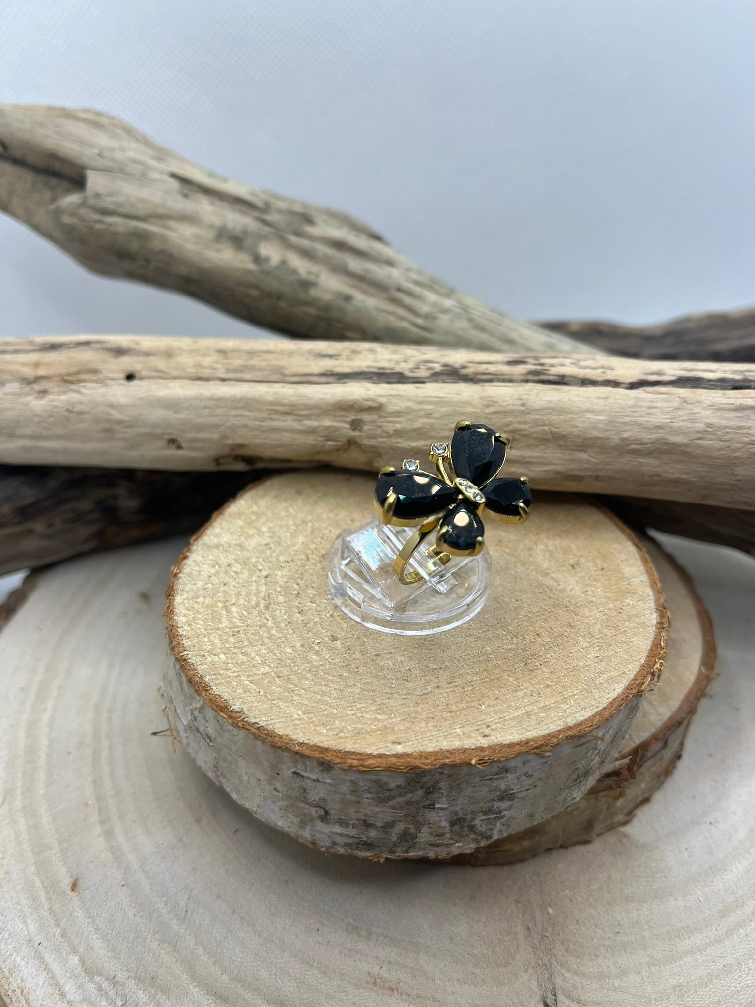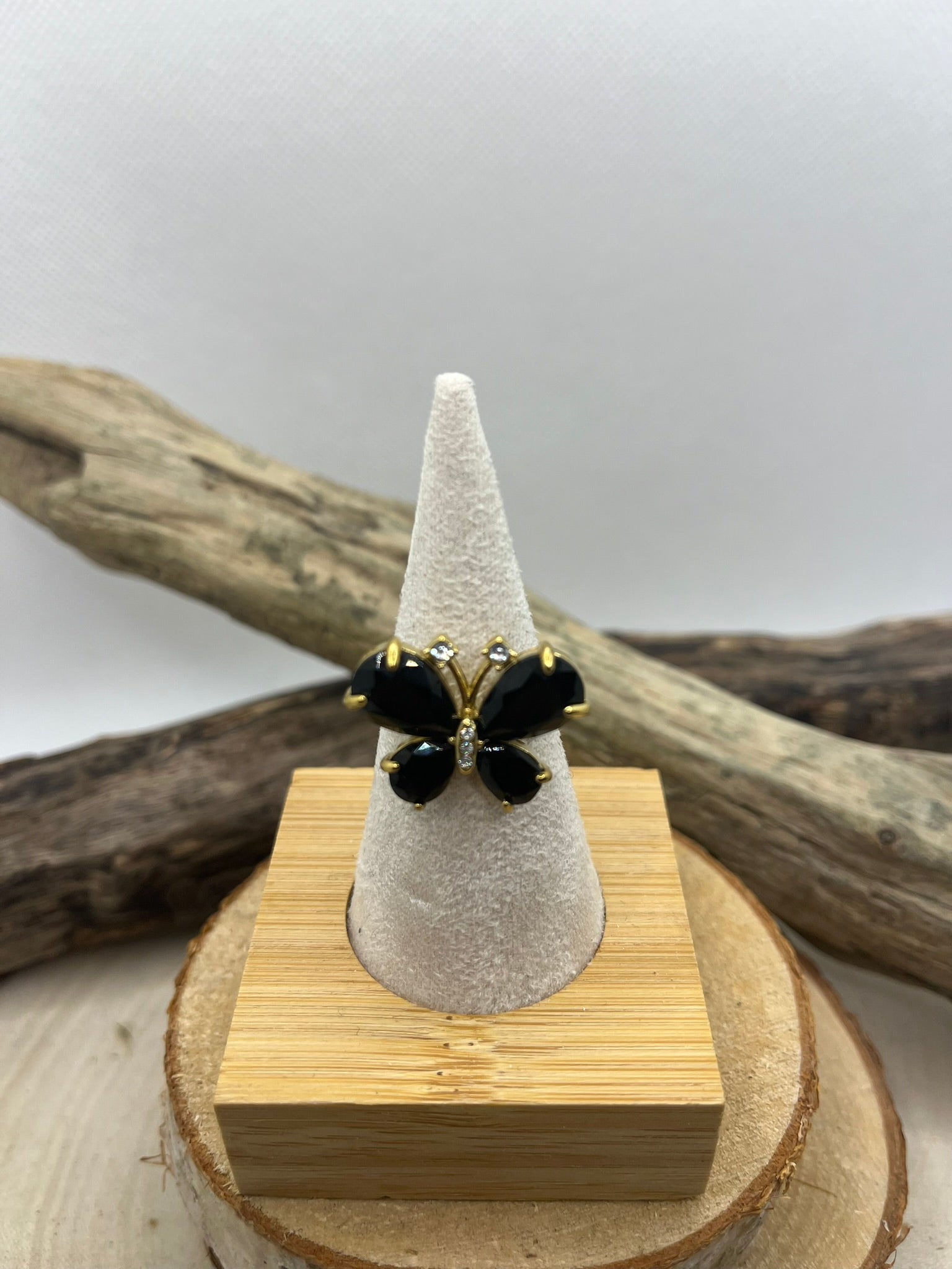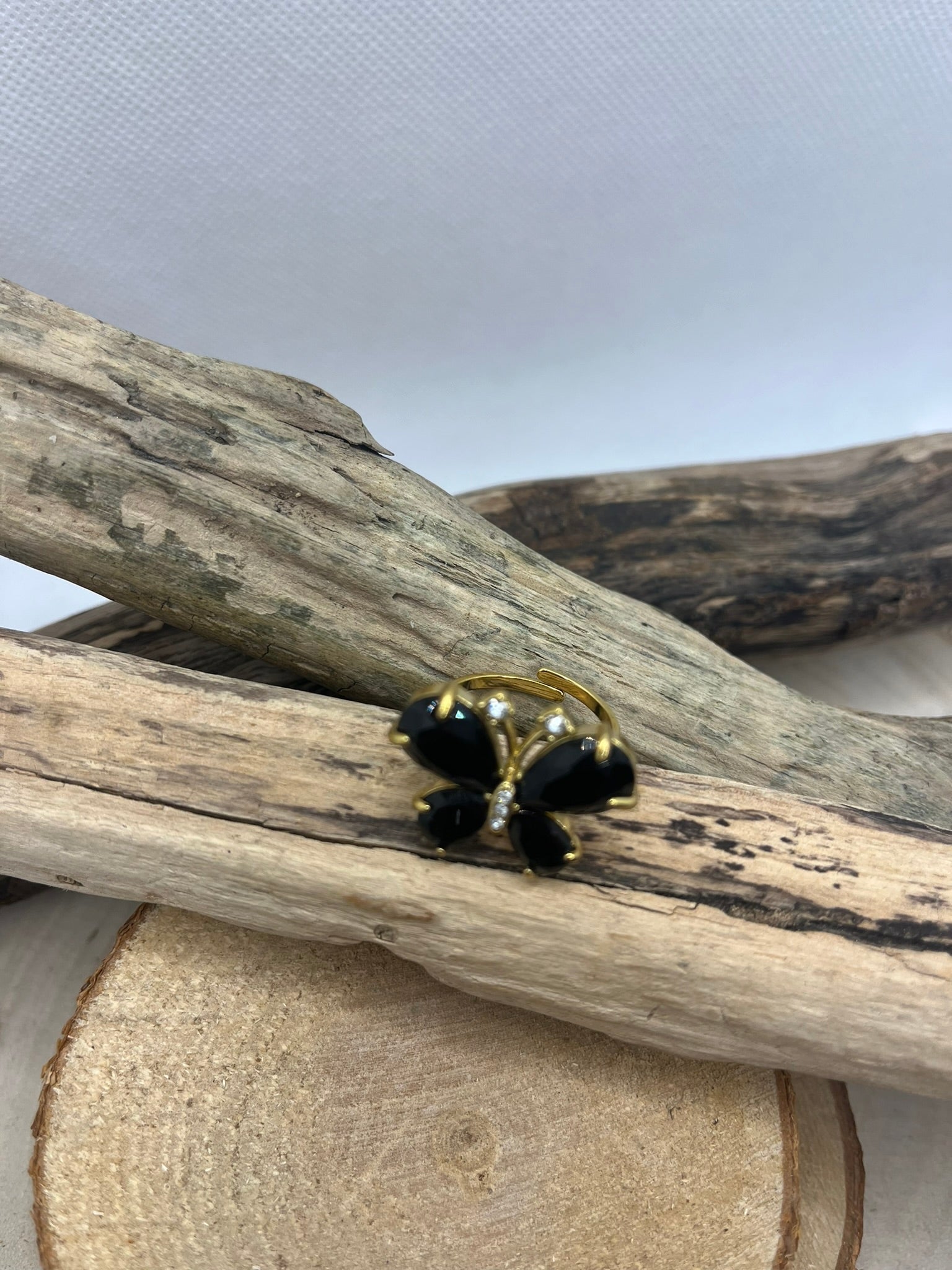 Bague en acier inoxydable Or et Papillon Noire Or ajustable à la mode