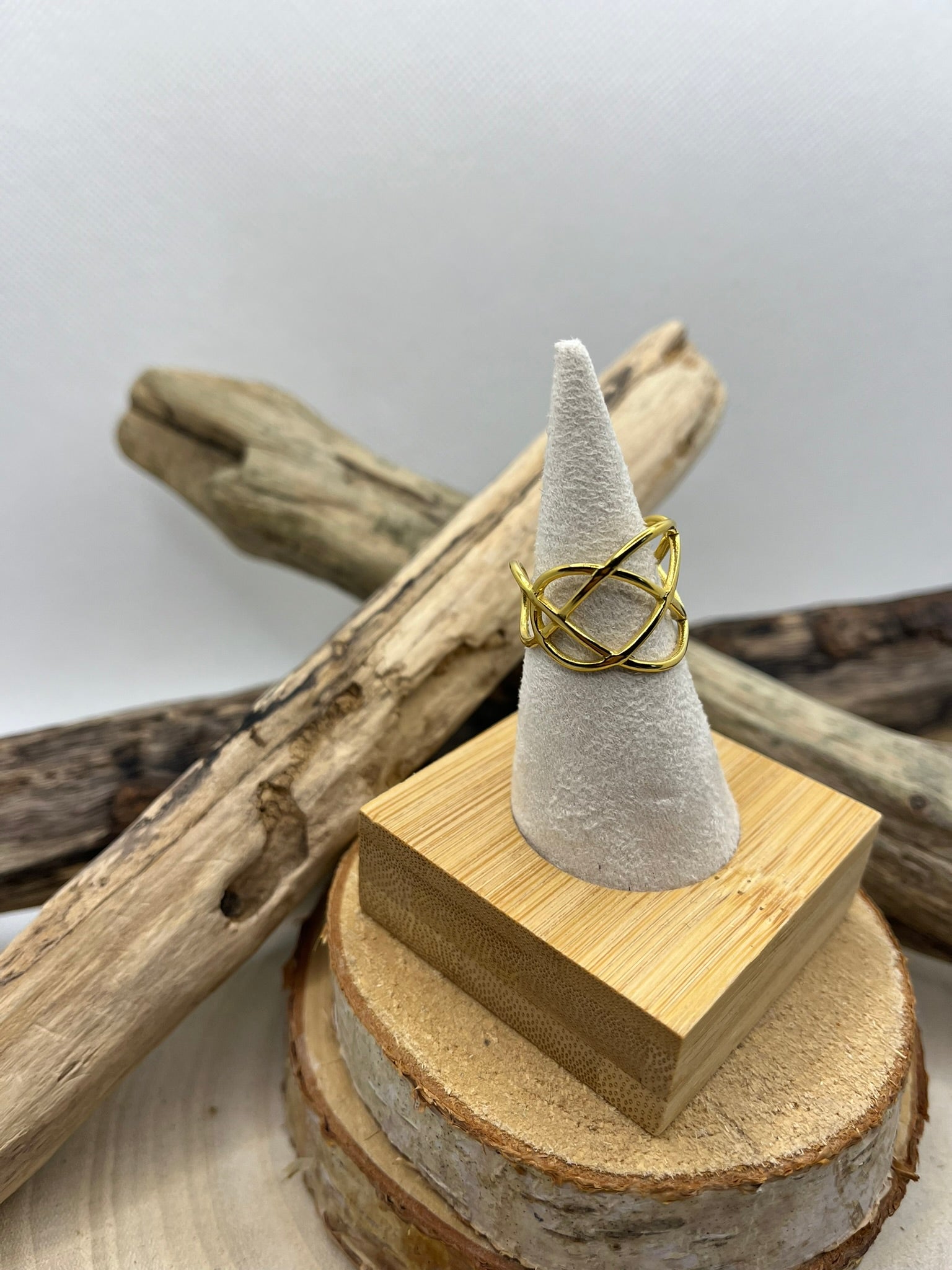 Bague en acier inoxydable tendance couleur doré ajustable à la mode
