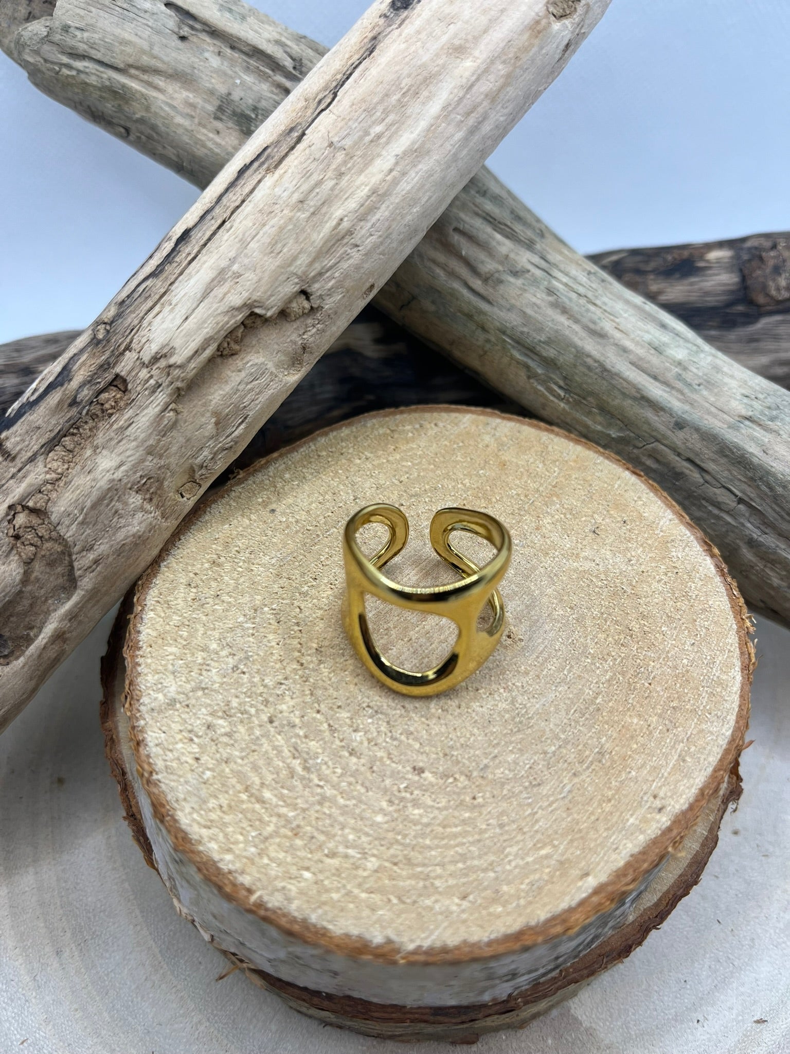 Cette bague à la mode est en acier inoxydable de haute qualité, ce qui la rend hypoallergénique et le rend capable de résister à l'eau. Elle est ornée d'un fini or tendance, et elle peut être ajustée selon votre taille. Faites-vous remarquer et adoptez ce look unique avec cette bague élégante.