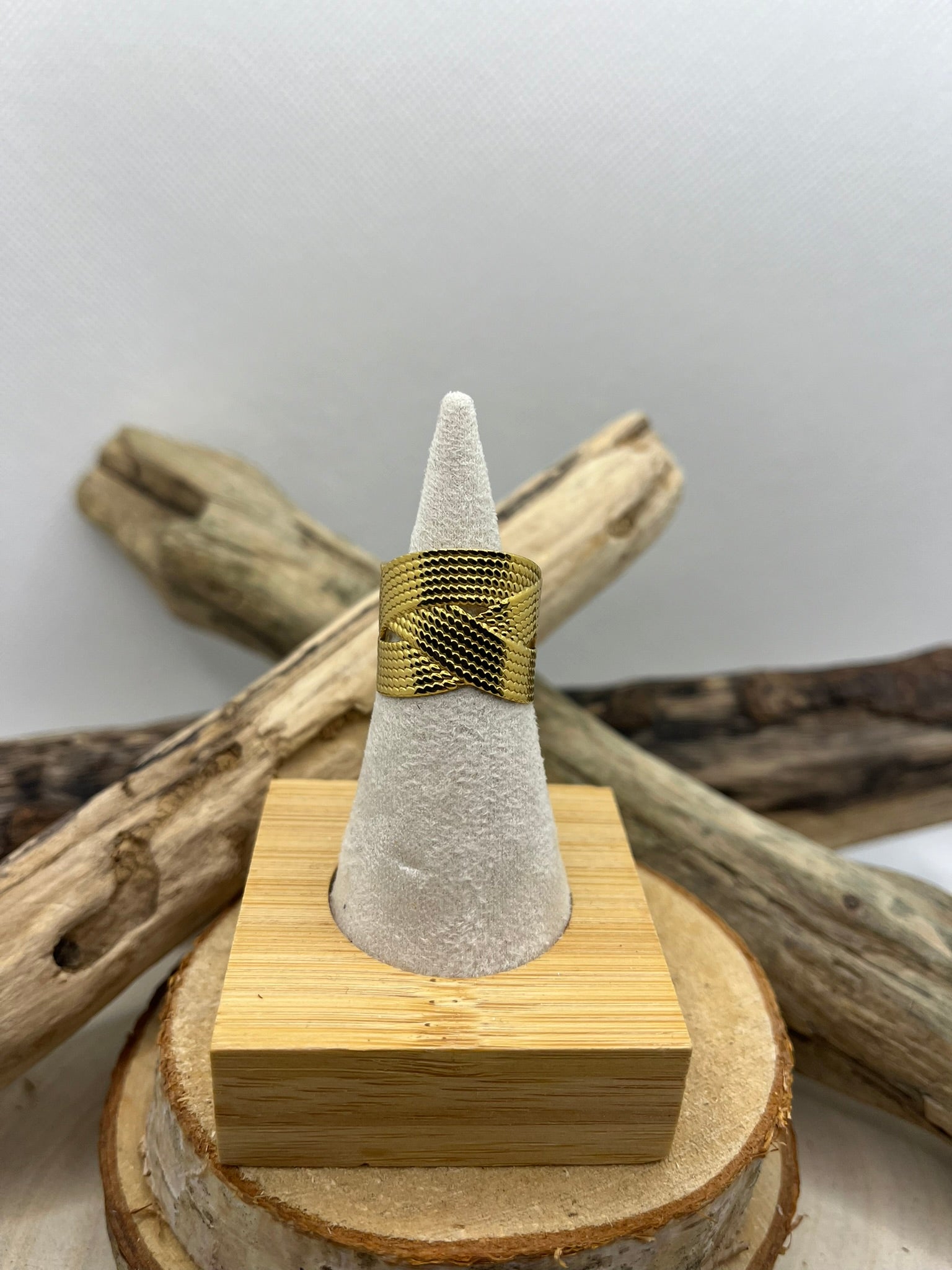 Bague en acier inoxydable tendance couleur Doré ajustable à la mode