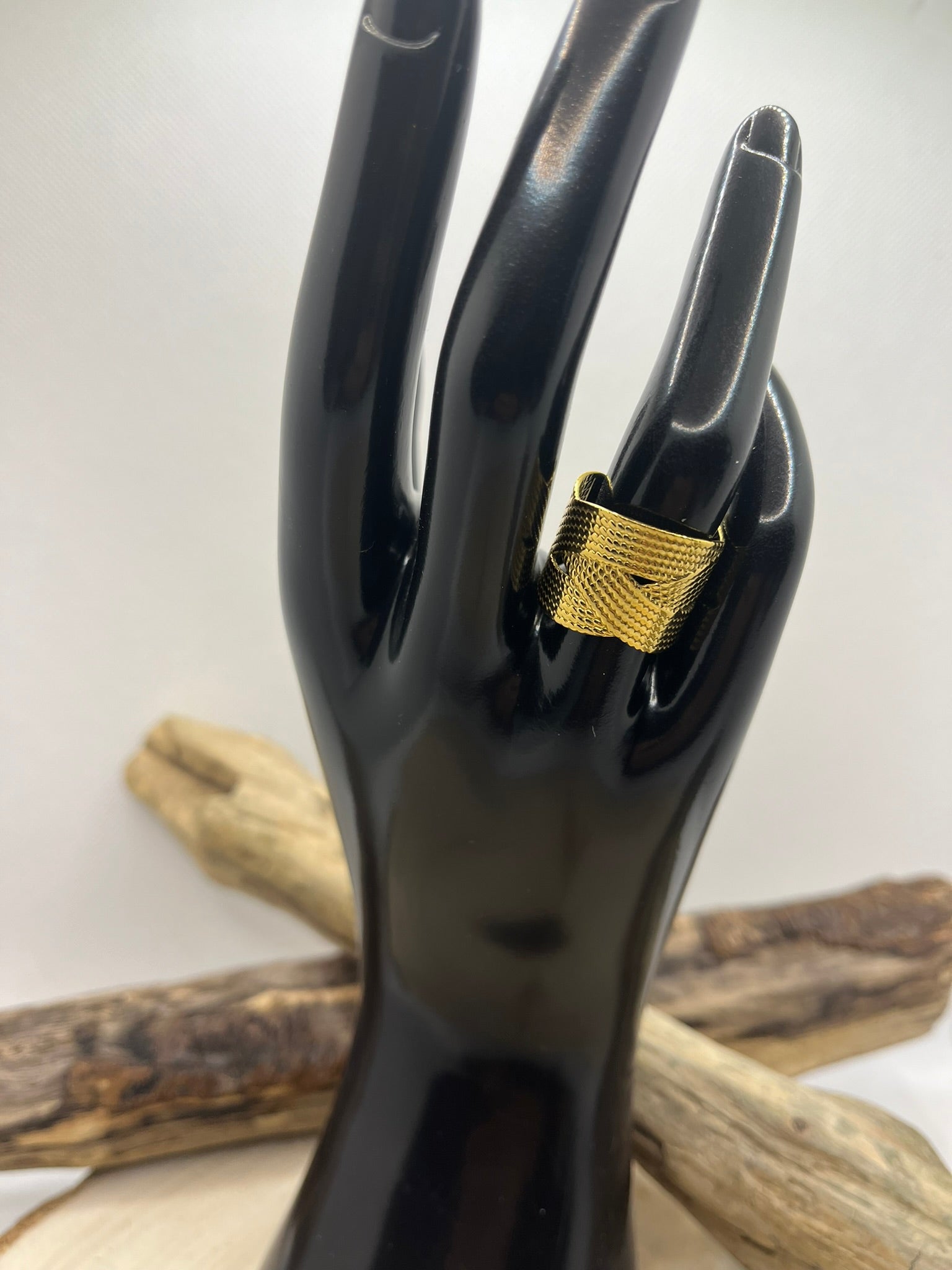 La bague en acier inoxydable couleur doré tendance est un accessoire de mode ajustable et élégant. Sa largeur ajoute une touche moderne et unique à votre look. Fabriquée en acier inoxydable, elle est durable et résistante à l'eau, idéale pour un usage quotidien. Ajoutez une touche de style à votre tenue avec cette bague tendance.