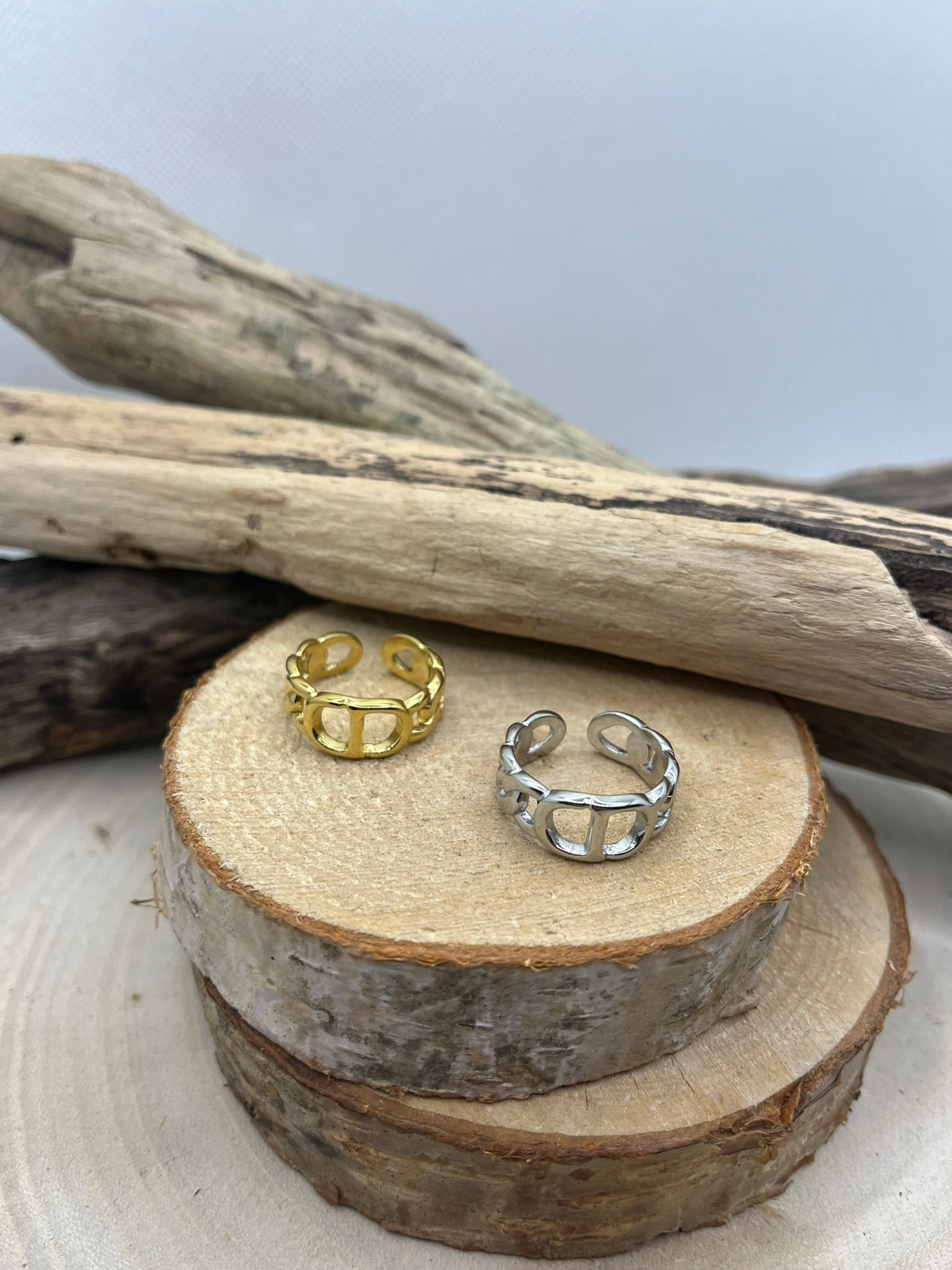Bague en acier inoxydable tendance de couleur Doré et de Couleur Argenté ajustable à la mode