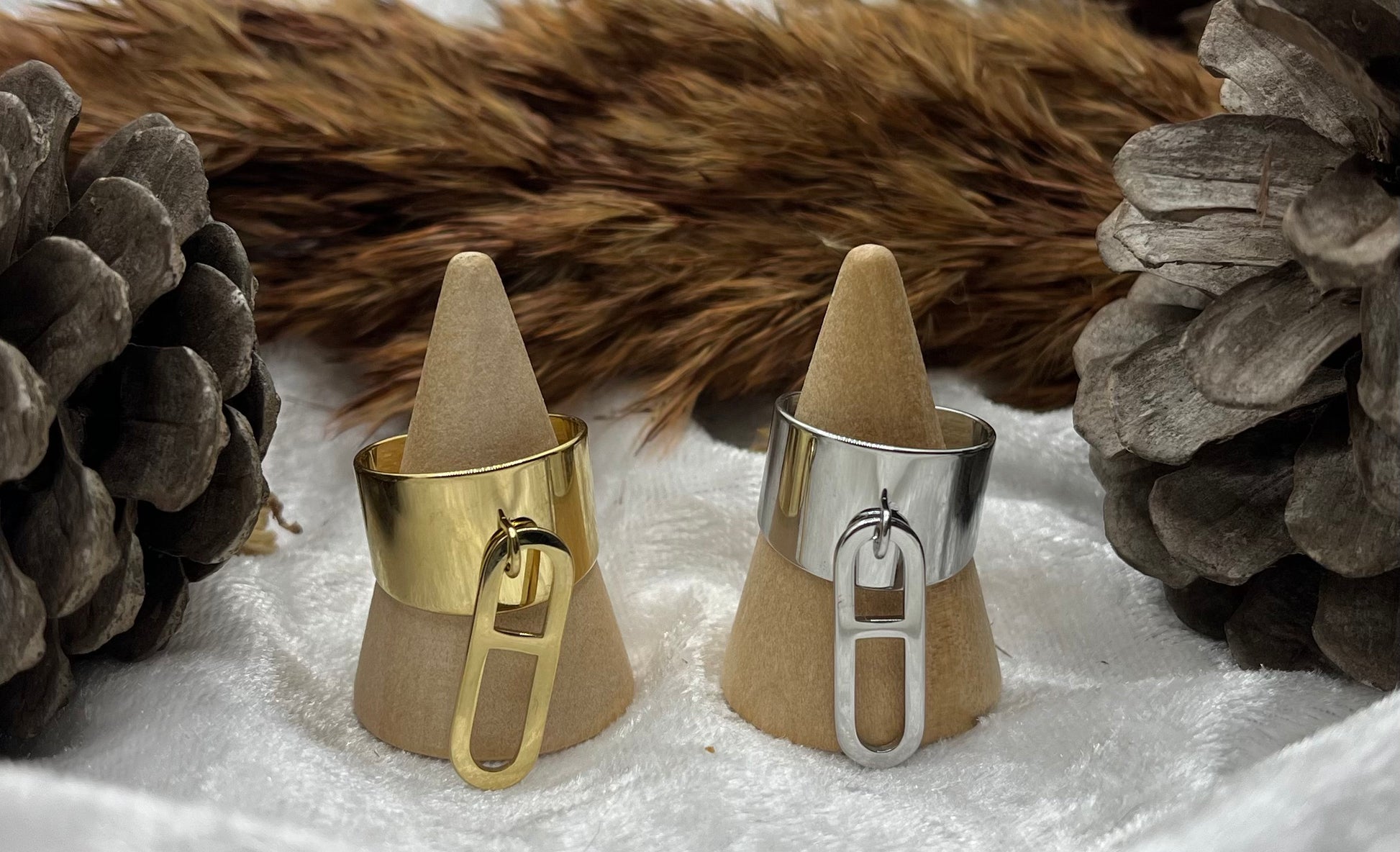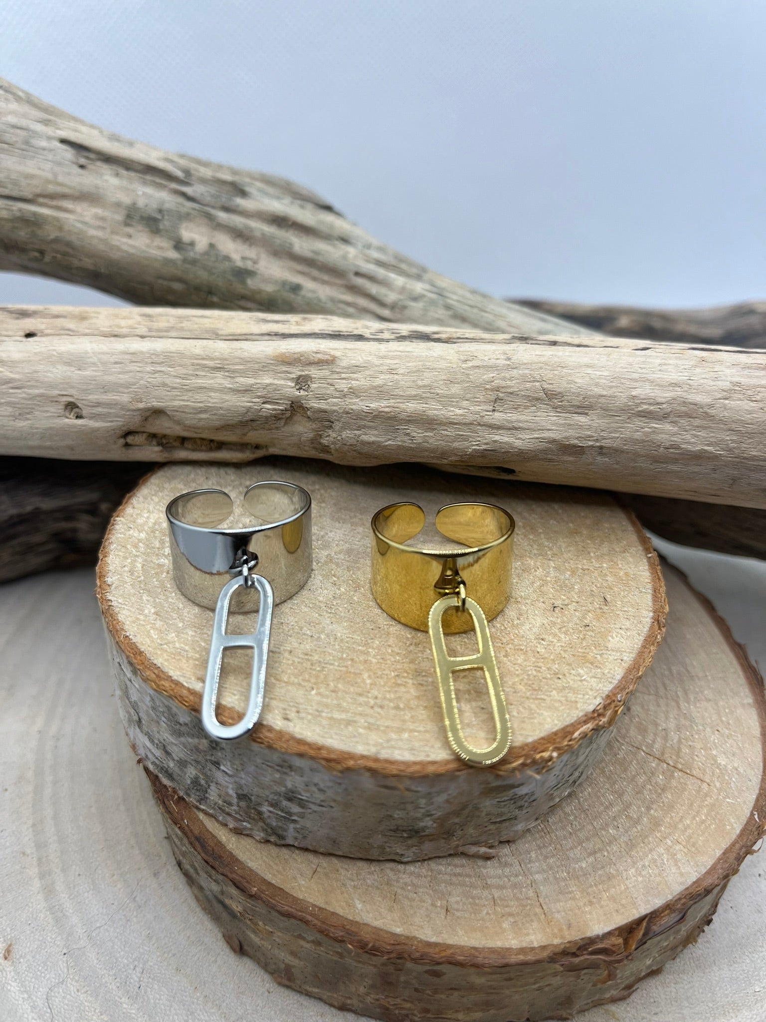 Bague en acier inoxydable tendance de couleur Or et de Couleur Argent ajustable à la mode