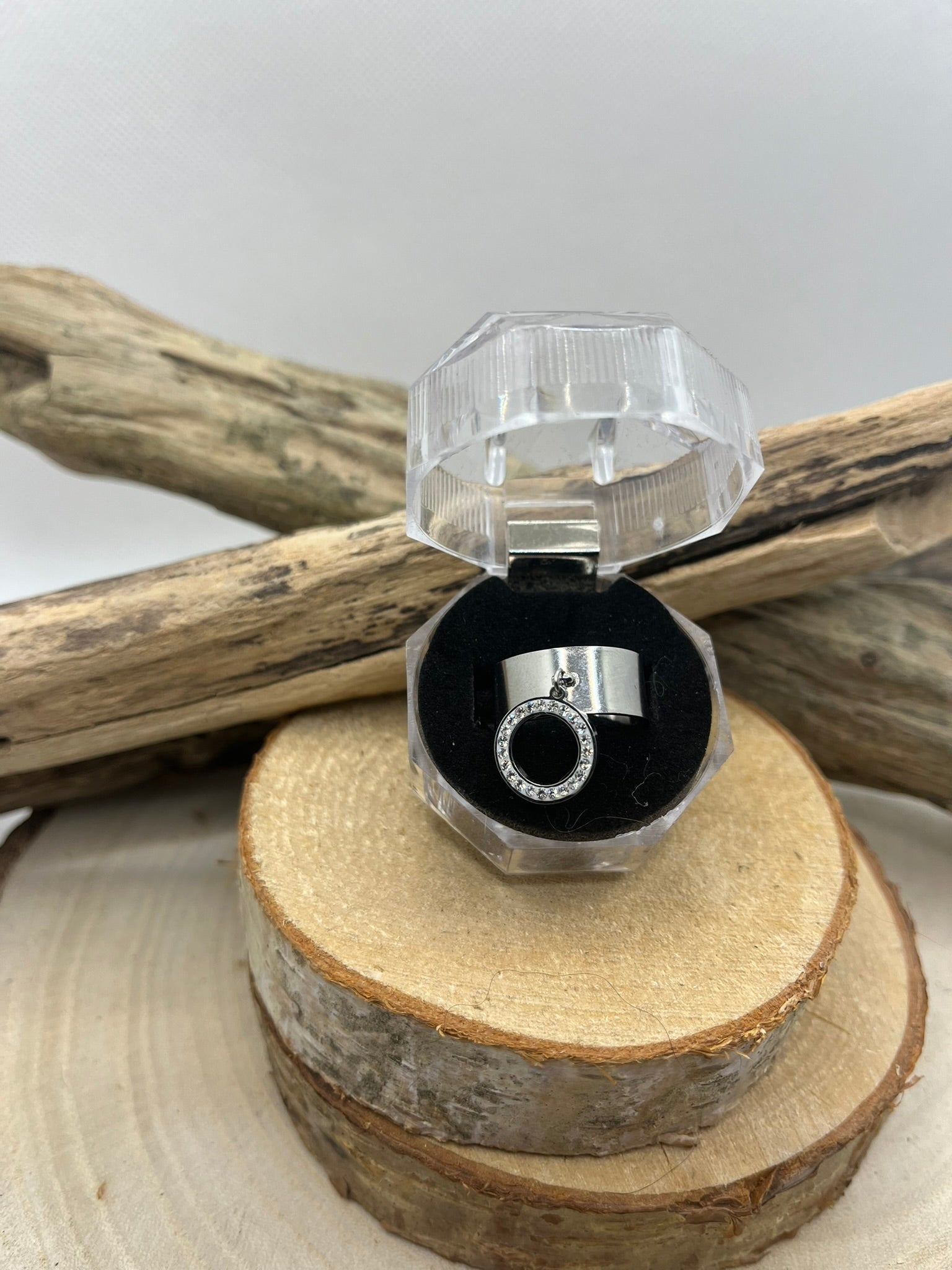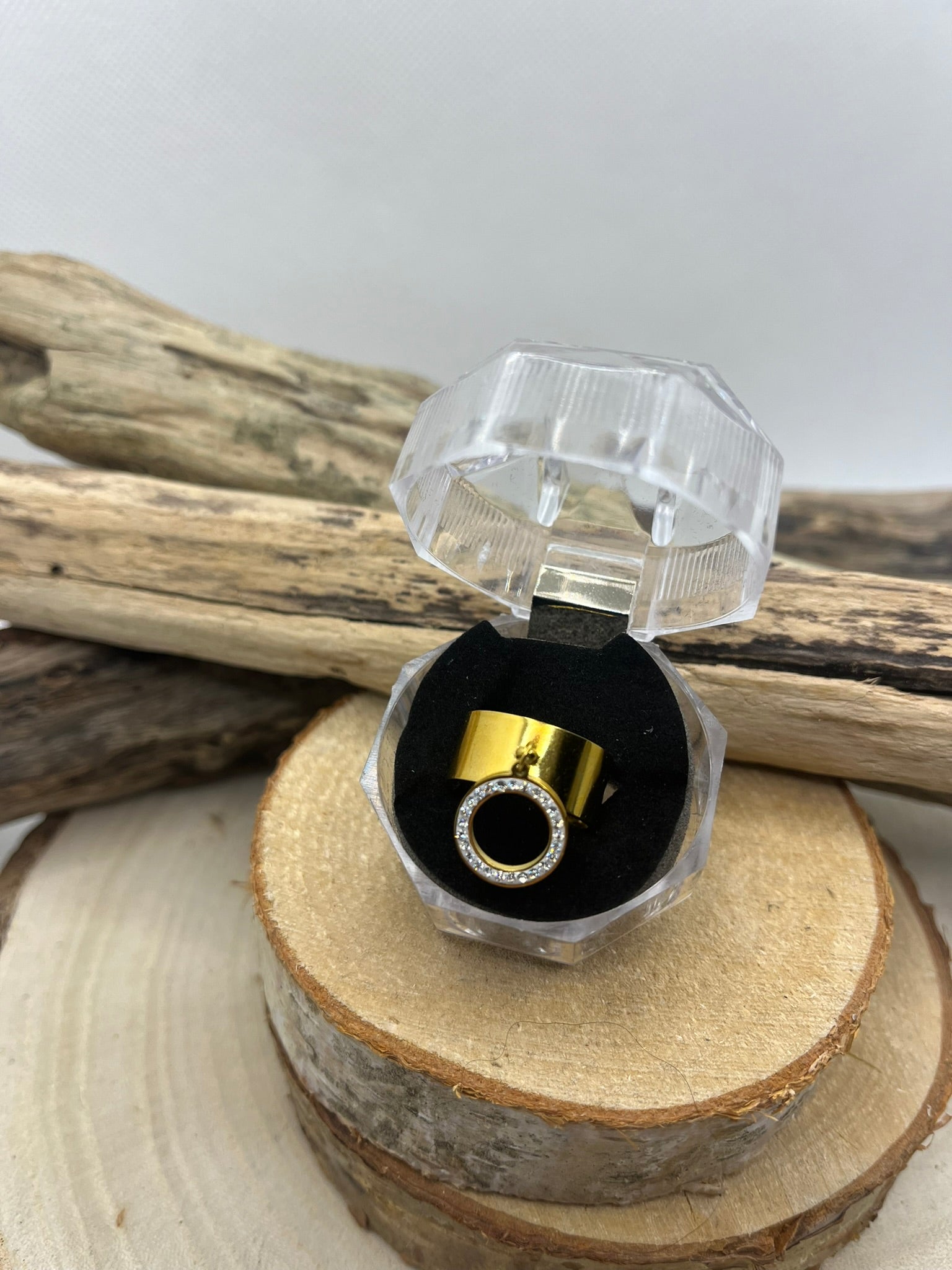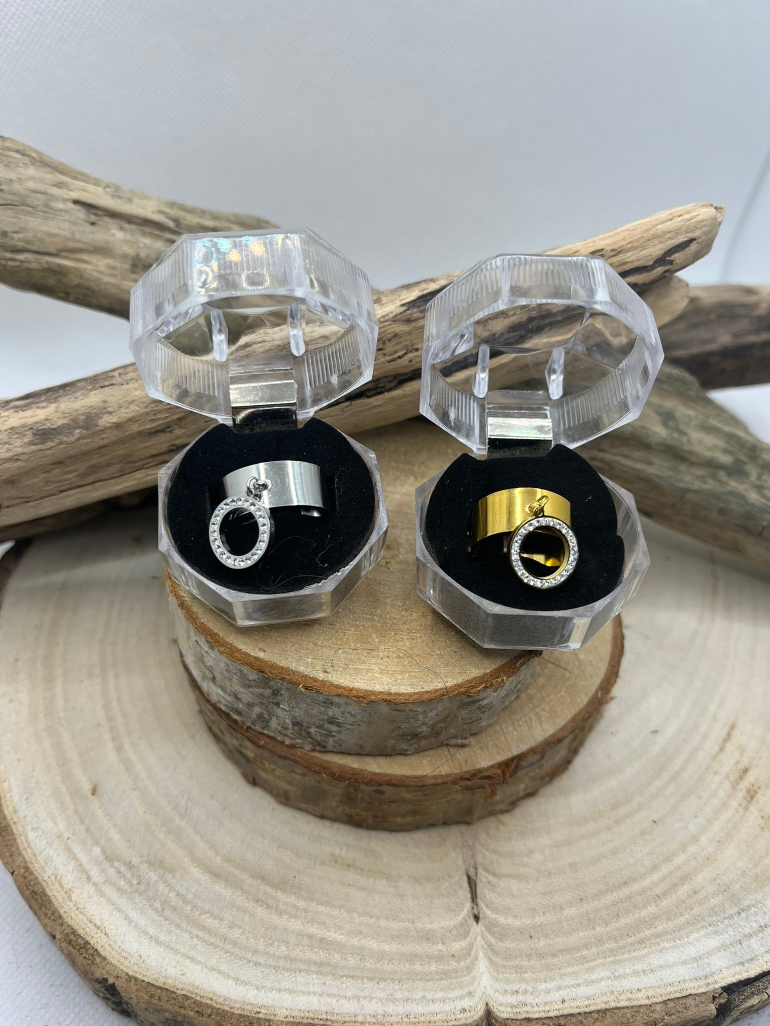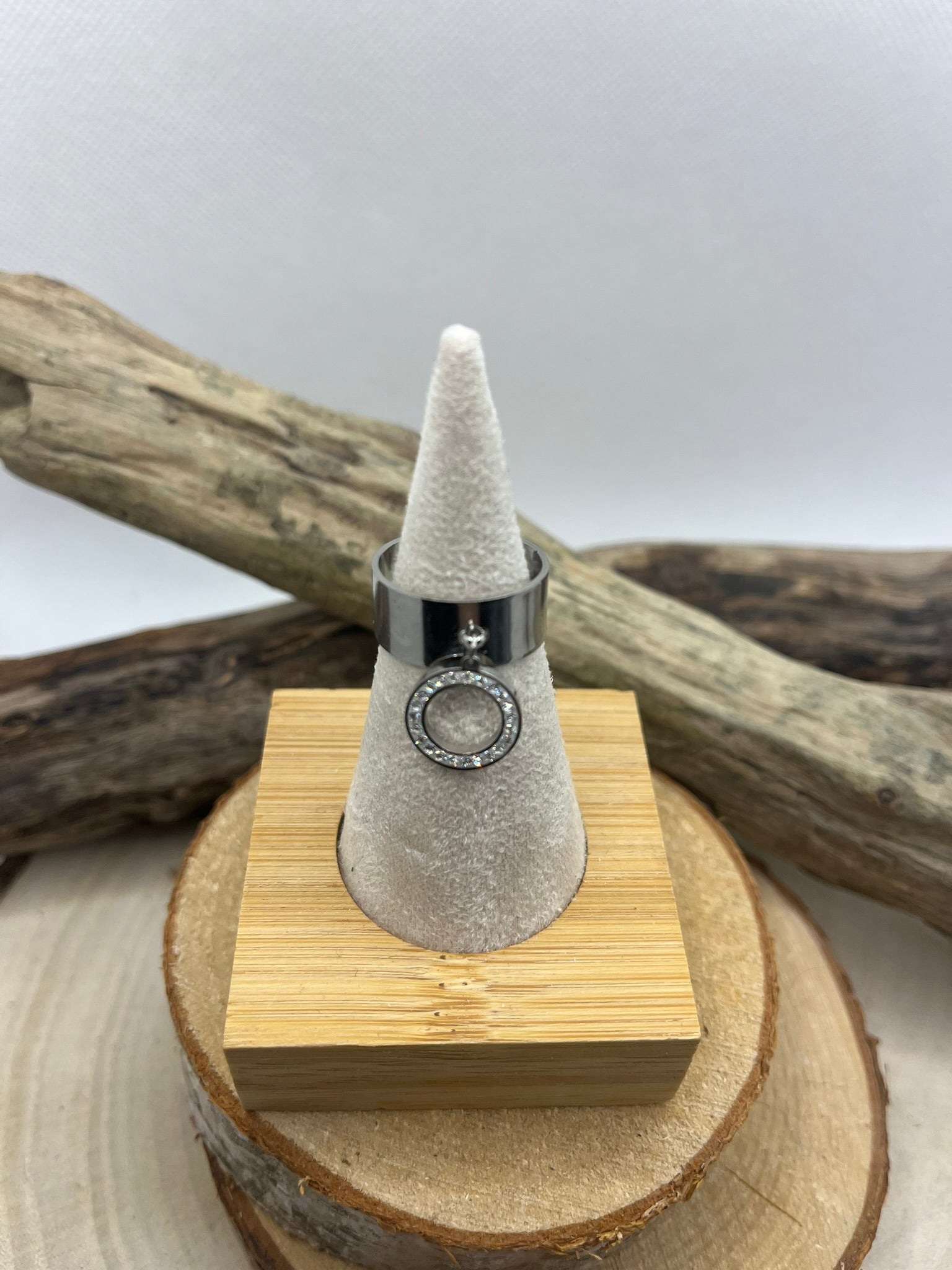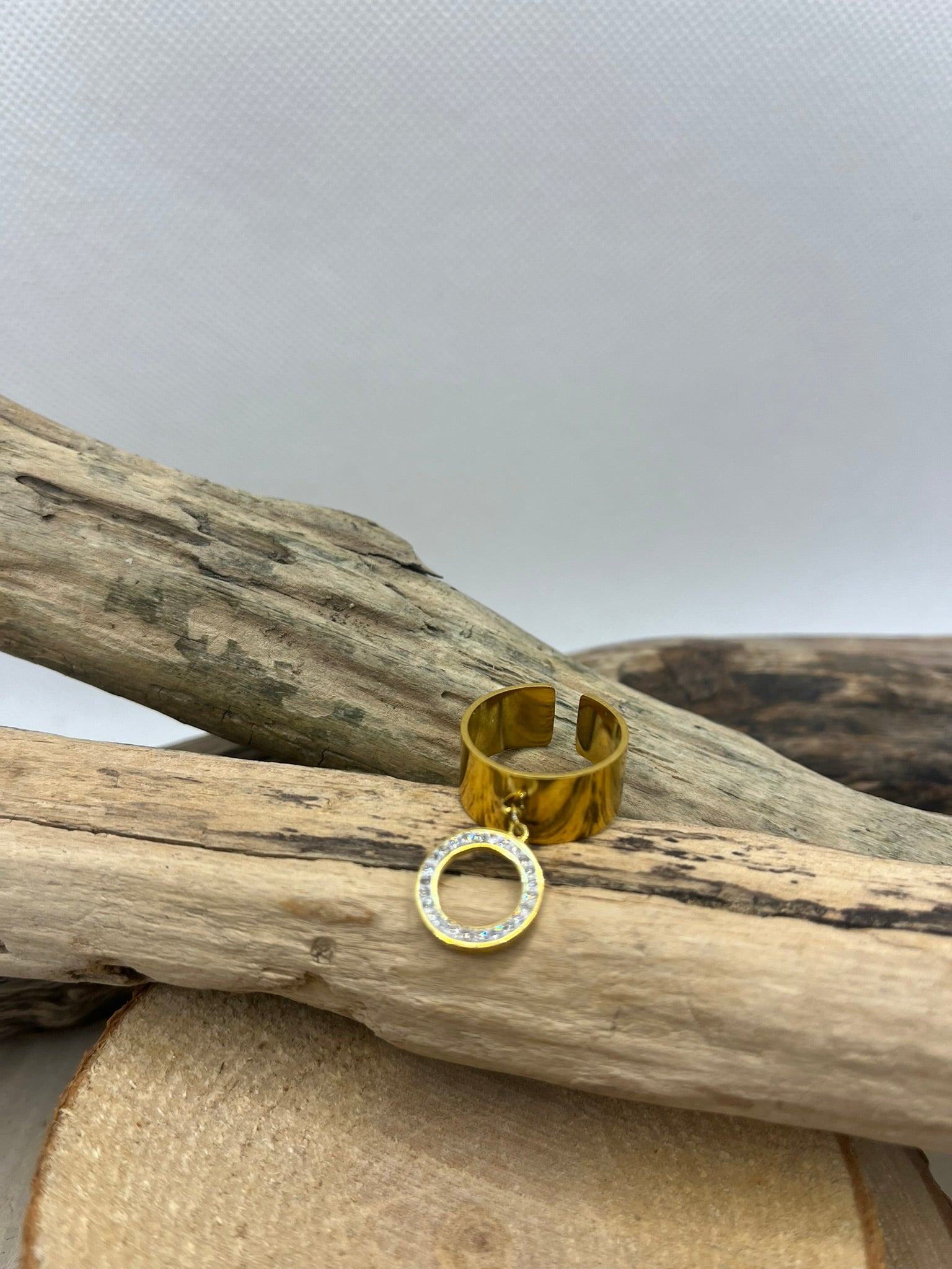 Cette bague en acier inoxydable ajustable est un accessoire tendance et chic. Son pendentif anneau orné de strass ajoute une touche de glamour à votre look. Disponible en doré ou en argenté, elle s'adapte à toutes les occasions. Fabriquée en acier inoxydable, elle est durable et résistante à la corrosion.
