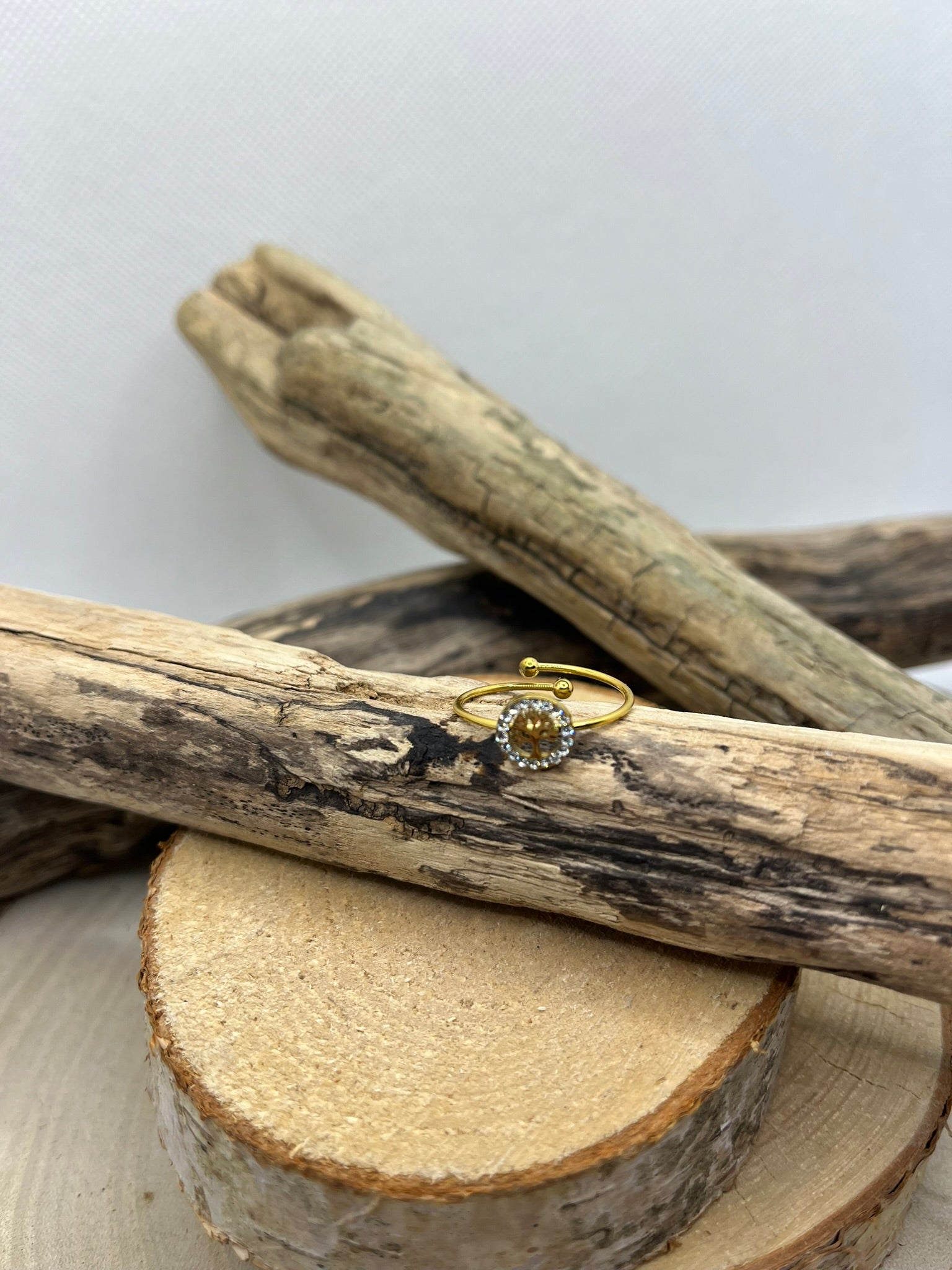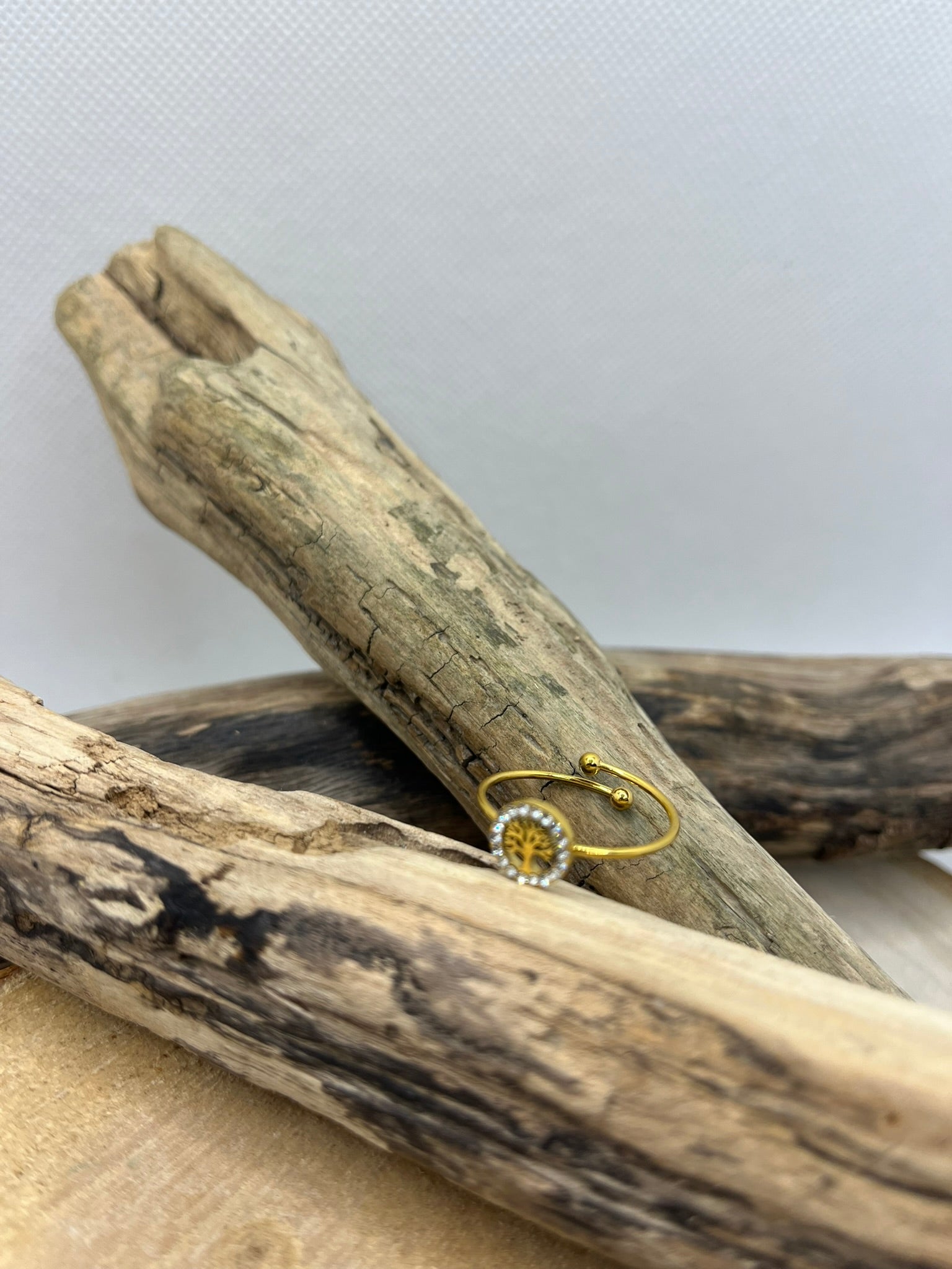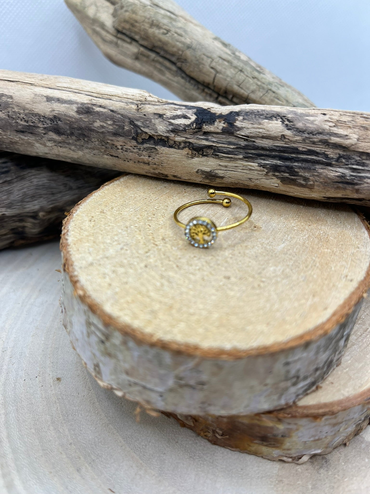 Bague fine en Acier Inoxydable ajustable Arbre de vie ornés de strass brillant - Doré