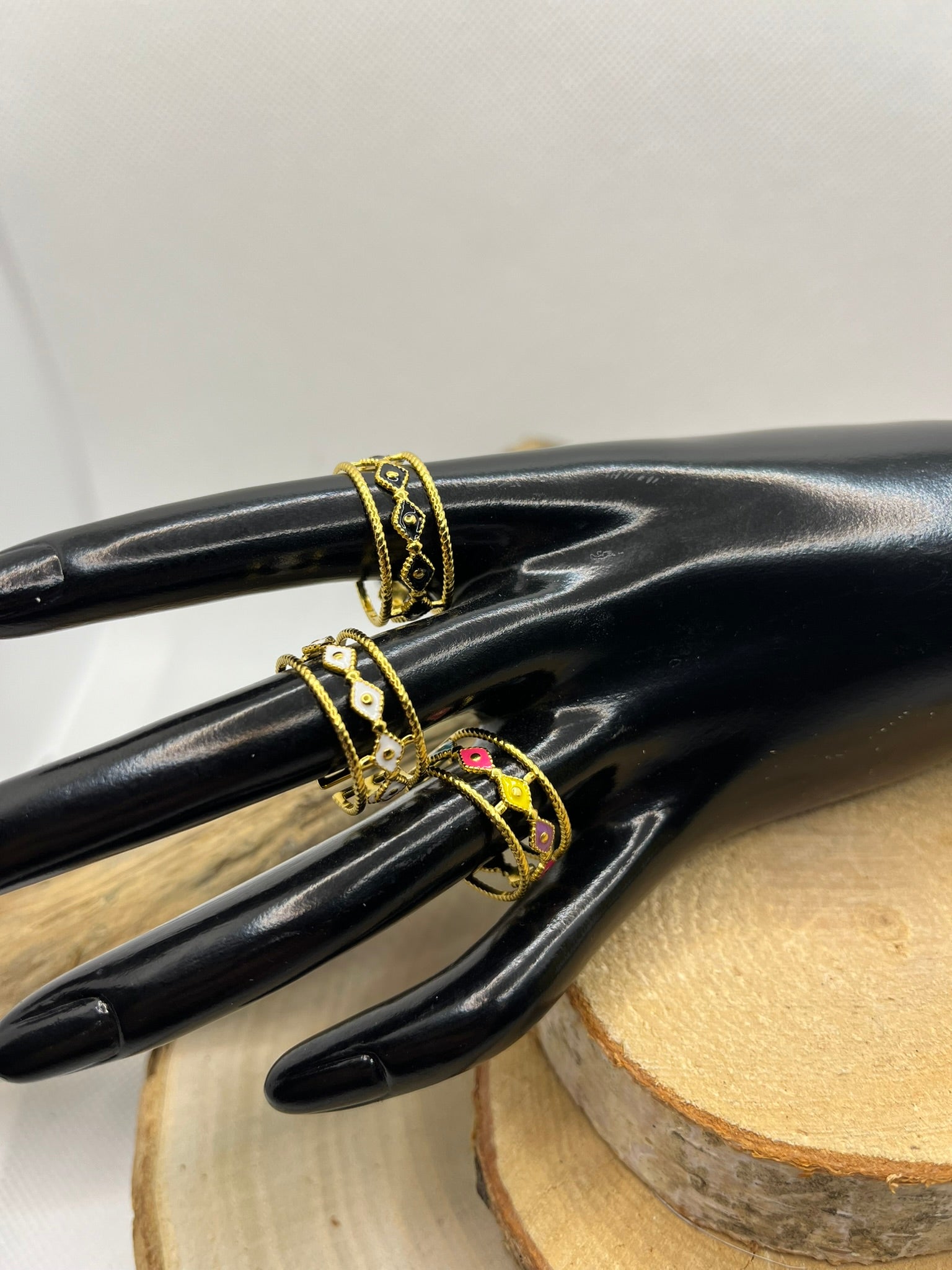 Bague règlable en acier inoxydable doré -idée cadeau - existe en 3 Couleurs blanc, noir et multicouleur