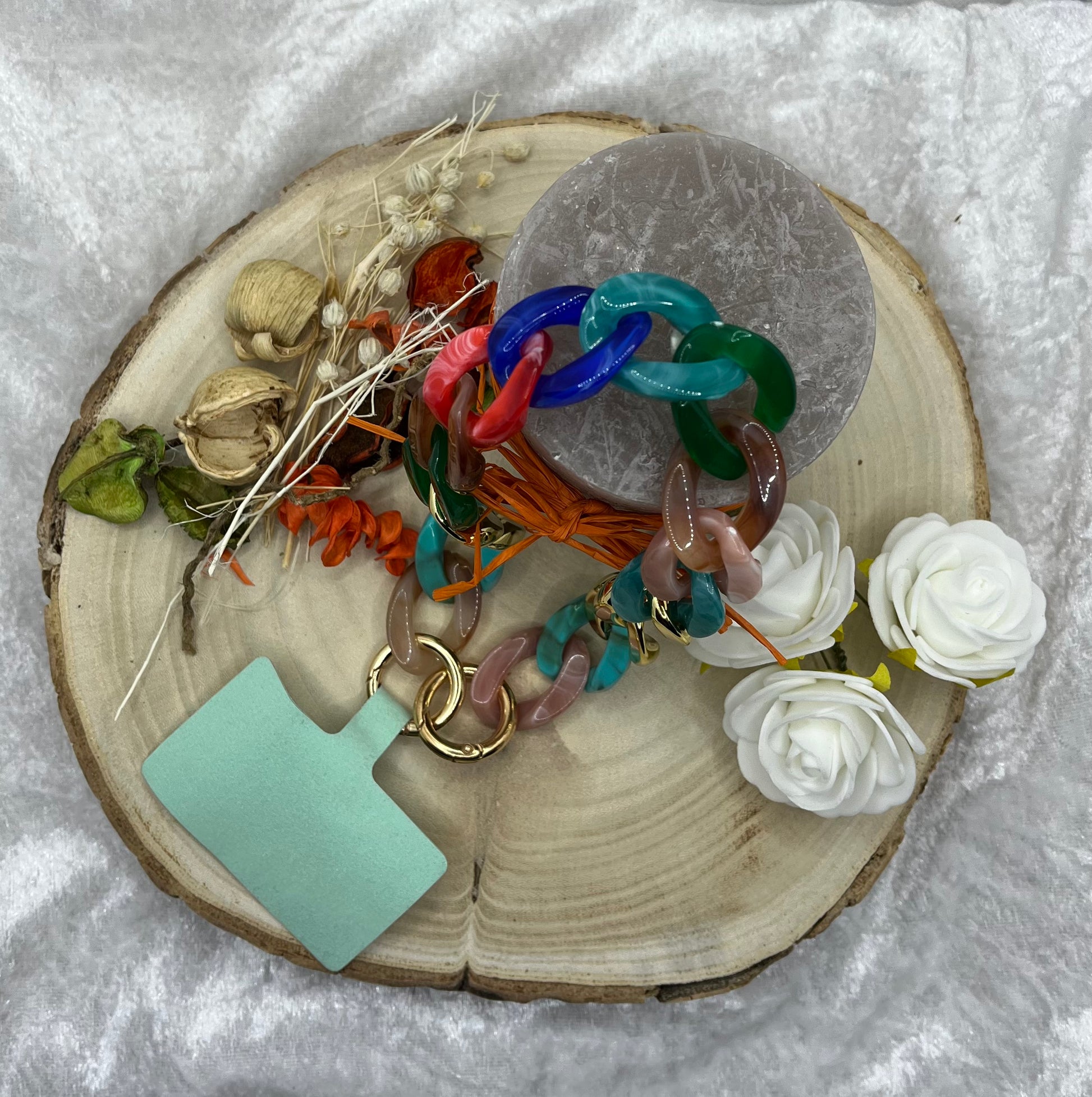 Ce bijou de téléphone Portable est non seulement élégant, mais aussi pratique. Le bracelet chaine grosse maille de couleurs multi couleur et doré permet d'avoir votre téléphone à portée de main tout en ajoutant une touche de style à votre tenue. Le complément parfait pour les personnes en mouvement.