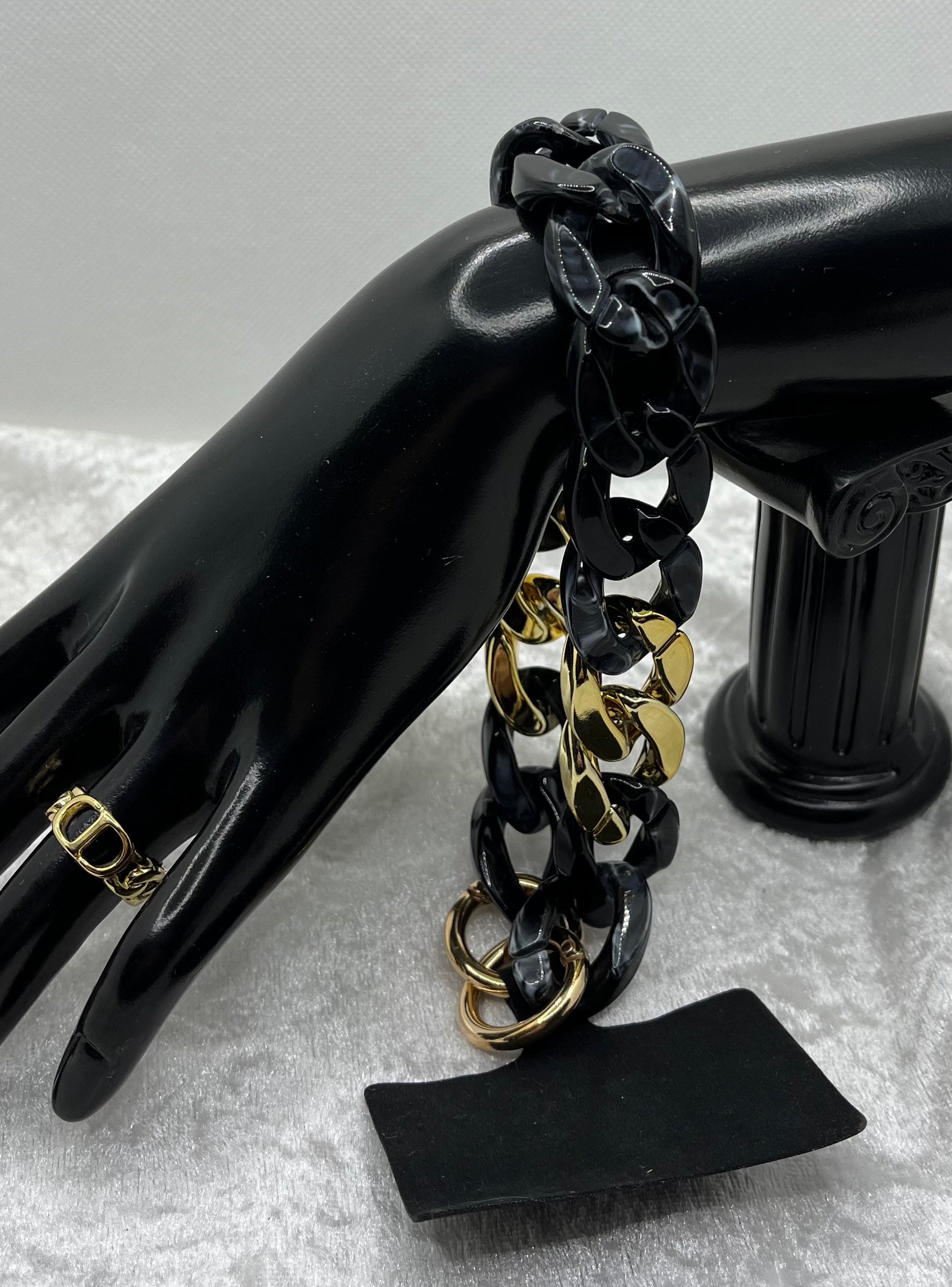 Ajoutez du style et de la praticité à votre téléphone portable avec ce bijou de téléphone portable en forme de bracelet, doté d'une chaîne à maille épaisse de couleur noir-gris. Gardez votre téléphone à portée de main tout en ajoutant une touche de mode à votre tenue.