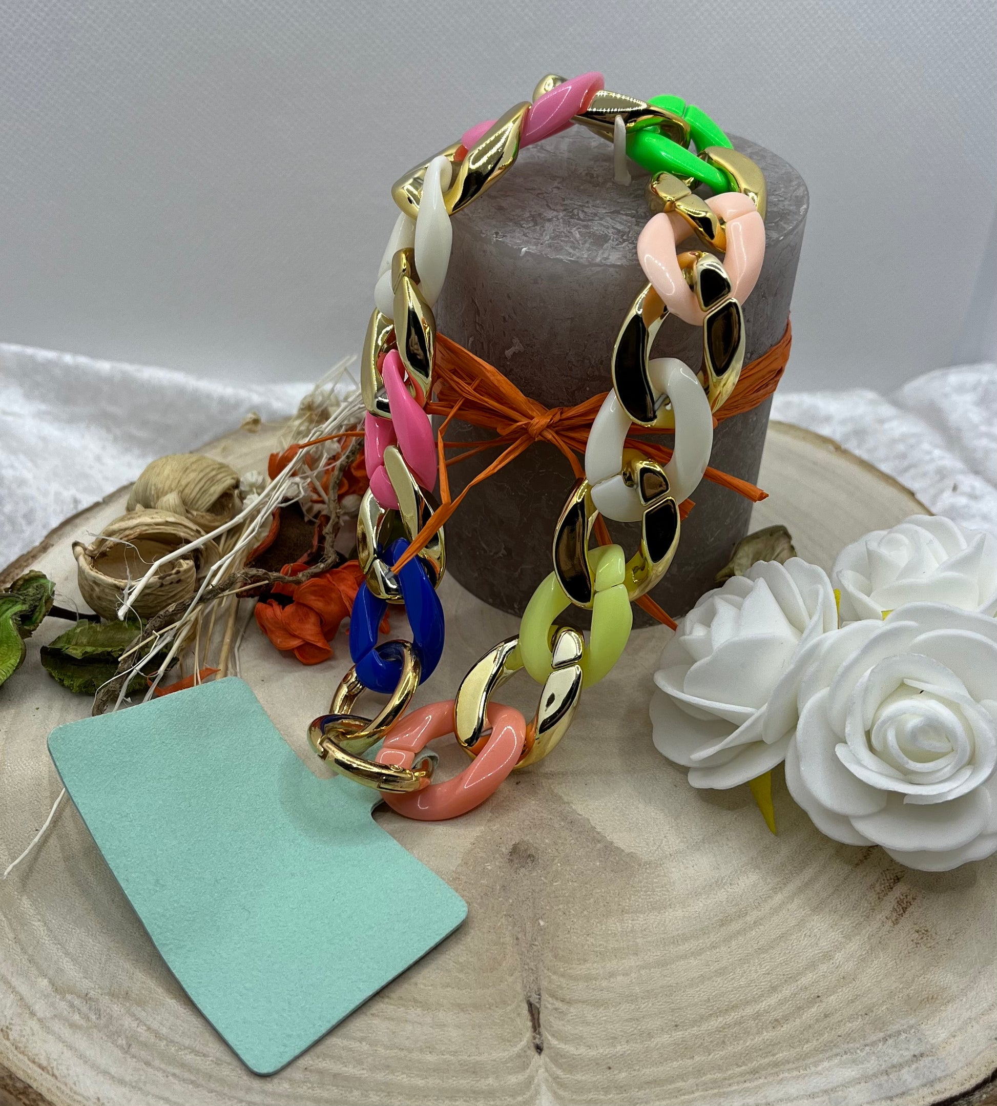 Ce bijou de téléphone portable est un accessoire tendance et pratique. Grâce à sa chaîne grosse maille multi couleur et doré, il vous permet de garder votre téléphone à portée de main en toute élégance. Avec son design moderne, ce bracelet est aussi un véritable bijou à porter au poignet, pour un look unique et stylé.