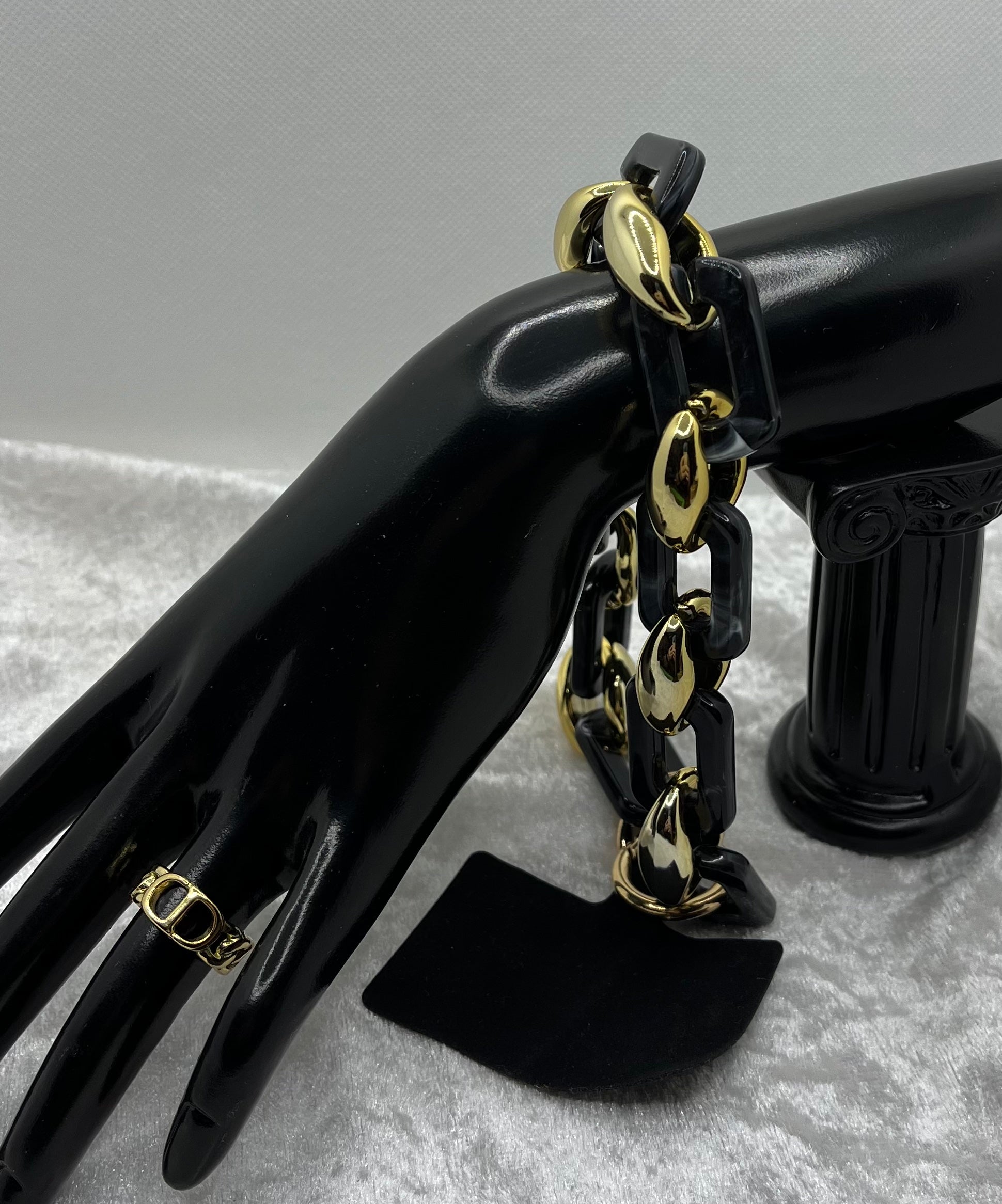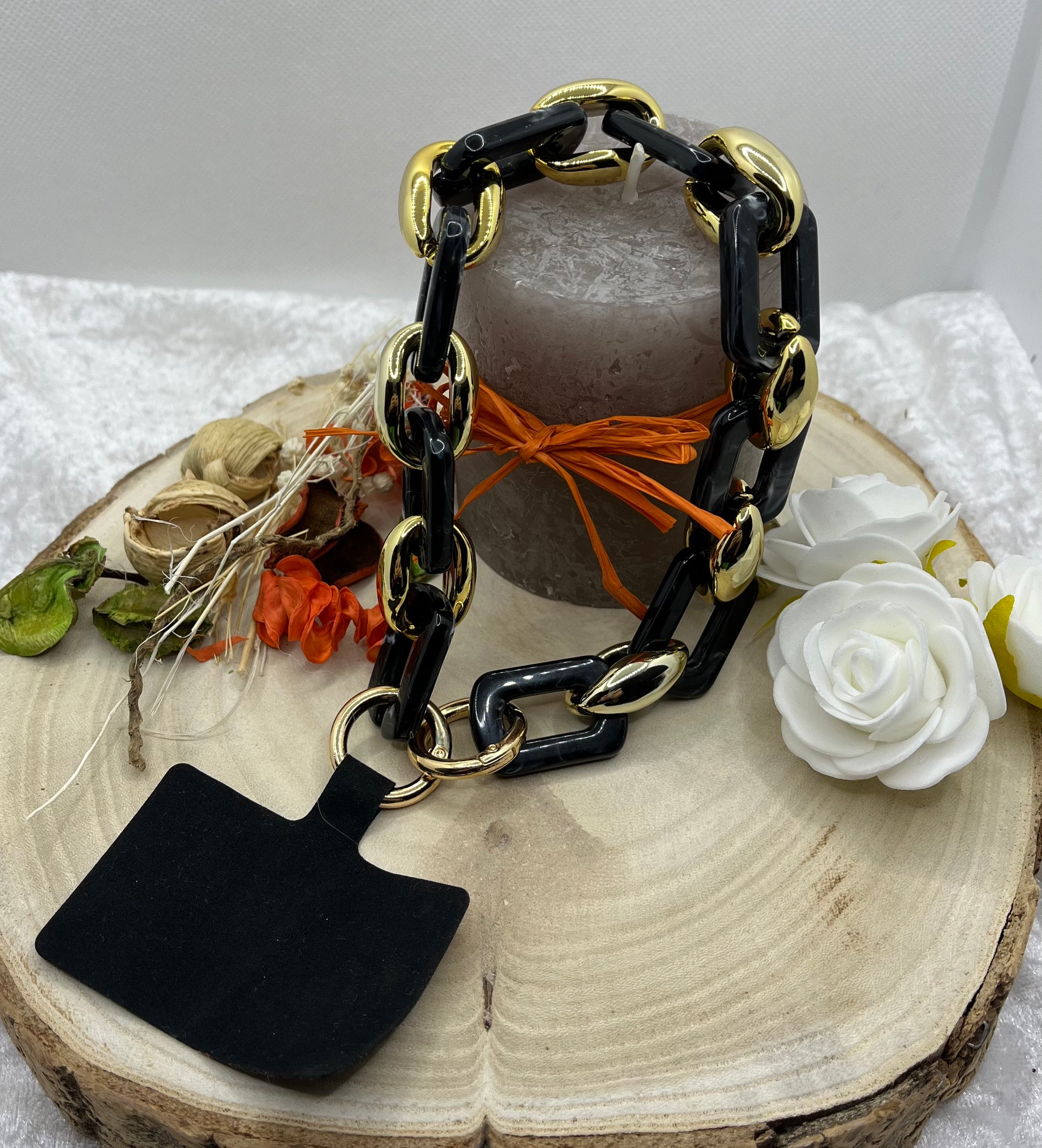 Ce bijou de téléphone portable en bracelet de chaine à grosse maille est idéal pour garder votre téléphone portable à portée de main et à la mode. Avec ses couleurs noir gris et doré, il ajoutera une touche élégante à votre tenue tout en vous offrant la commodité de toujours savoir où se trouve votre téléphone.