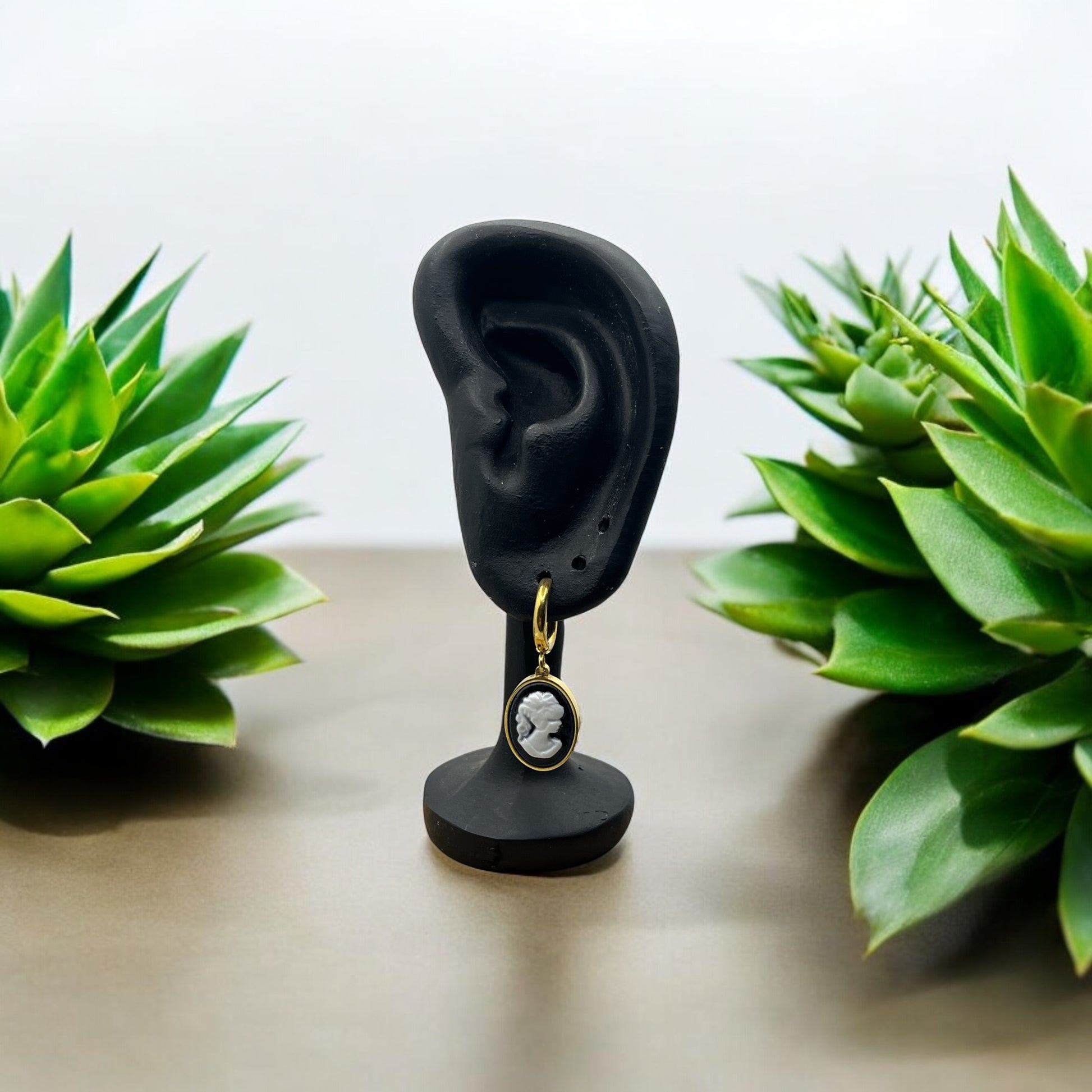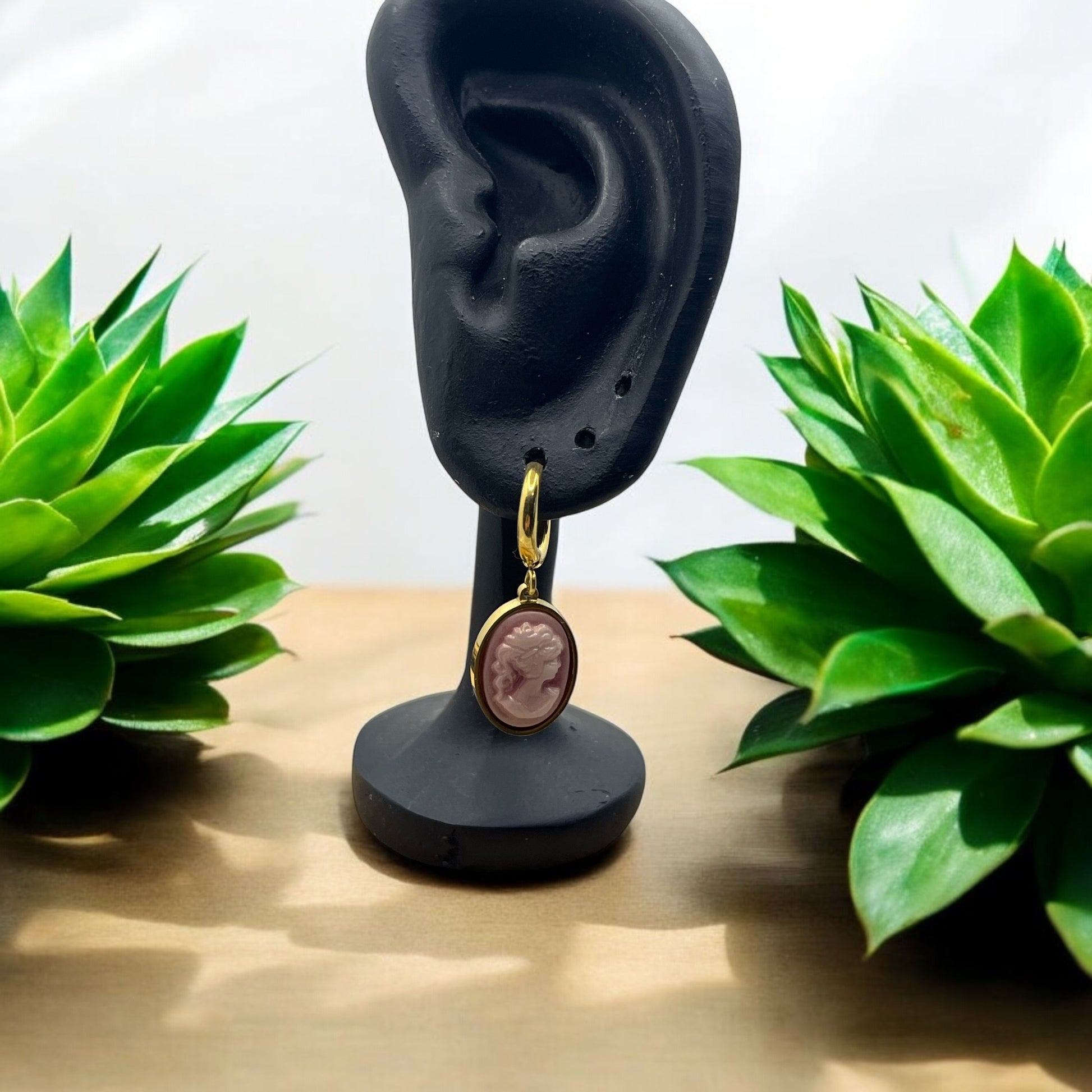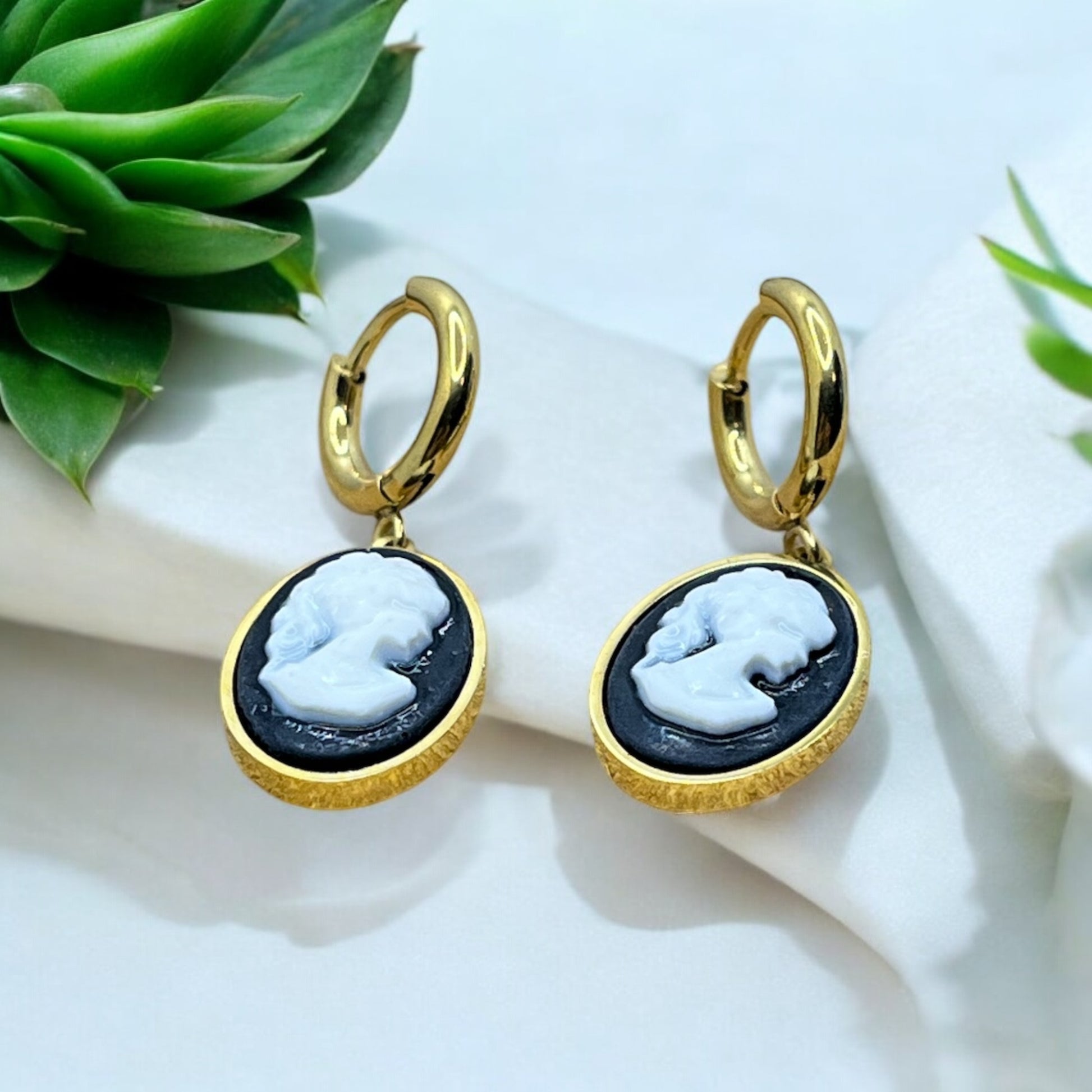 Ces boucles d'oreilles élégantes sont en acier inoxydable doré avec un pendentif "Camée" existe en 3 couleurs. Légères et confortables, elles ajoutent une touche de sophistication à n'importe quelle tenue. Fabriquées avec des matériaux durables, ces boucles d'oreilles sont un investissement à long terme pour votre collection de bijoux.