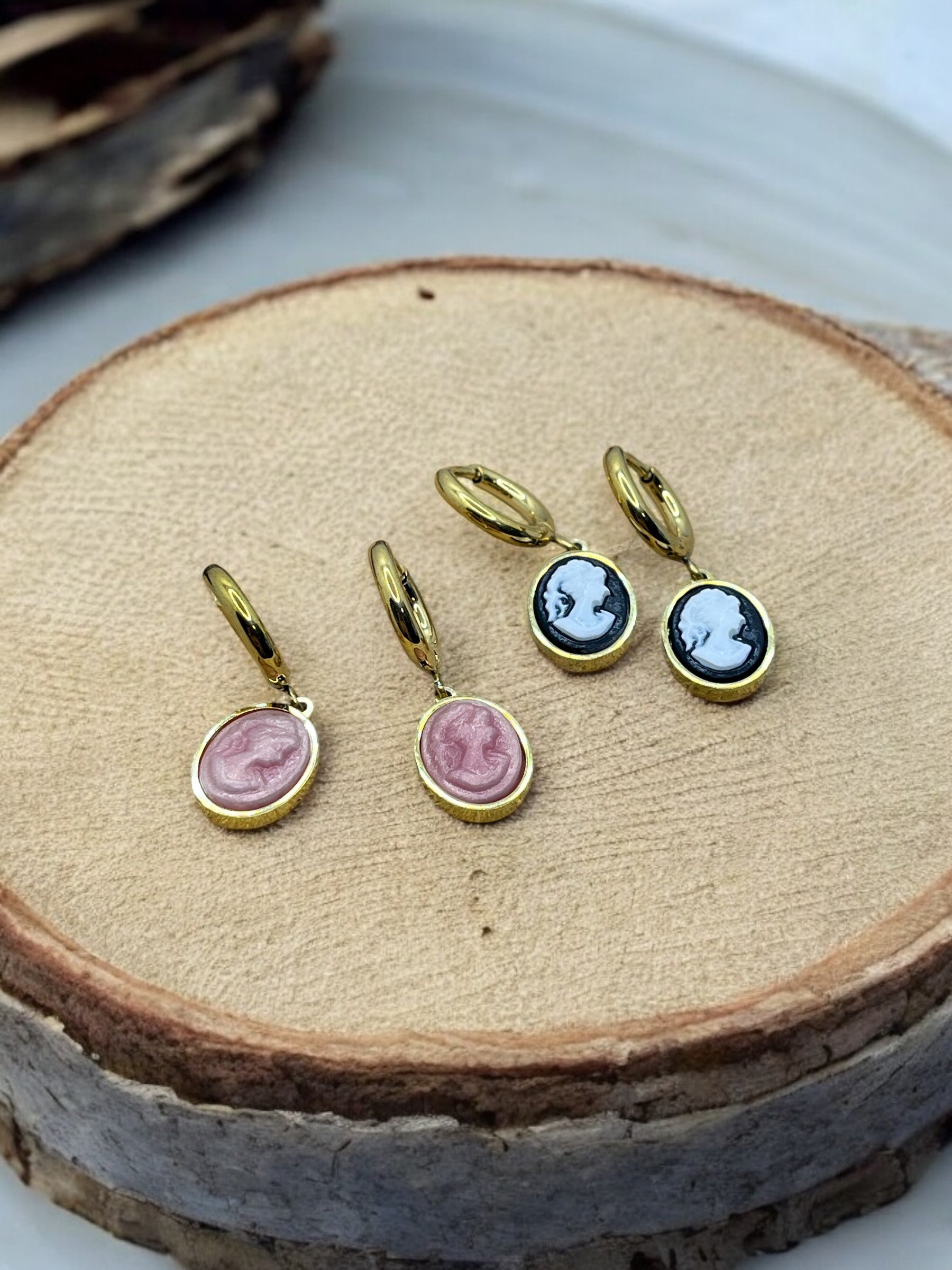 Ces boucles d'oreilles élégantes sont en acier inoxydable doré avec un pendentif "Camée" existe en 3 couleurs. Légères et confortables, elles ajoutent une touche de sophistication à n'importe quelle tenue. Fabriquées avec des matériaux durables, ces boucles d'oreilles sont un investissement à long terme pour votre collection de bijoux.