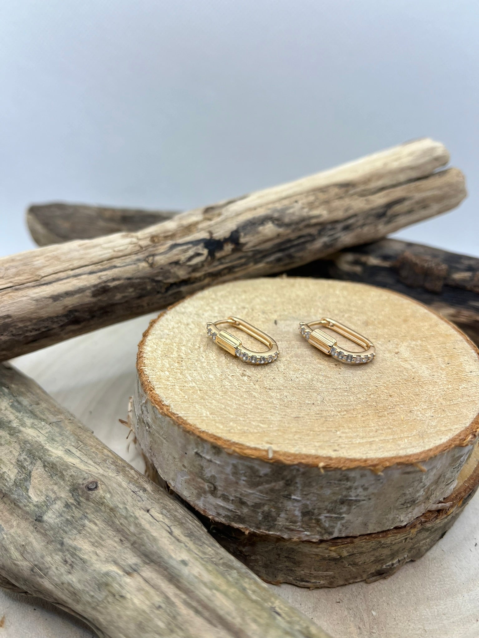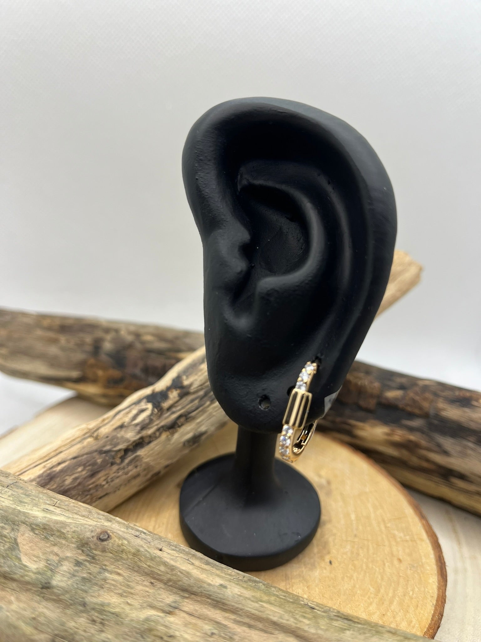 Boucles d'oreilles créoles style agraphe ornée de strass brillant - Acier inoxydable