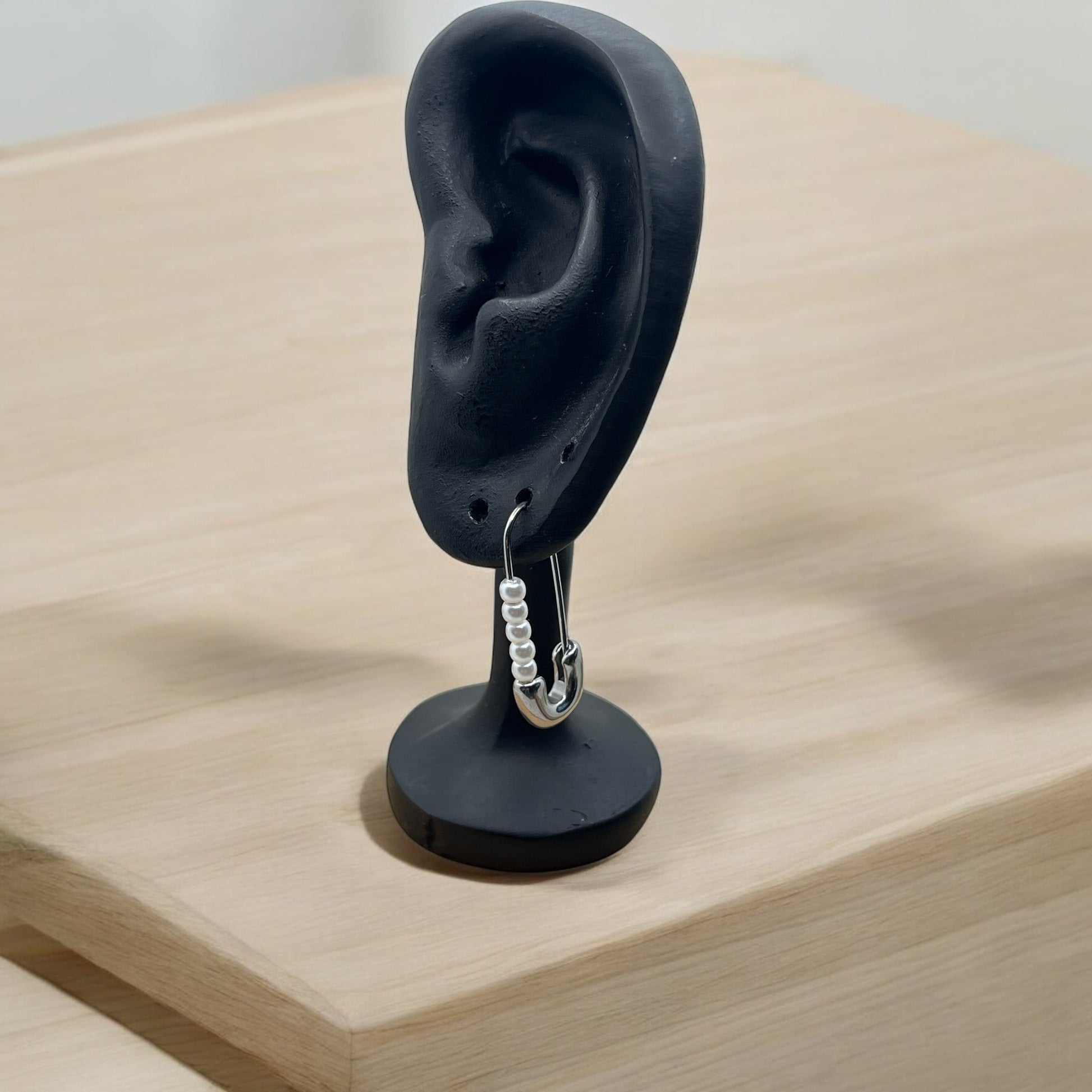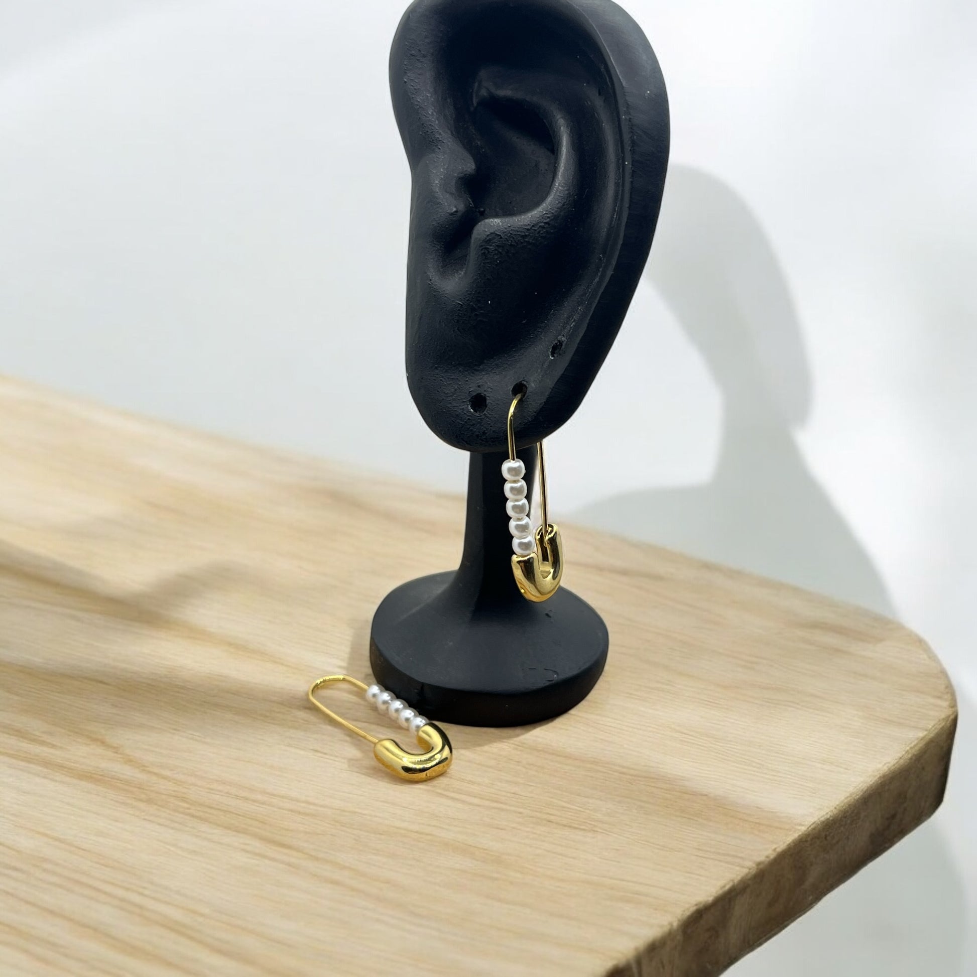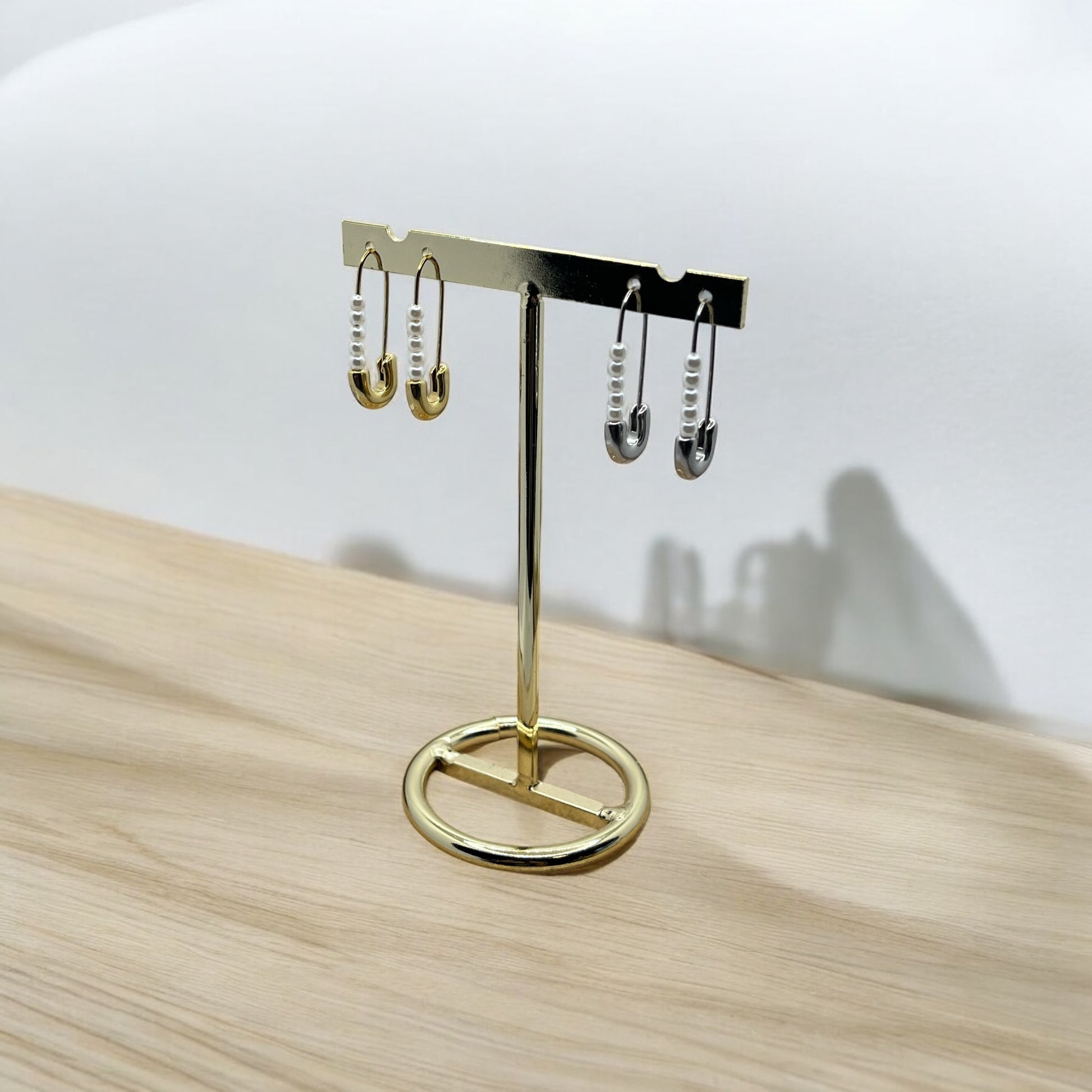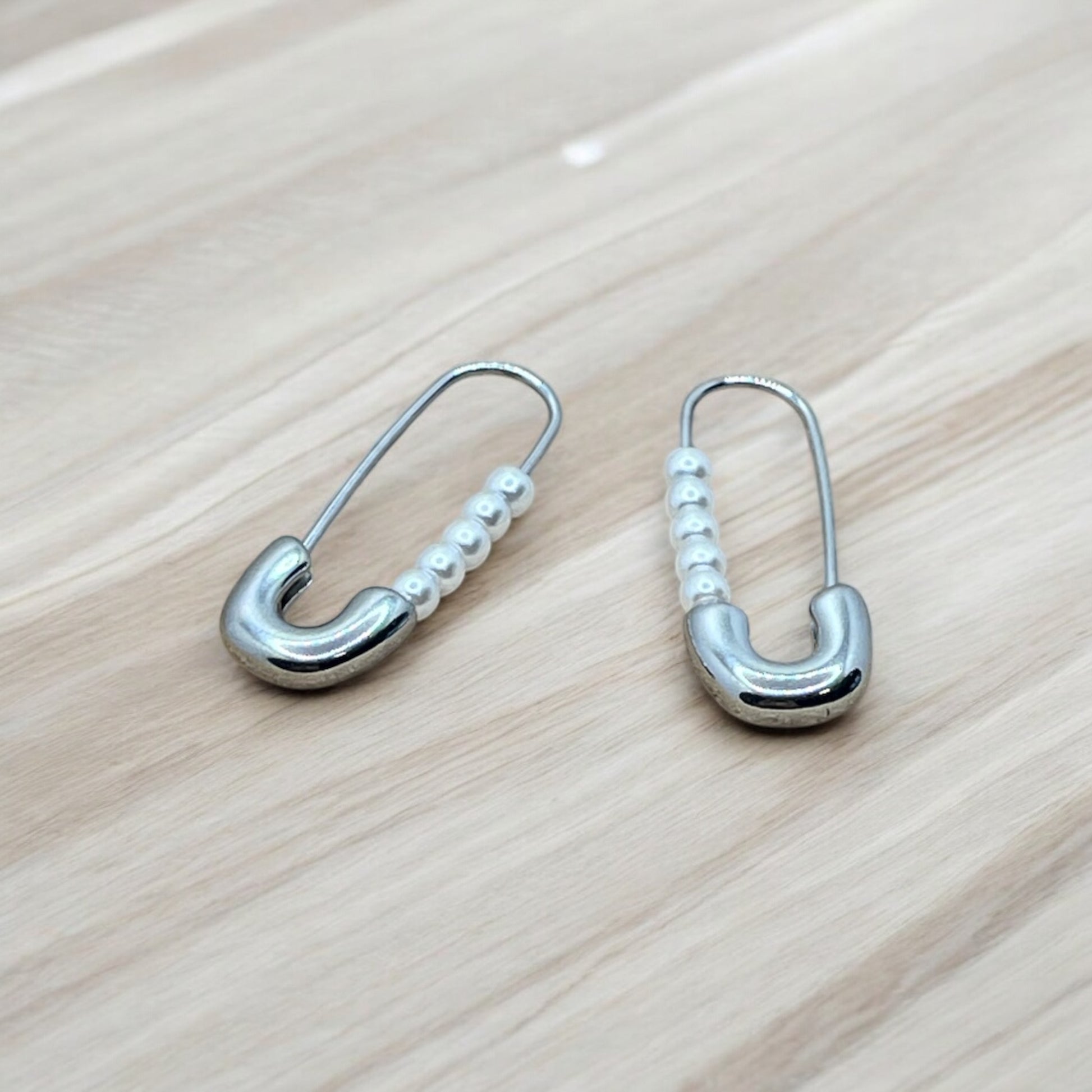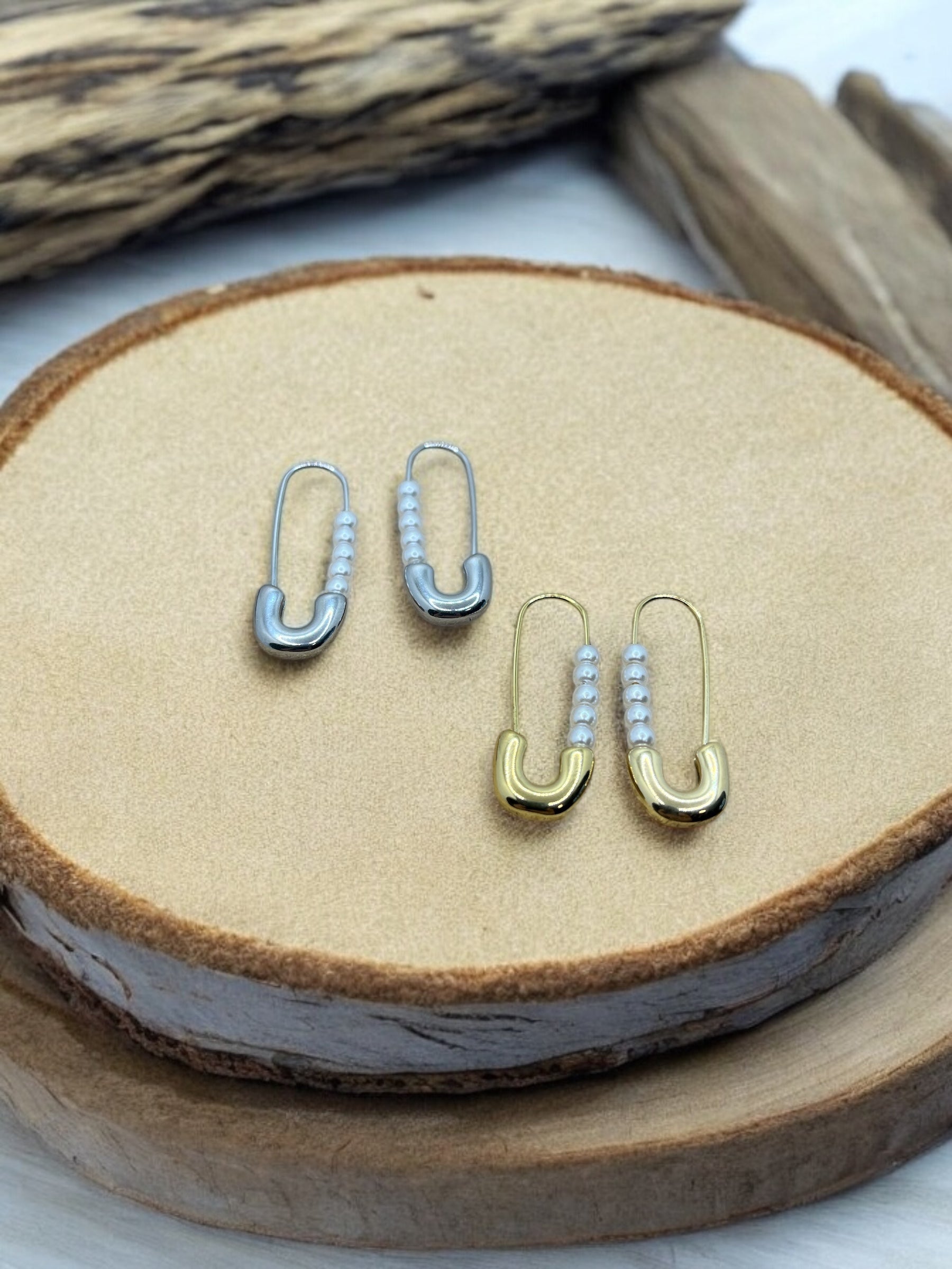 Boucles d'oreilles Original Mode style épingle à nourrice et ces petites perles blanches - Acier inoxydable doré ou Argenté