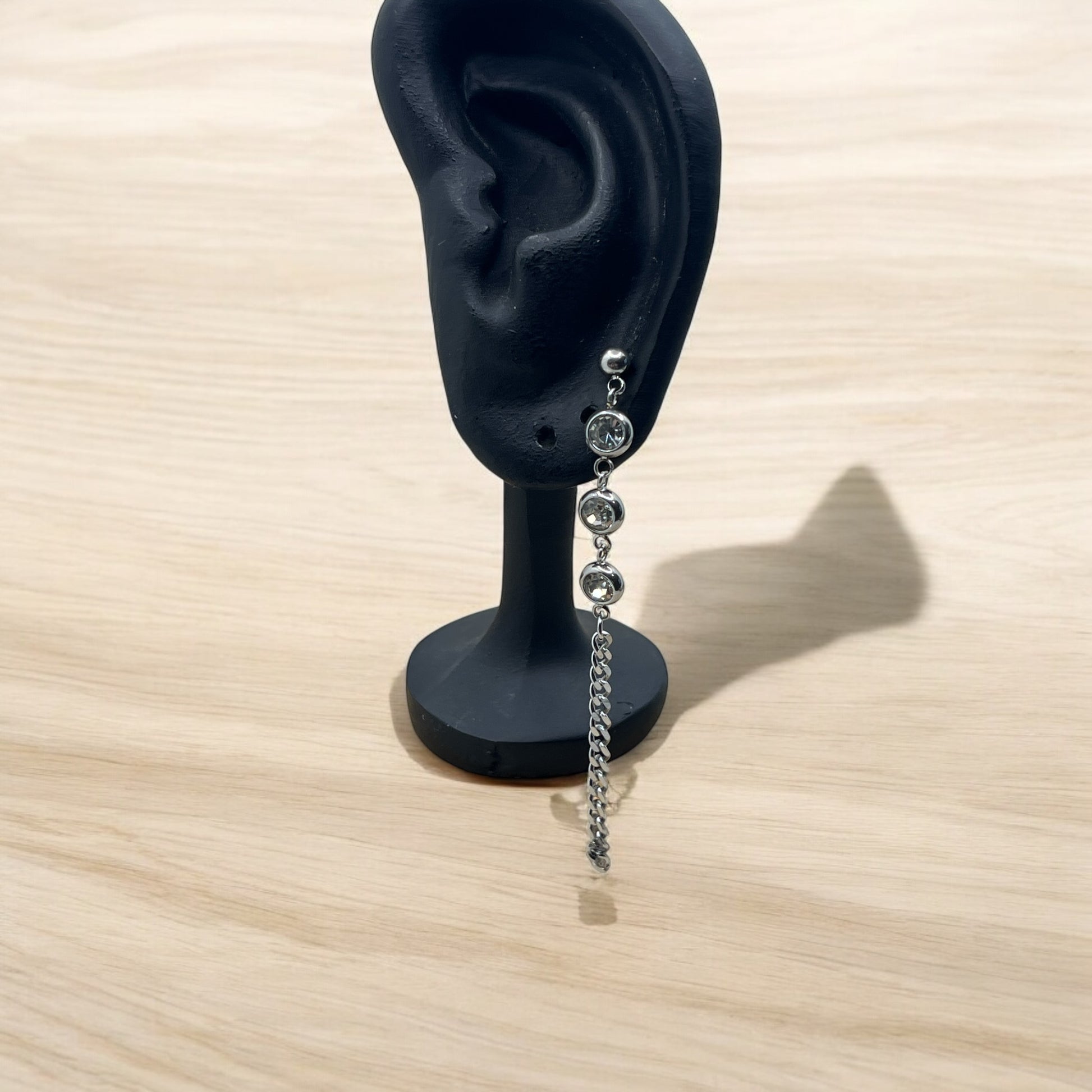 Boucles d'oreilles pendentif ornés de 3 strass brillant et d'une chainette - Acier inoxydable