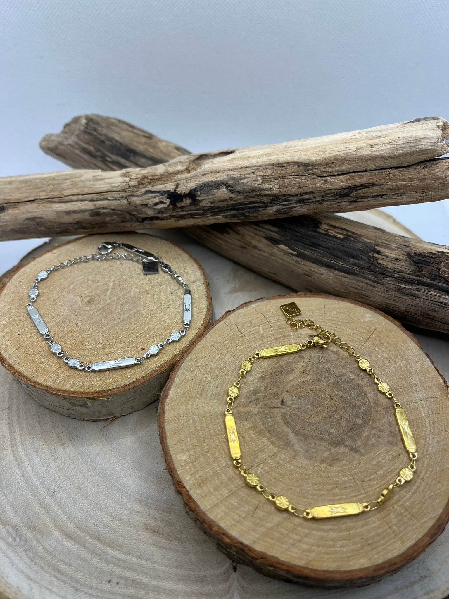 Ce bracelet chic et élégant en acier inoxydable est disponible en doré et en argenté pour ajouter une touche intemporelle à votre style. Une pièce unique et jolie à porter tous les jours.