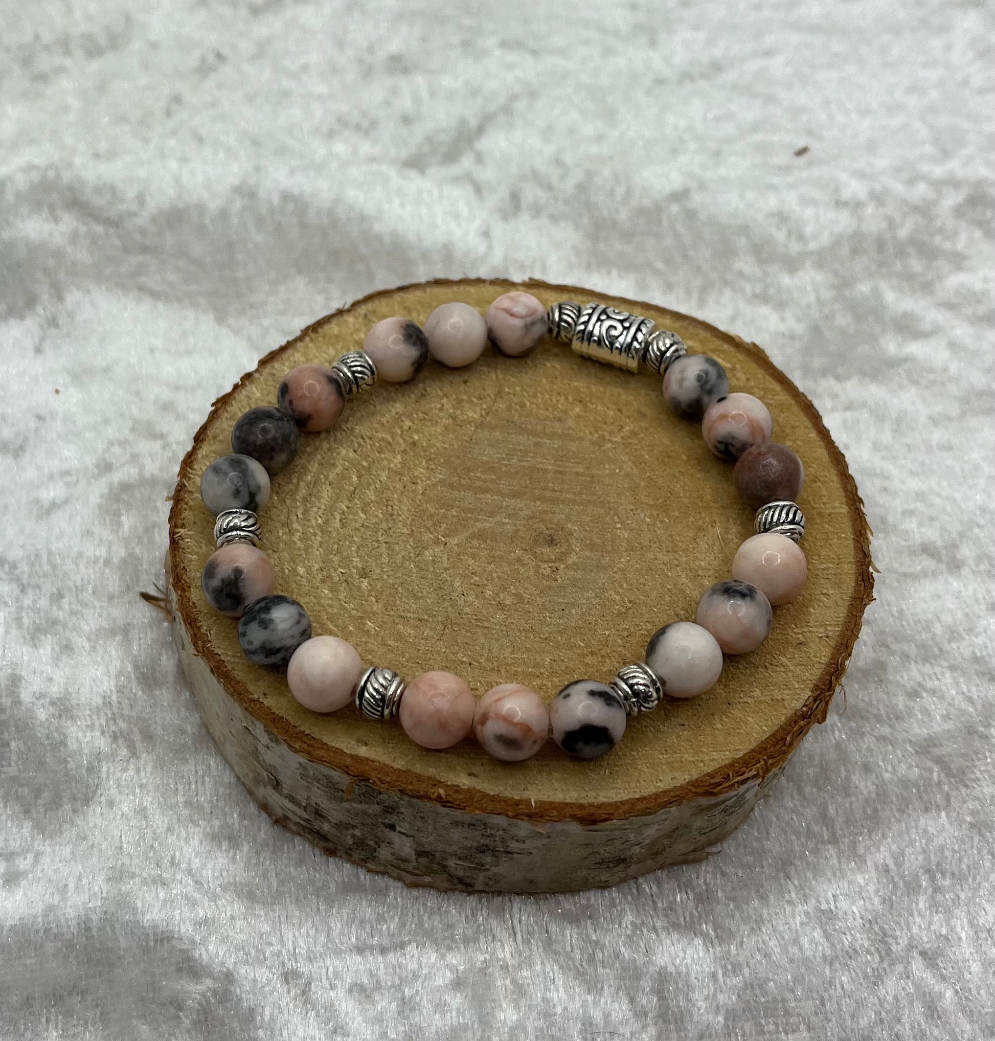 Bracelet en Pierre Naturelle en JASPE ZEBRE ROSE Orné de Perles décoratives En Acier inoxydable- Fait main