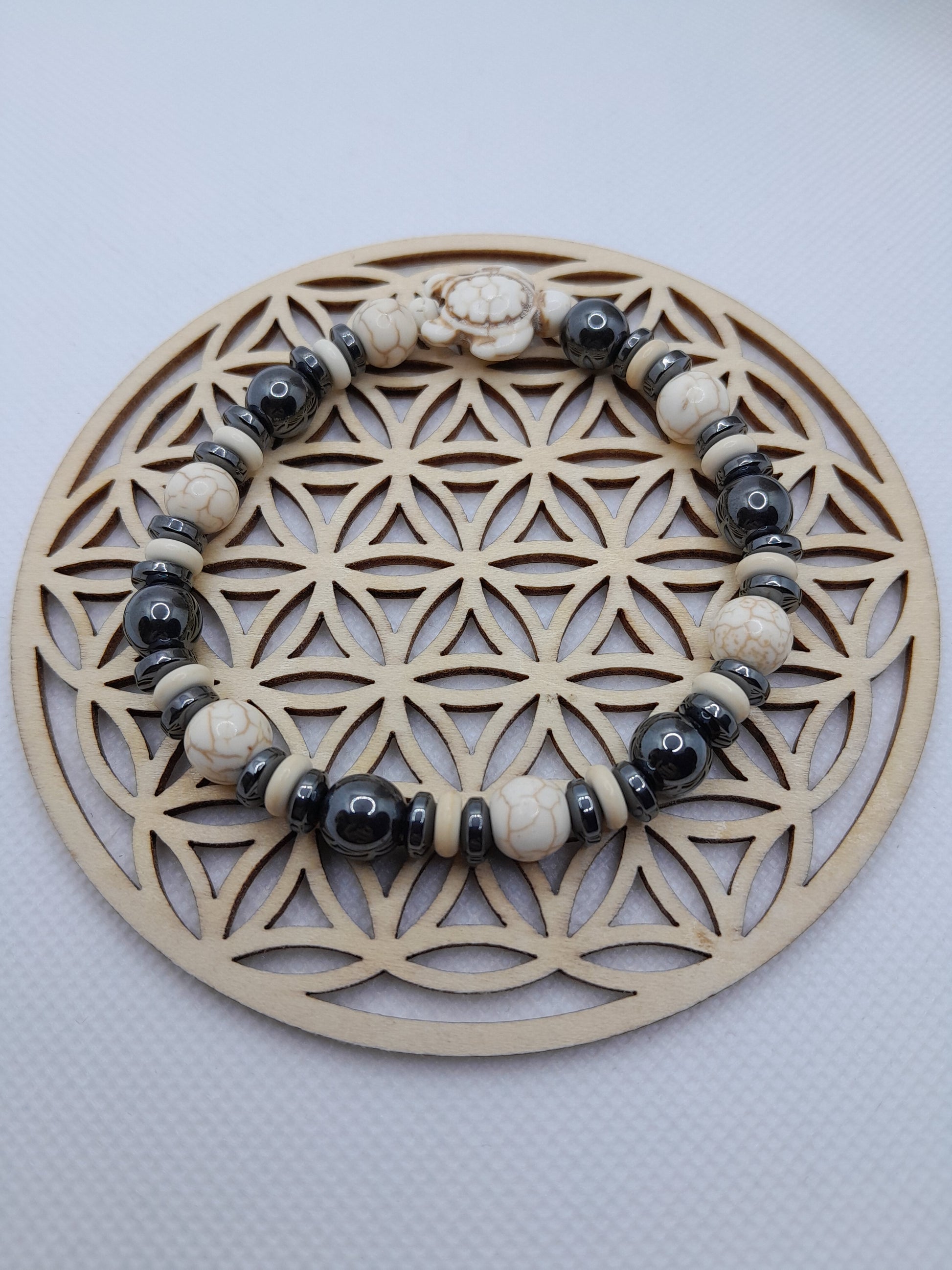 Bracelet en Pierre Naturelle - Howlite de Mongolie / Hématite / Tortue