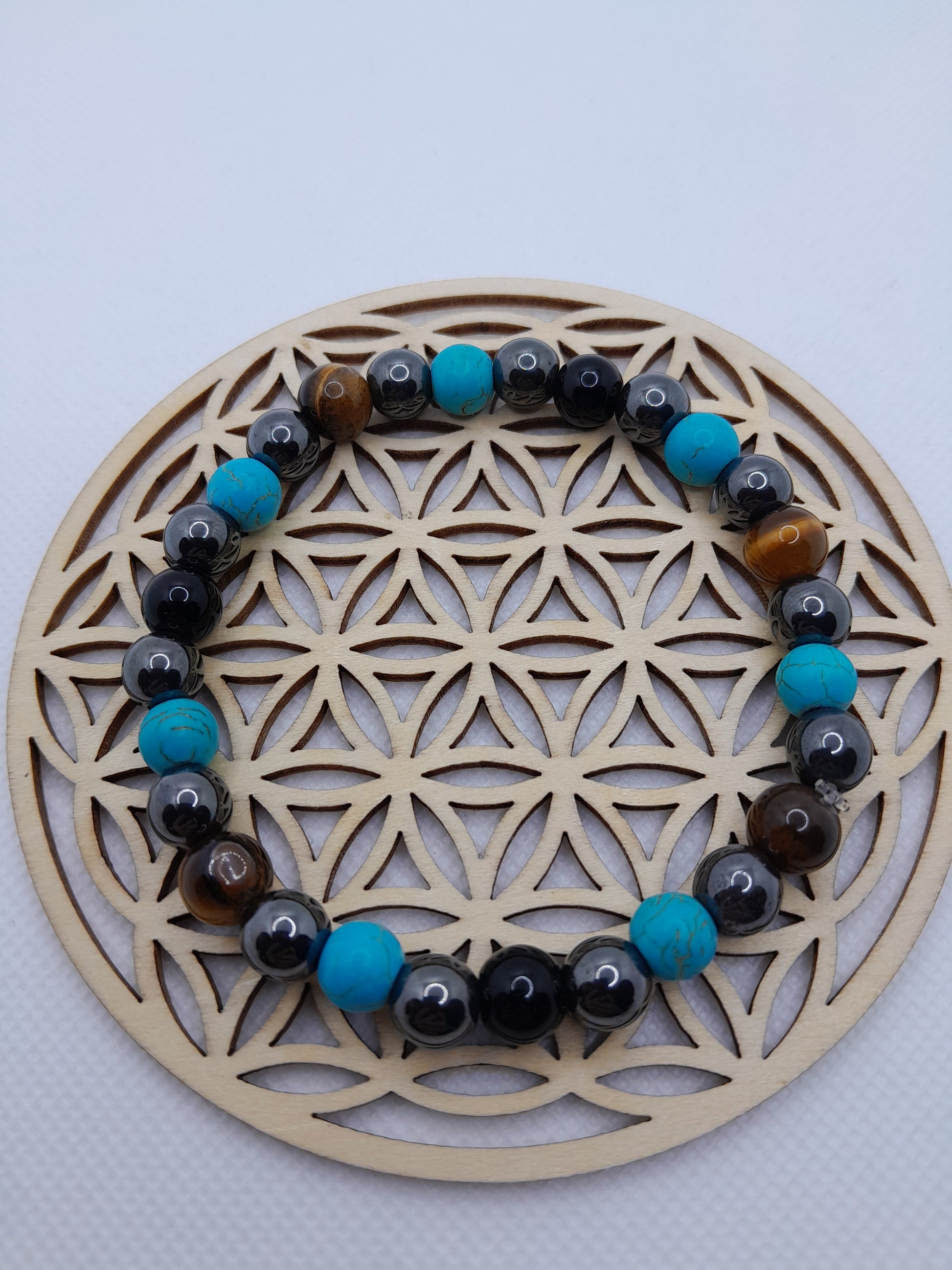 Bracelet en pierre naturelle - Oeil de Tigre/Hématite/Onyx/Turquoise (8 mm)