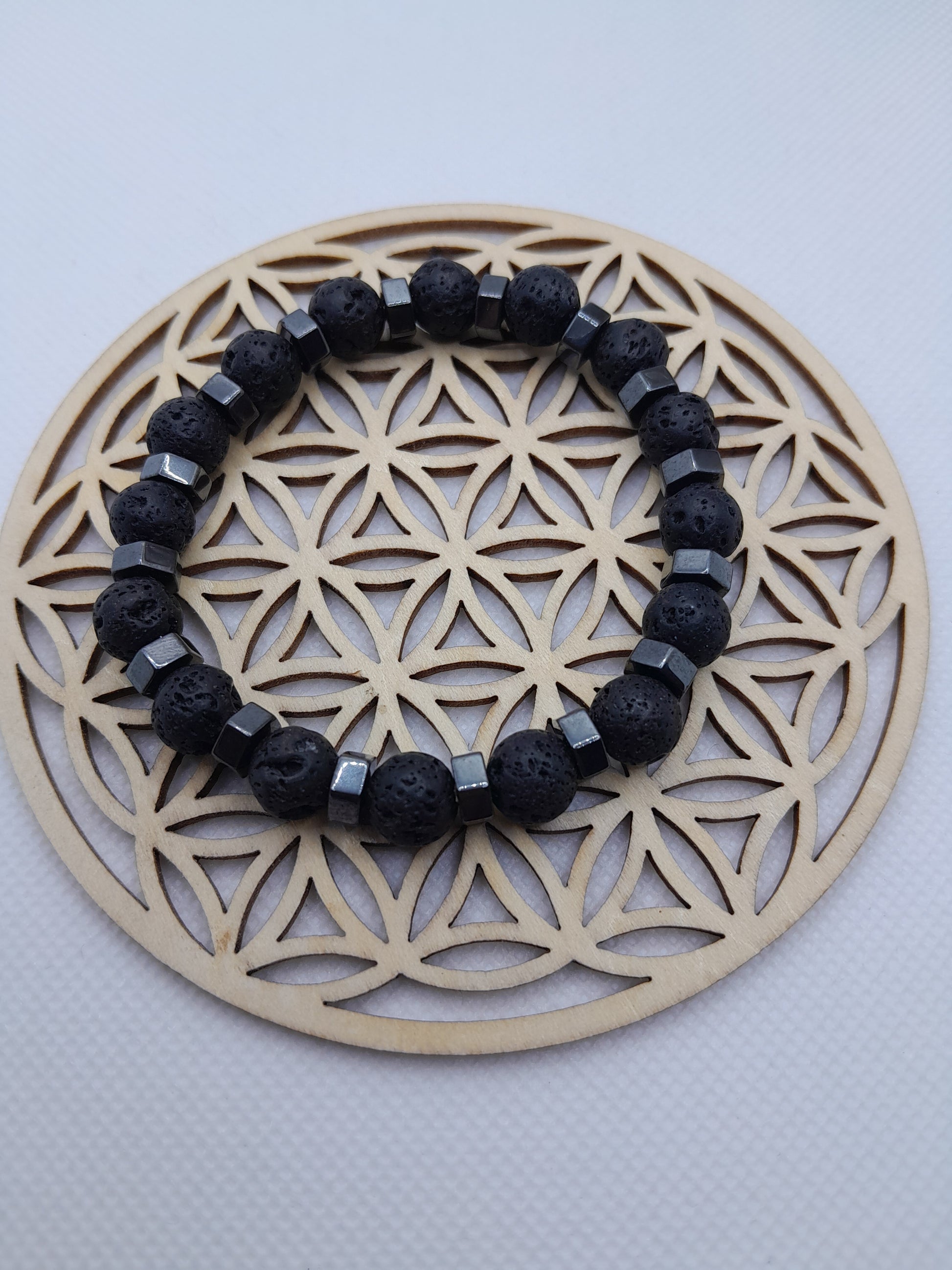 Bracelet en Pierre Naturelle - Pierre de Lave / Hématite