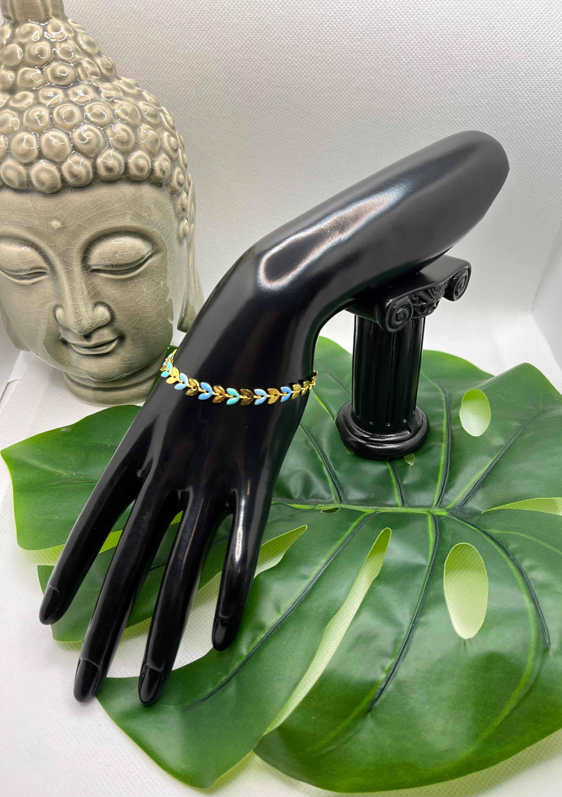 Bracelet Femme Fantaisie Tendance - Doré - Bleu - Vert Clair - en Acier Inoxydable