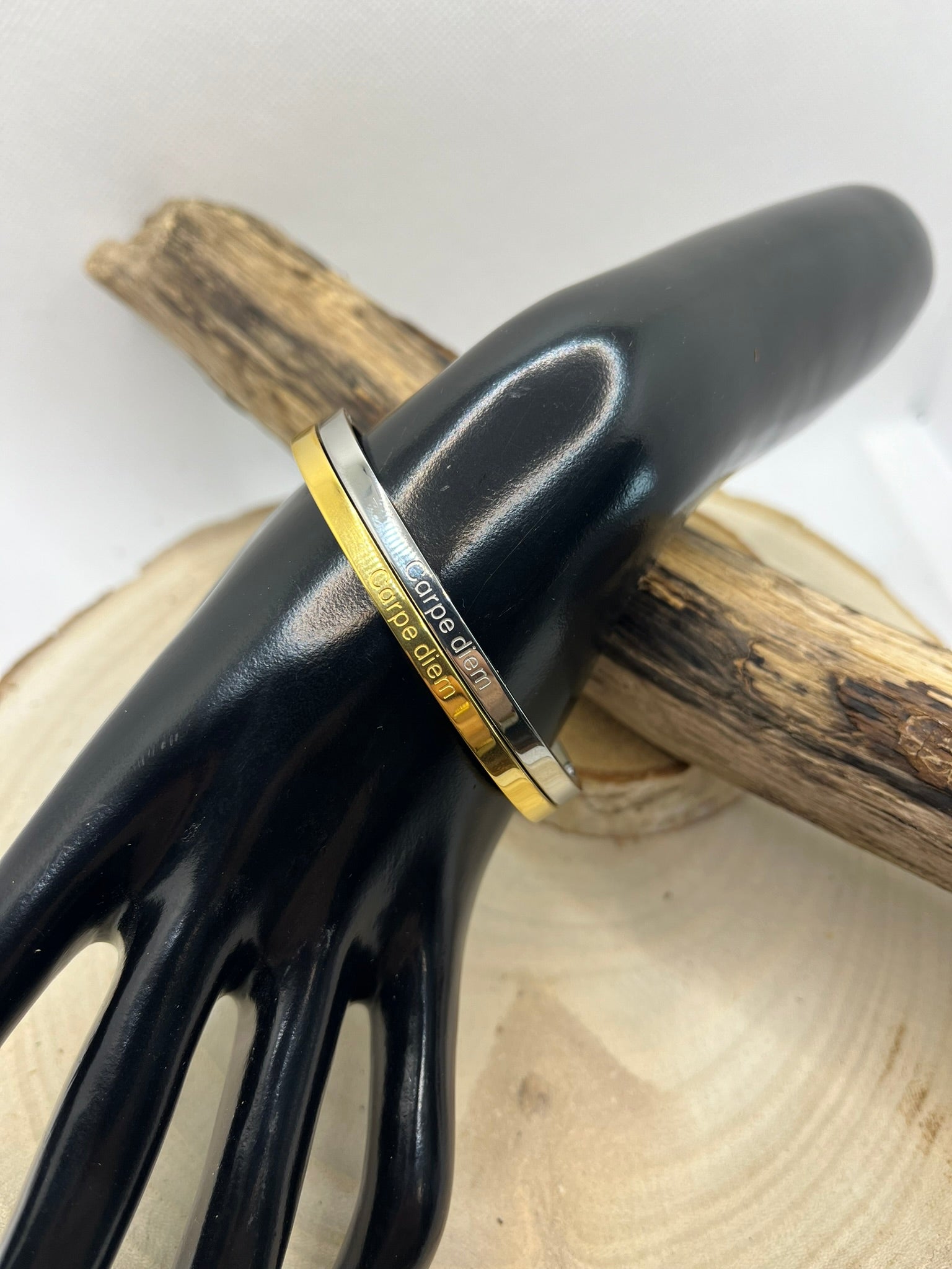Bracelet Jonc à message ( Carpe diem ) - Acier inoxydable en doré et en argenté