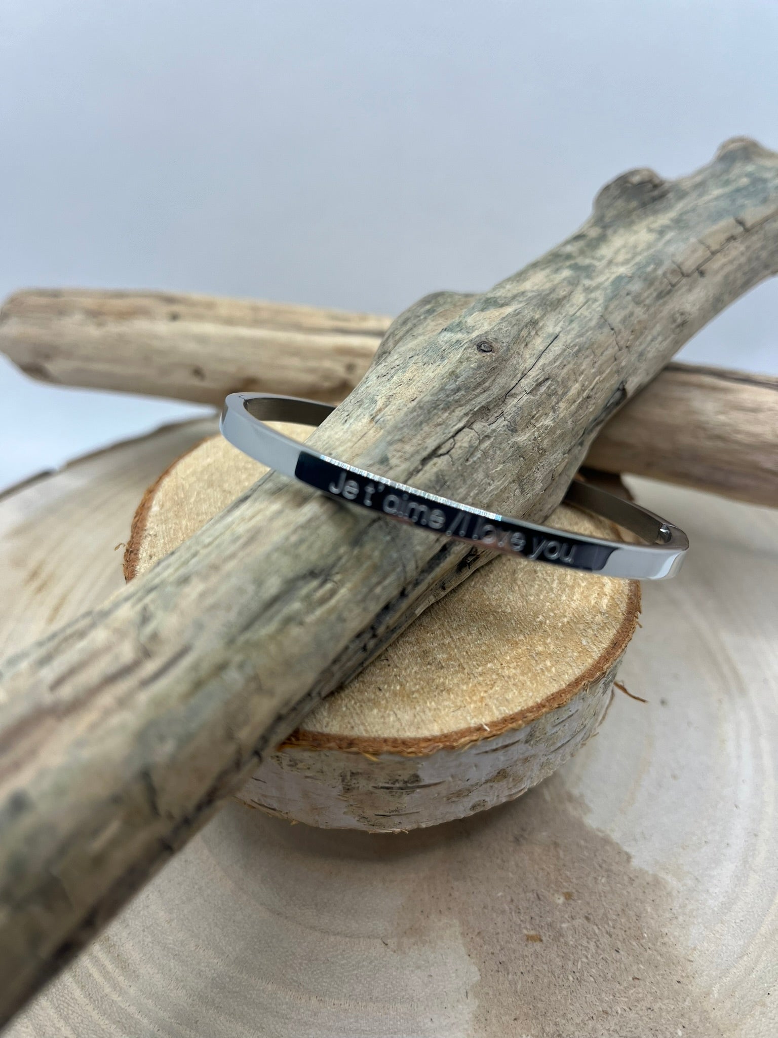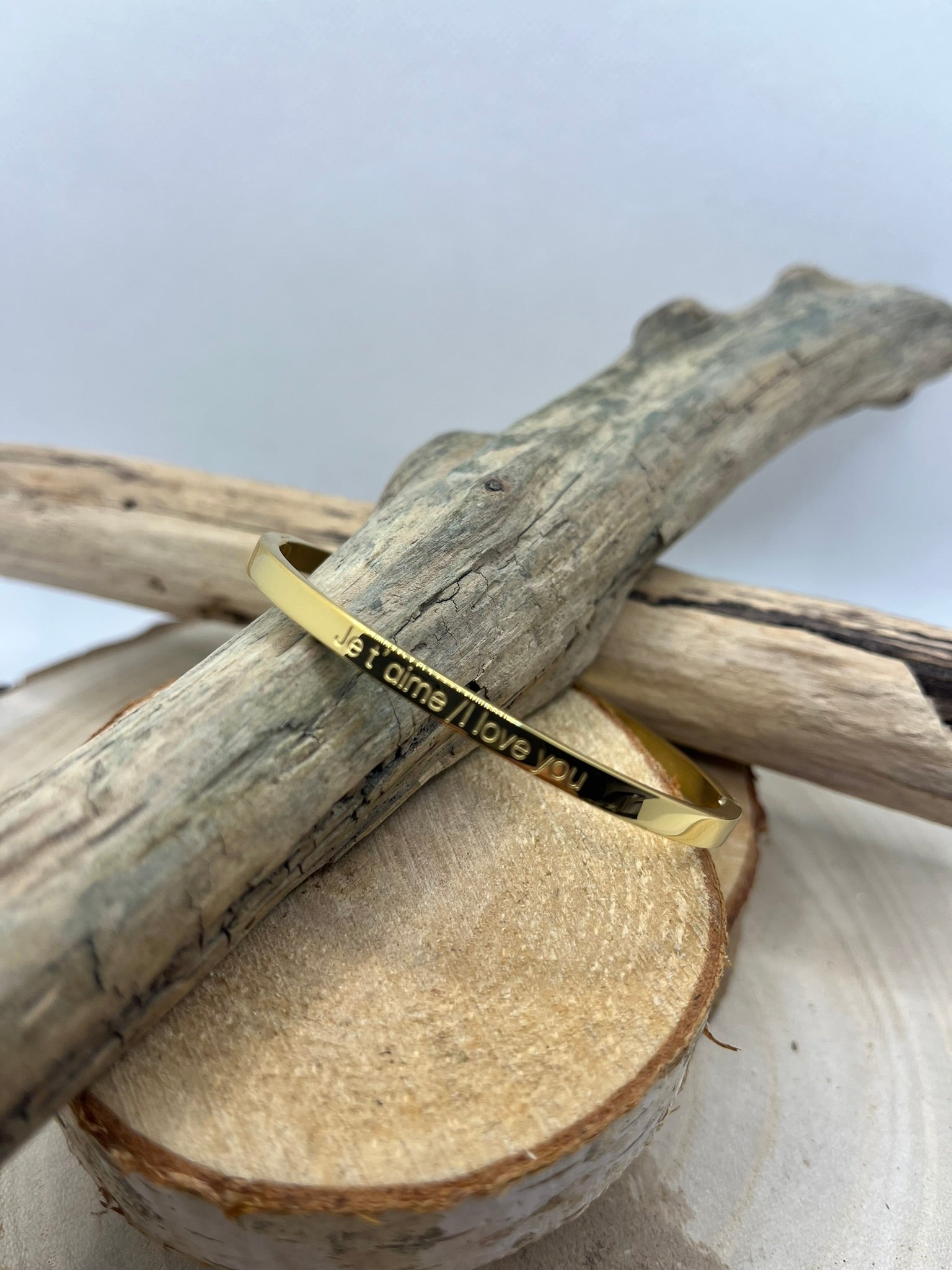 Bracelet jonc à méssage ( Je t'aime / I Love You ) Acier inoxydable Doré ou en Argenté