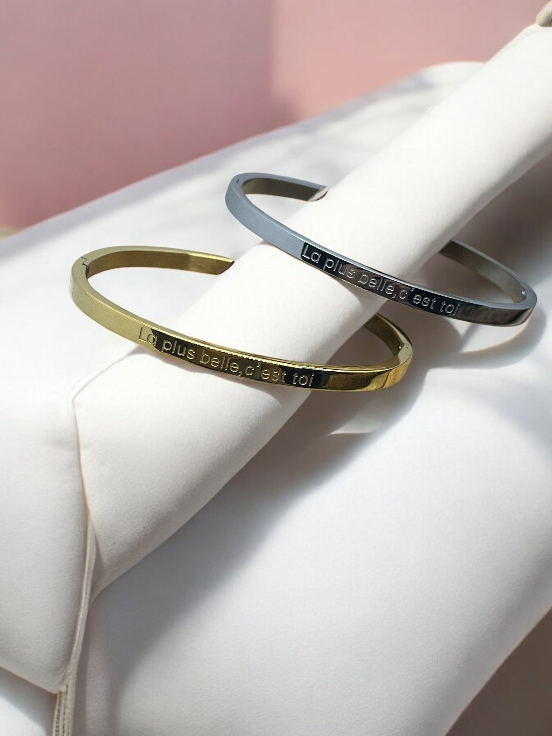 Bracelet Jonc à message ( La plus belle, c'est toi ) Acier inoxydable doré ou Argenté