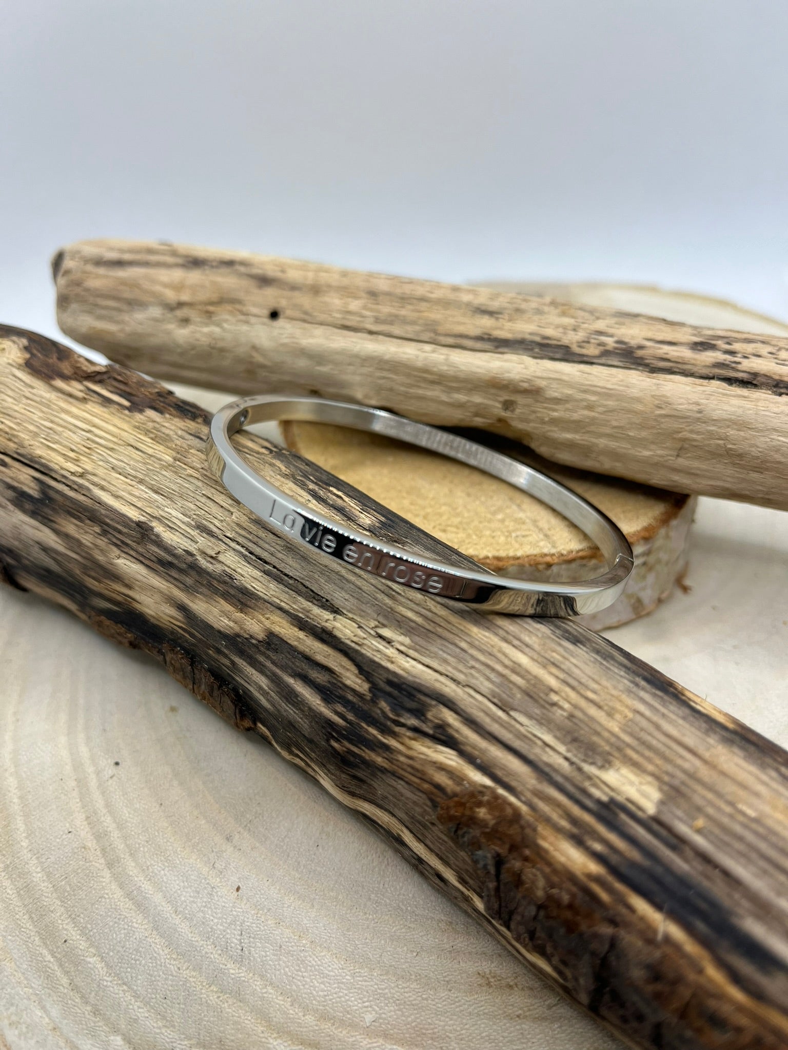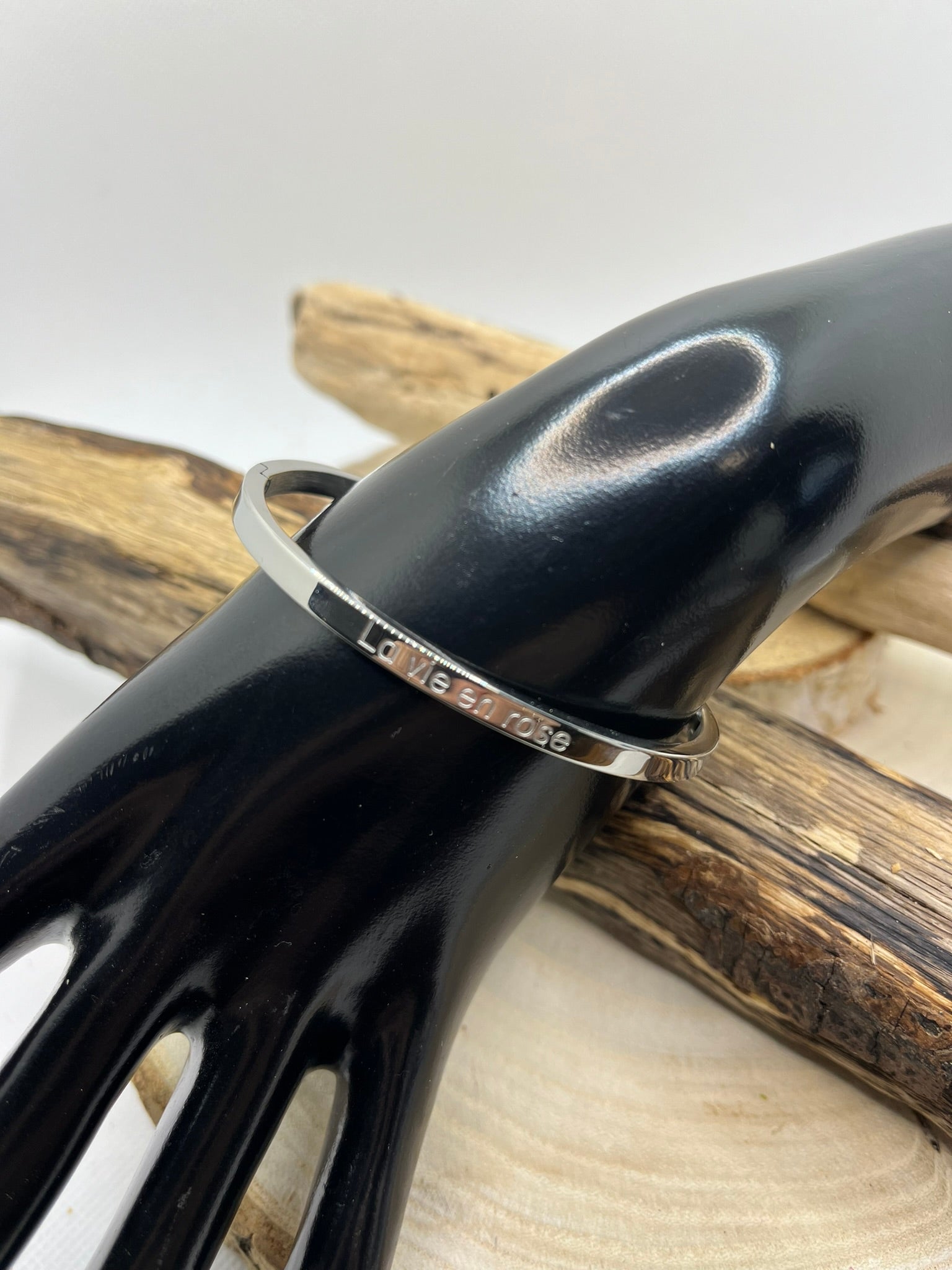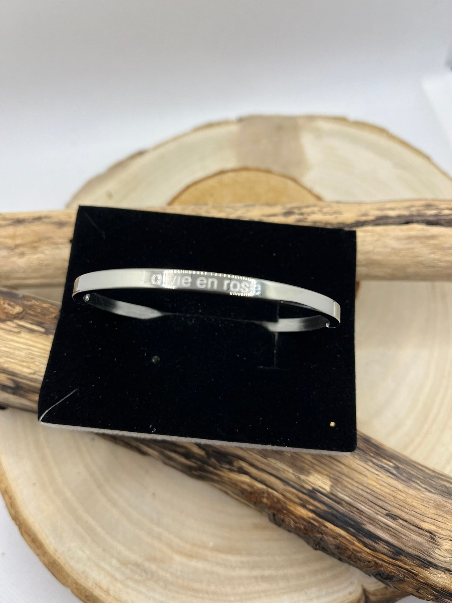 Bracelet Jonc à Message *La Vie En Rose* en Acier Inoxydable Argenté