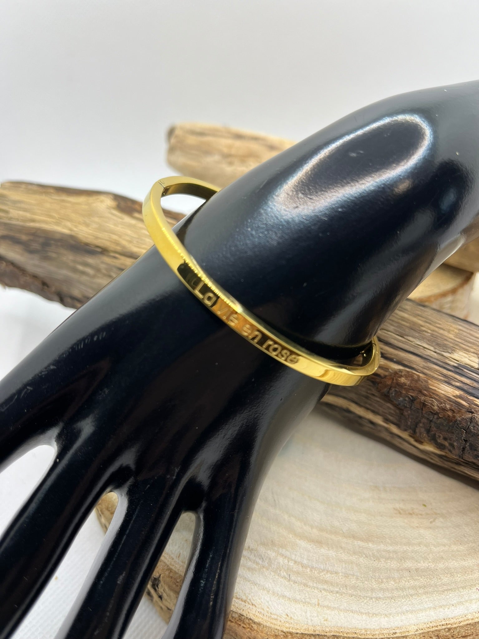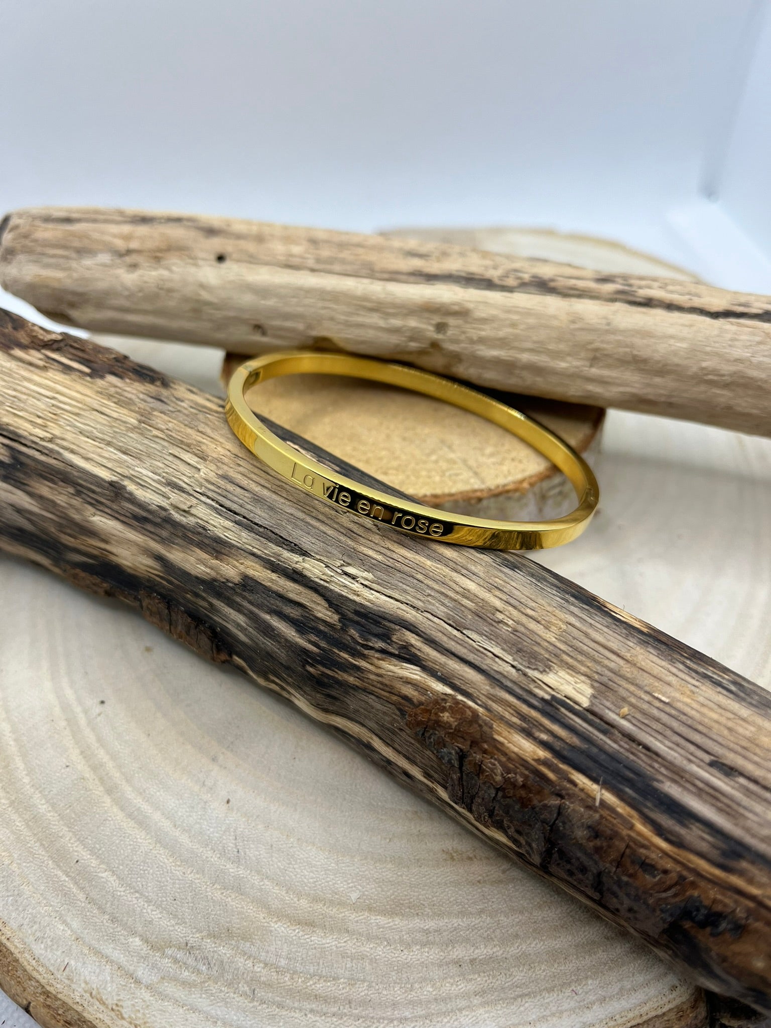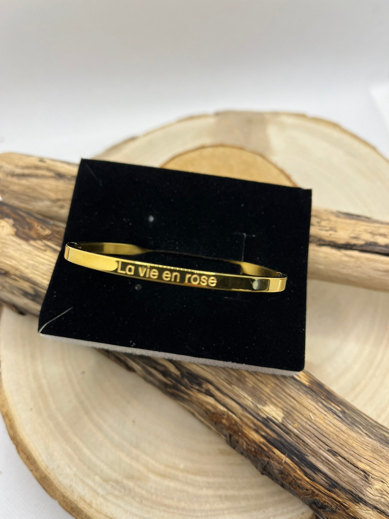 Bracelet Jonc à Message *La Vie En Rose* en Acier Inoxydable Argenté