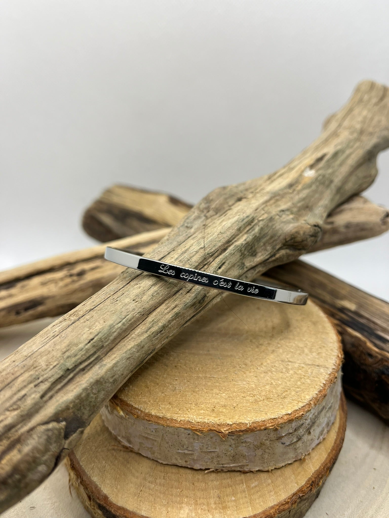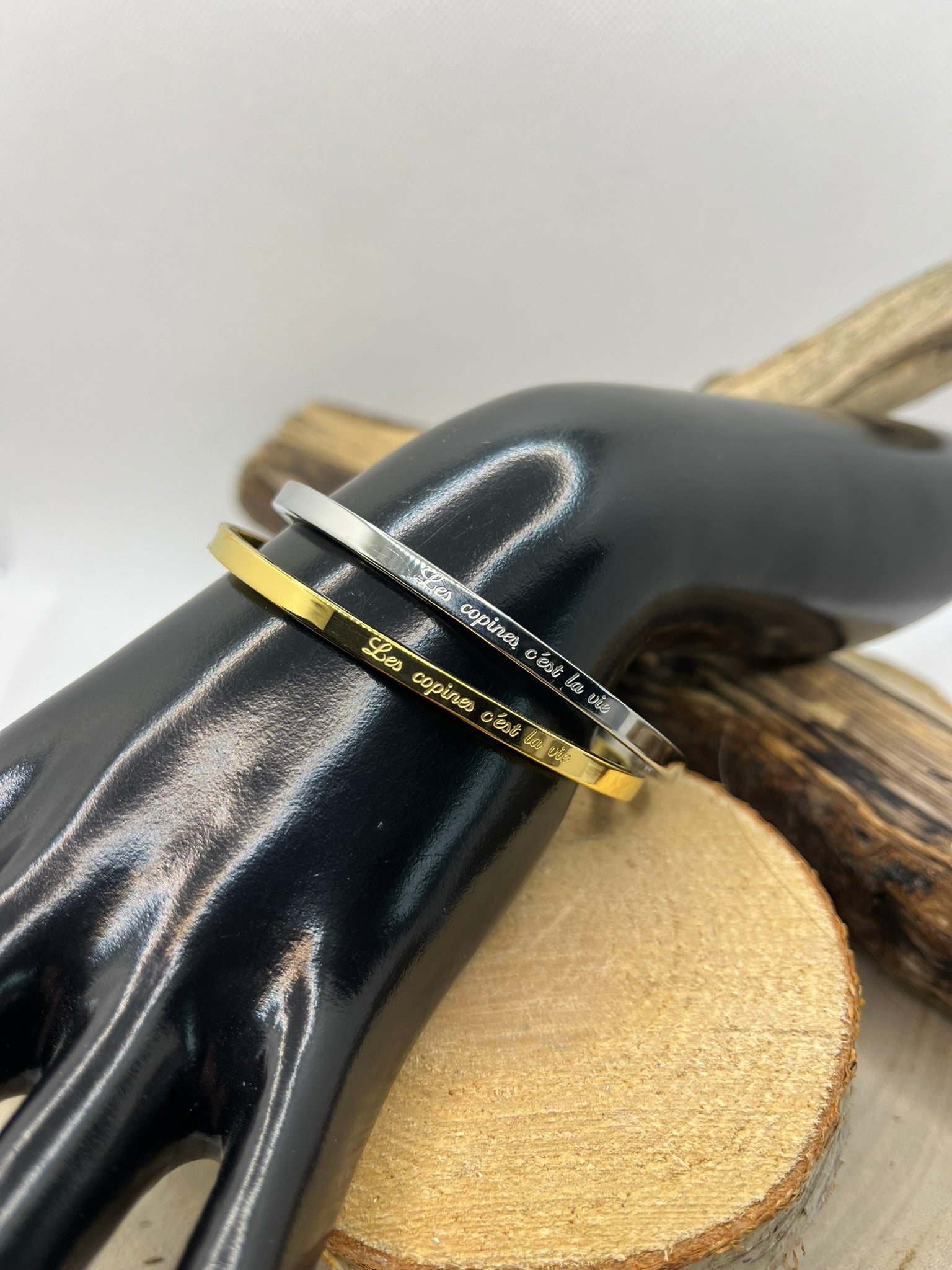 Bracelet Jonc à message ( Les copines, c'est la vie ) - Acier inoxydable en doré ou en argent
