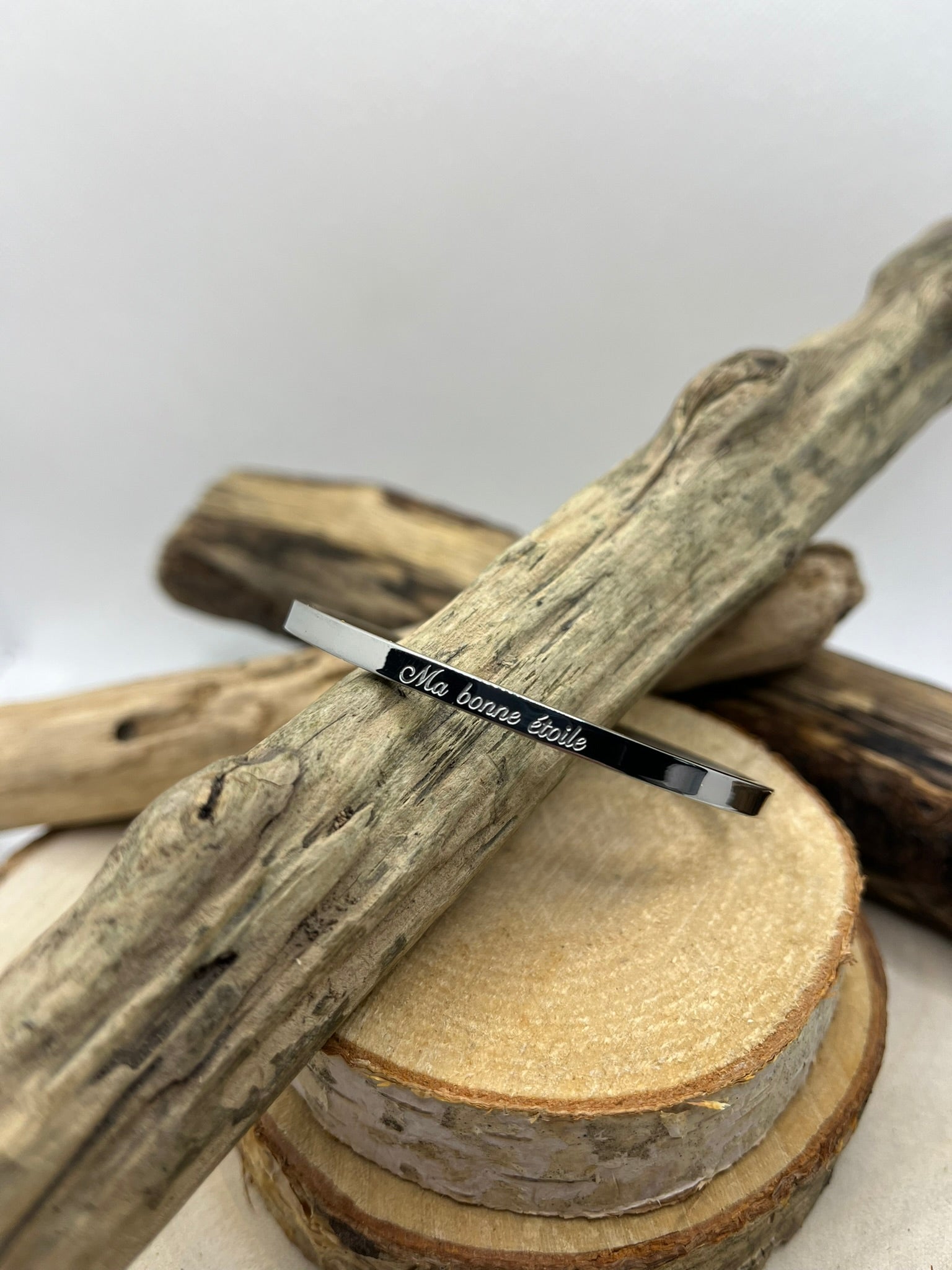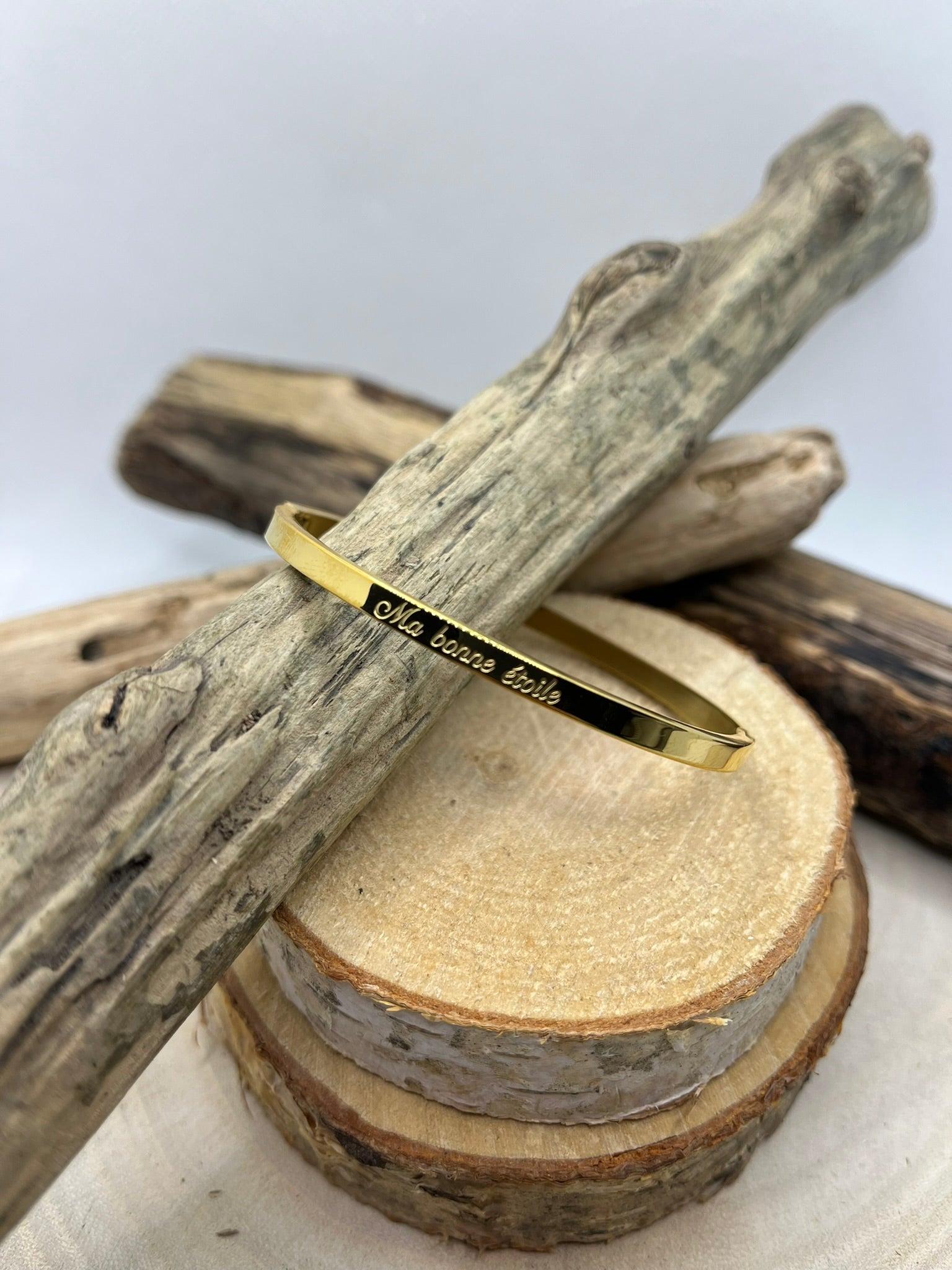 Bracelet Jonc à Message ( Ma bonne étoile ) - Acier inoxydable argenté ou en Doré