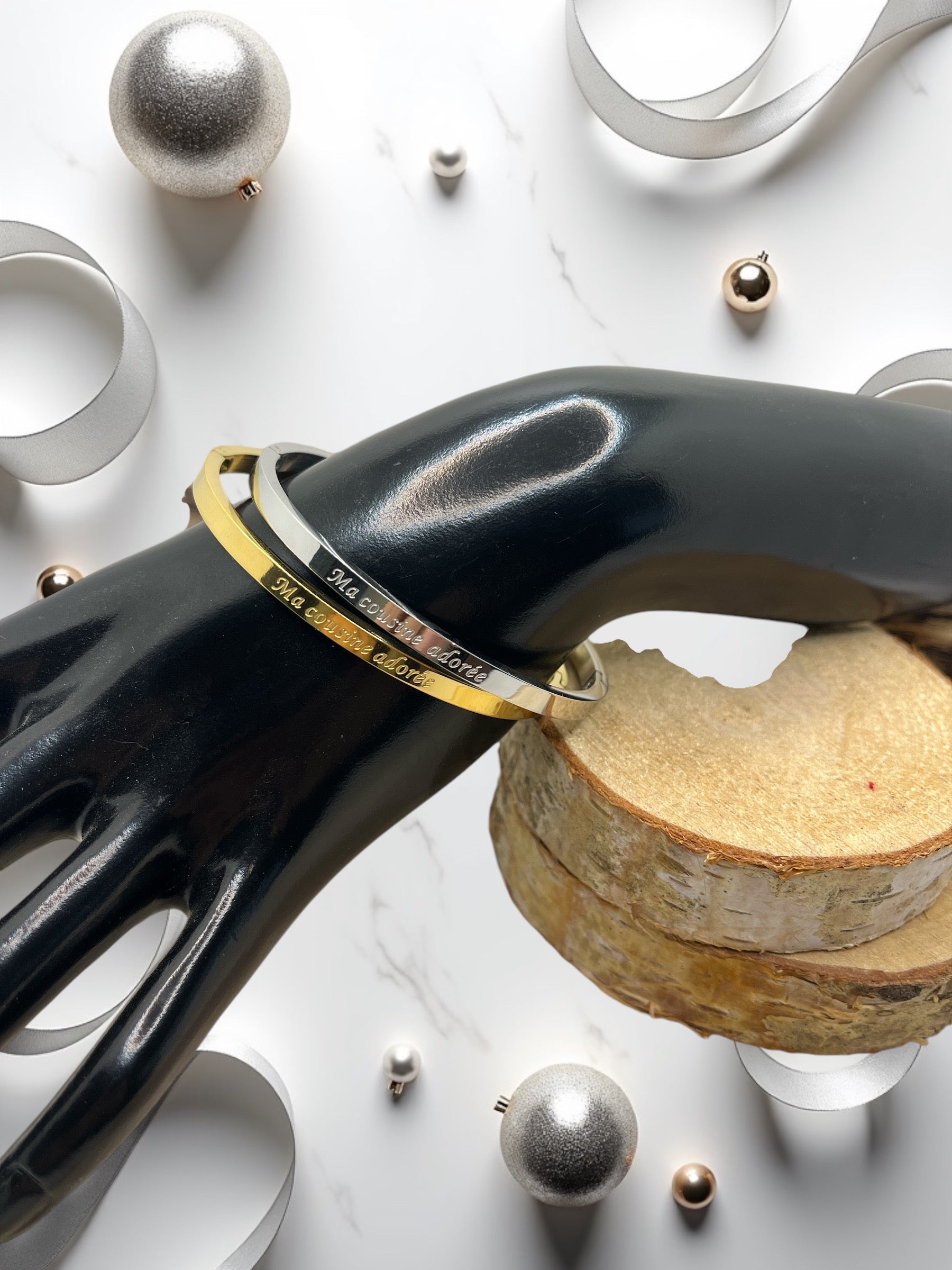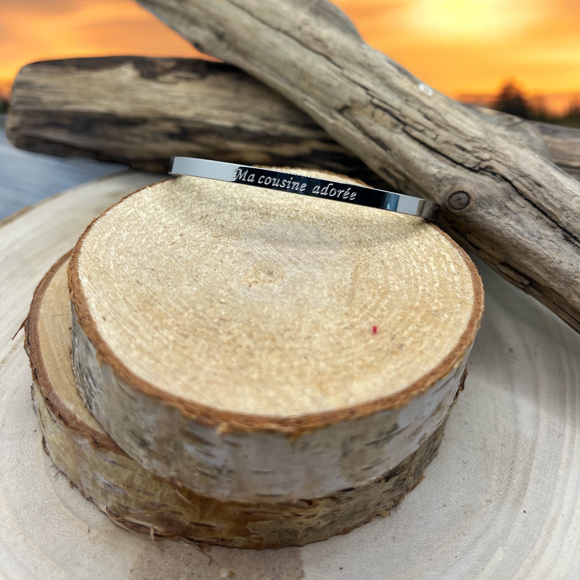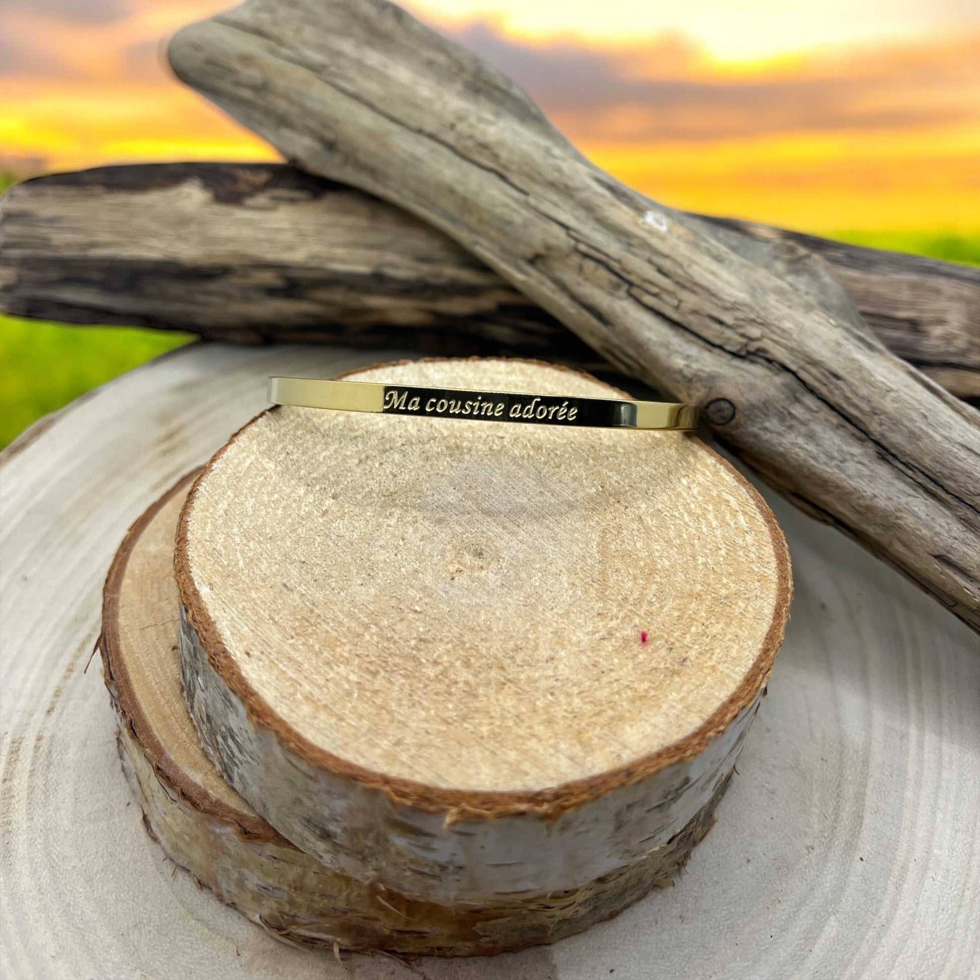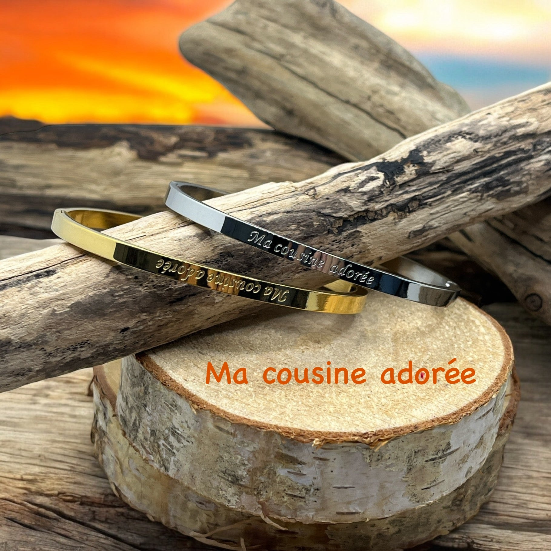 Bracelet Jonc à message ( Ma cousine adorée ) Acier inoxydable Doré ou en Argenté