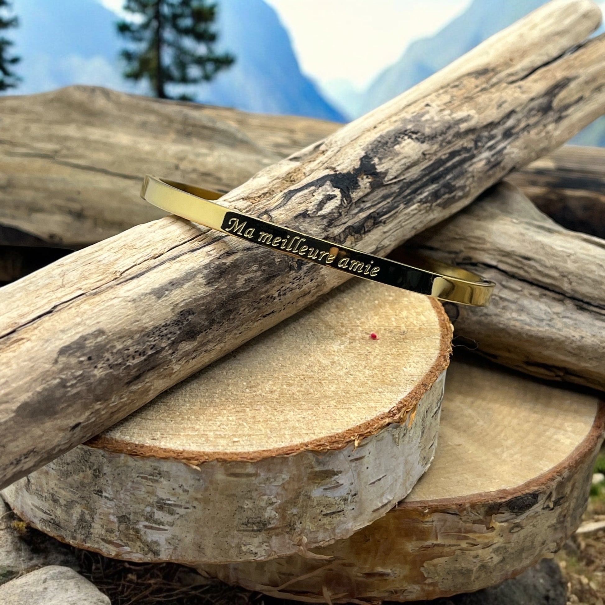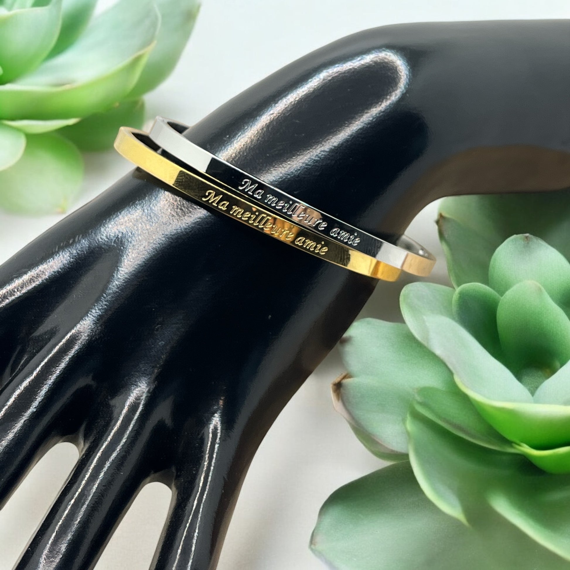 Bracelet Jonc à message ( Ma meilleure Amie ) Acier inoxydable doré ou en argenté