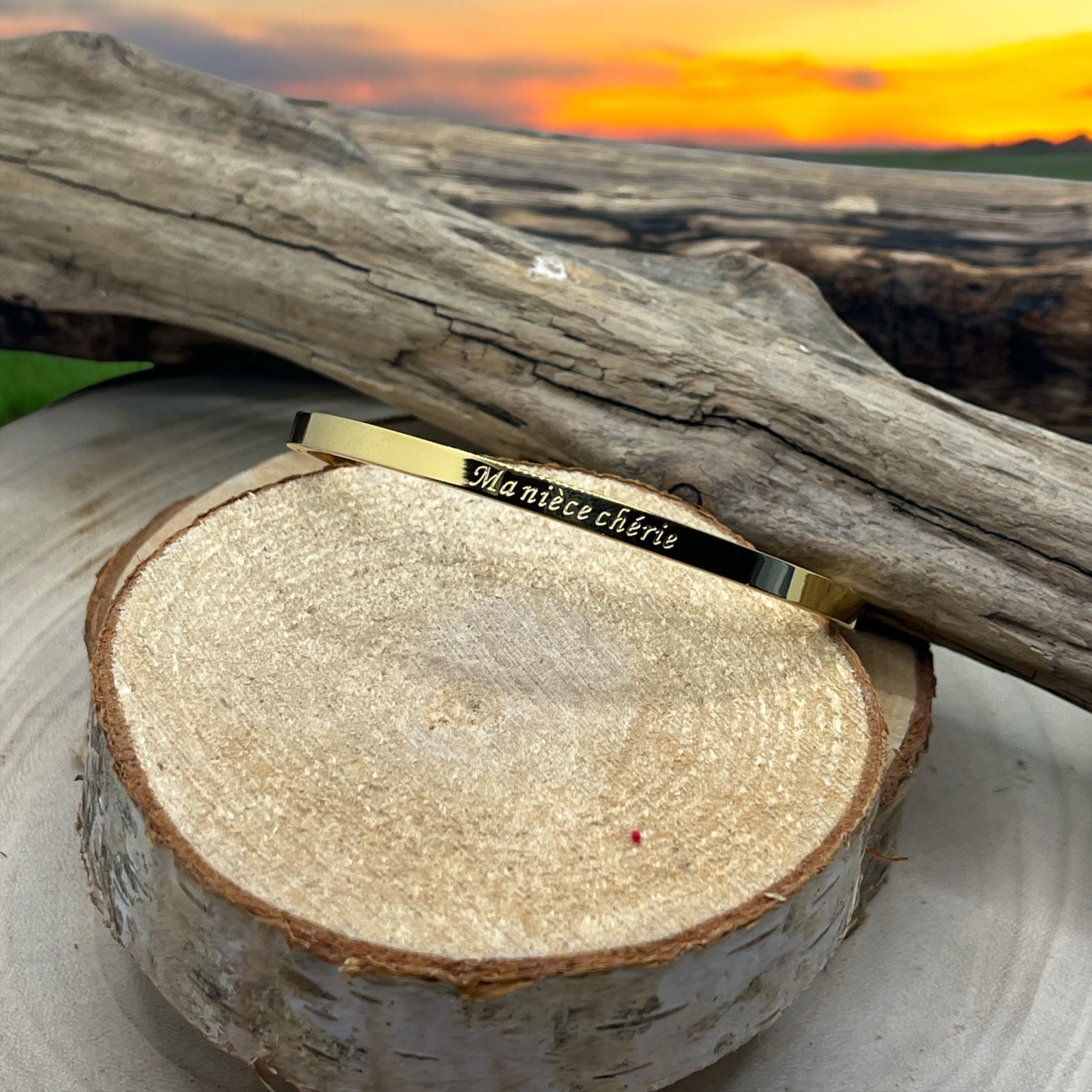 Bracelet Jonc à message ( Ma nièce Chérie ) Acier inoxydable doré ou en argenté