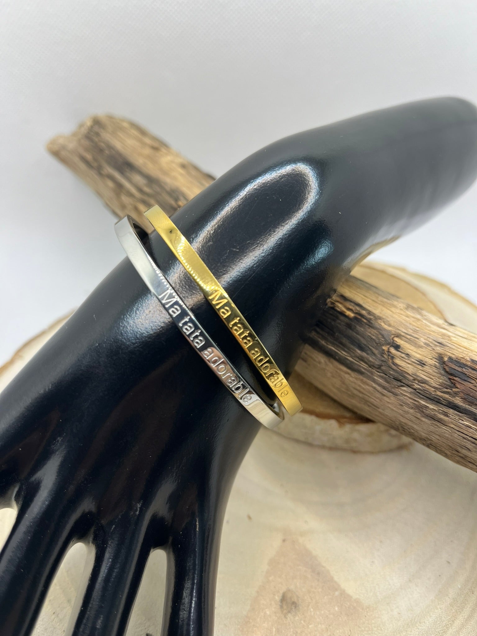 Bracelet Jonc à message ( Ma tata adorable ) - Acier inoxydable en doré ou en argent