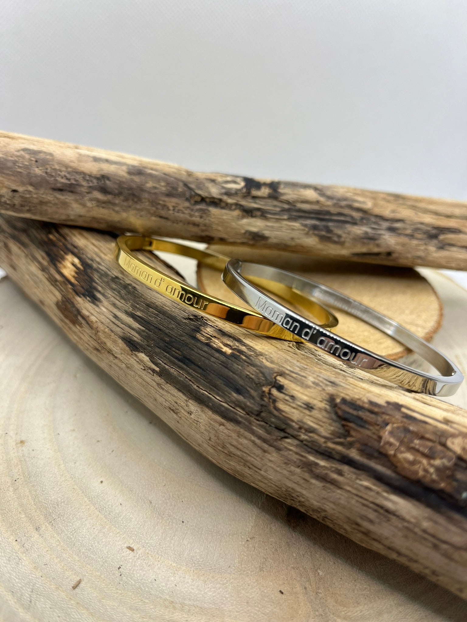 Bracelet Jonc à message ( Maman d'amour ) - Acier inoxydable en doré ou en argenté