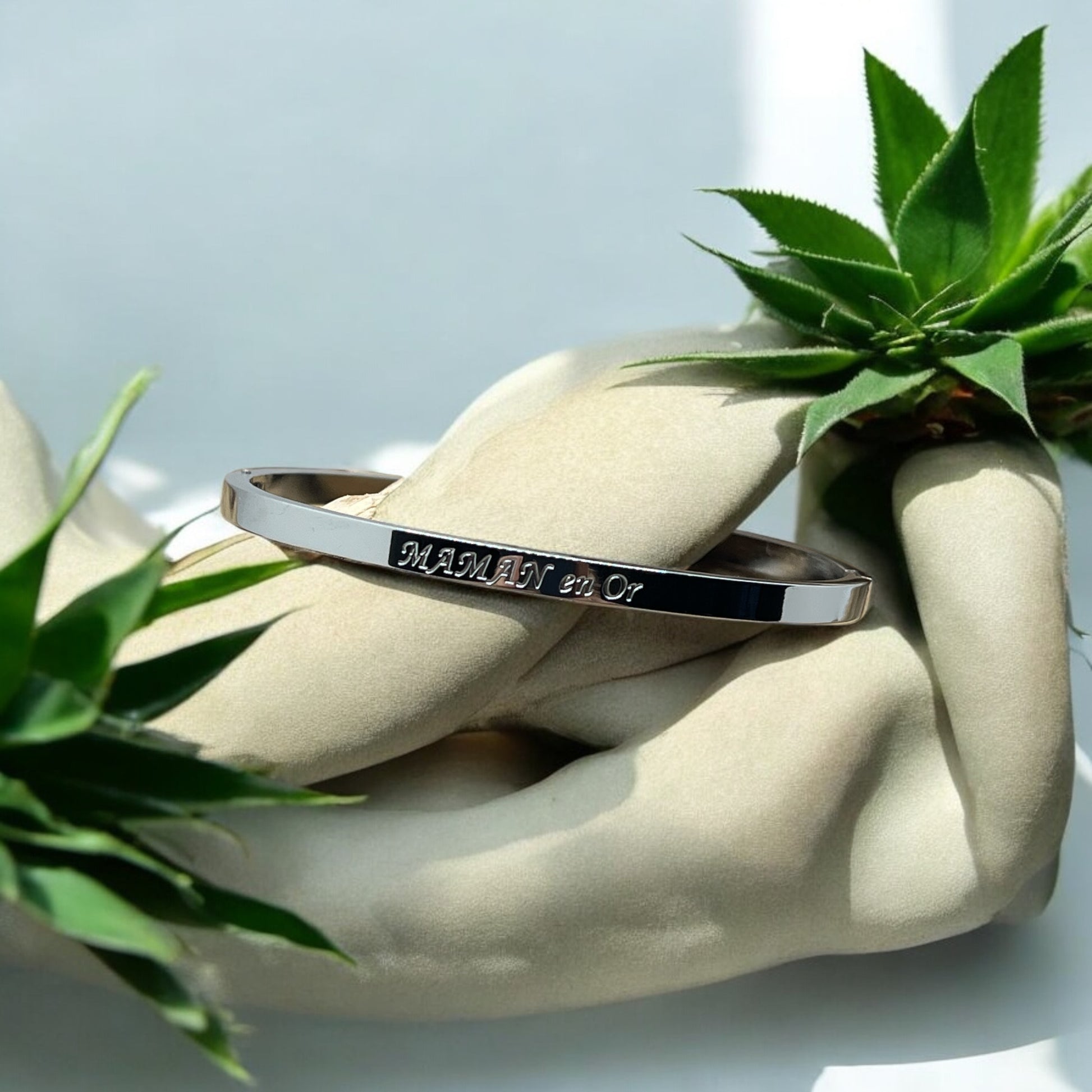 Bracelet Jonc à message ( Maman en Or ) Acier inoxydable doré ou en argenté